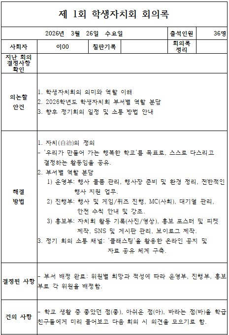 2026학년도 제1회 학생자치 회의 결과