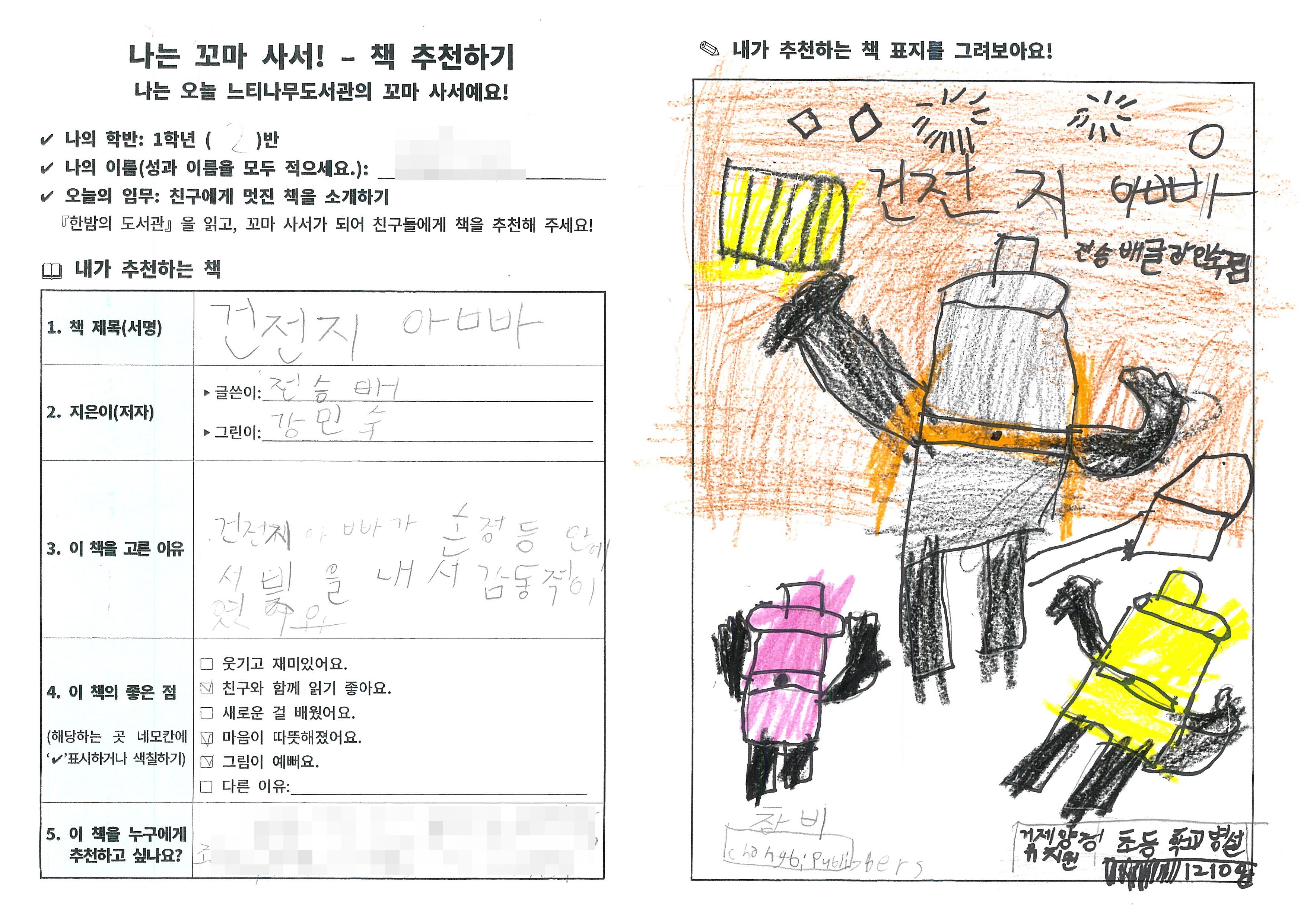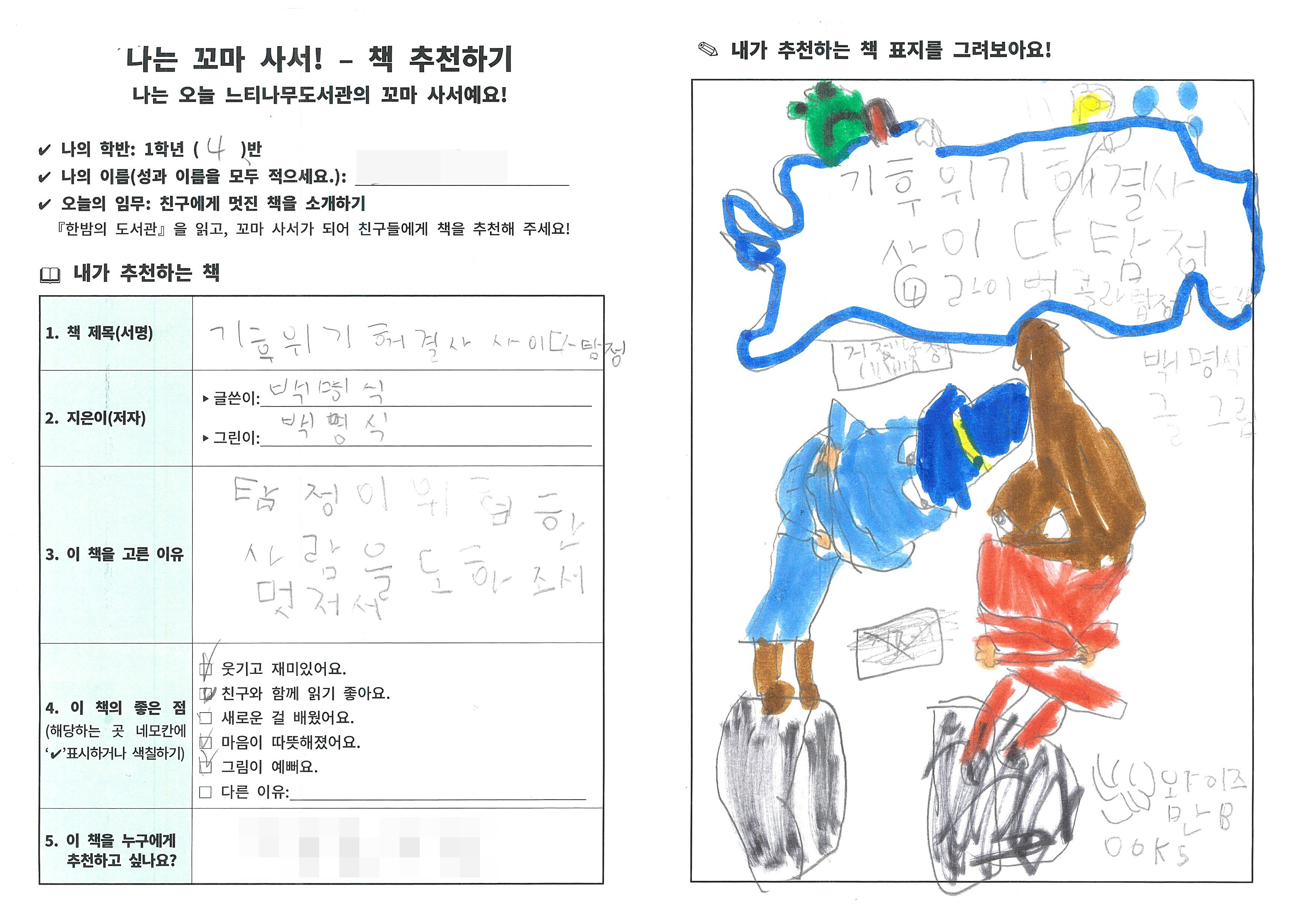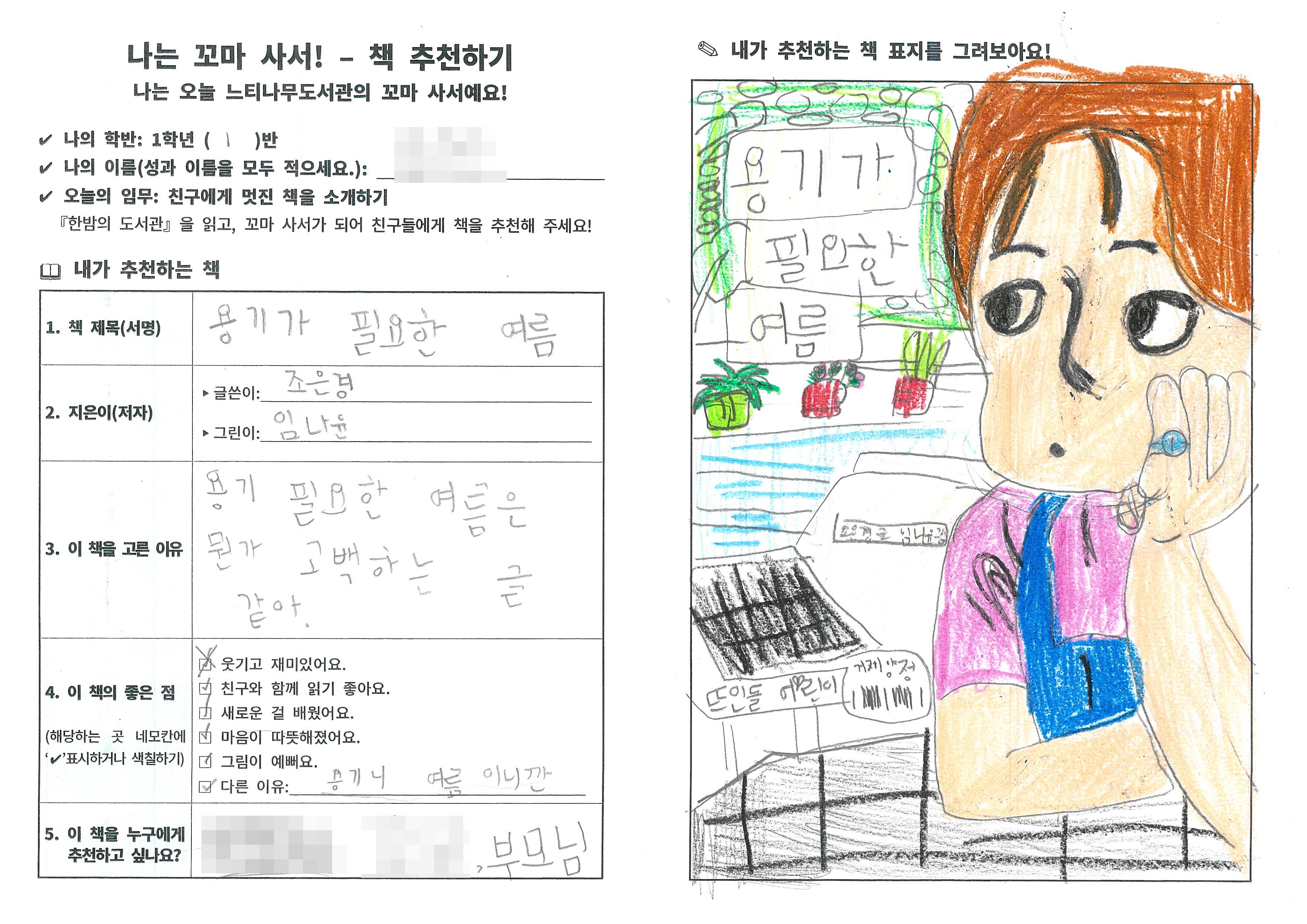 4. 배움활동: 추천할 책 고르기, 책 정보와 고른 이유 적기, 친구들에게 소개하기