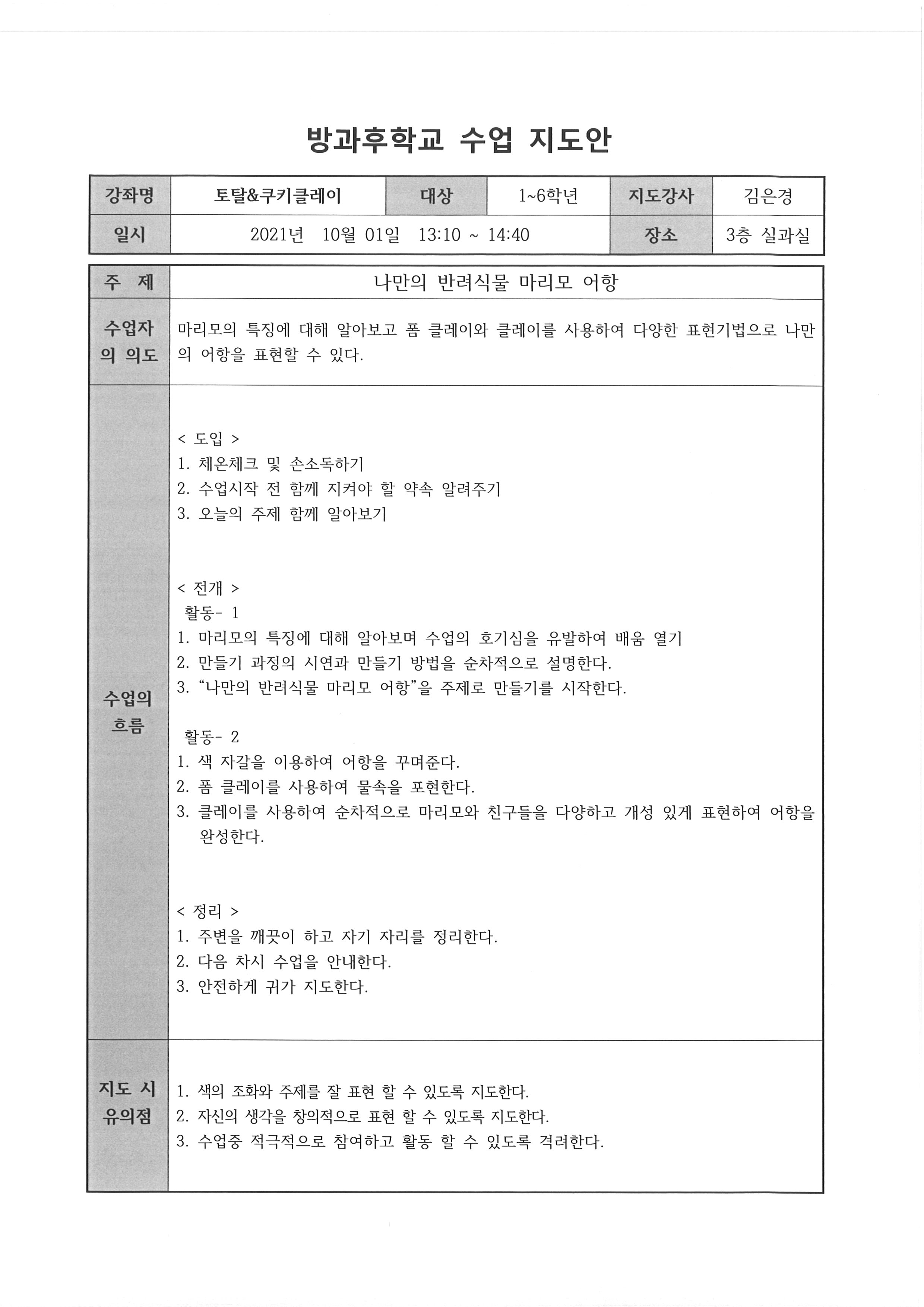 2021. 토탈&쿠키클레이공개수업 지도안