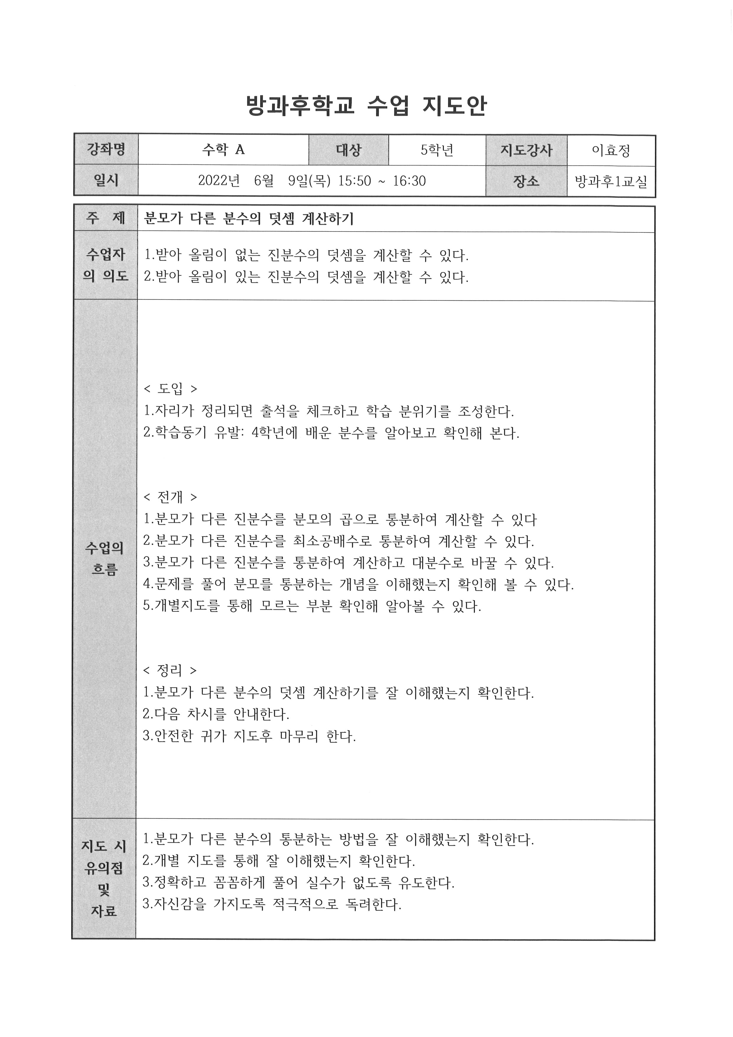 2022학년도 6월 방과후학교 수학A 프로그램 활동일지