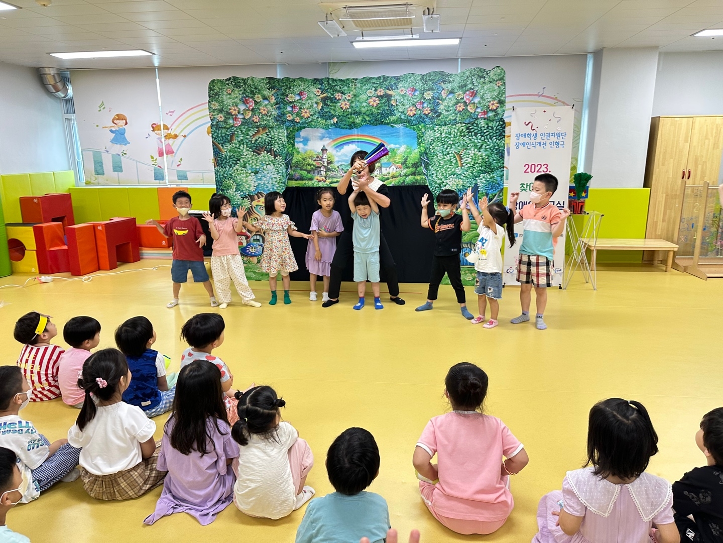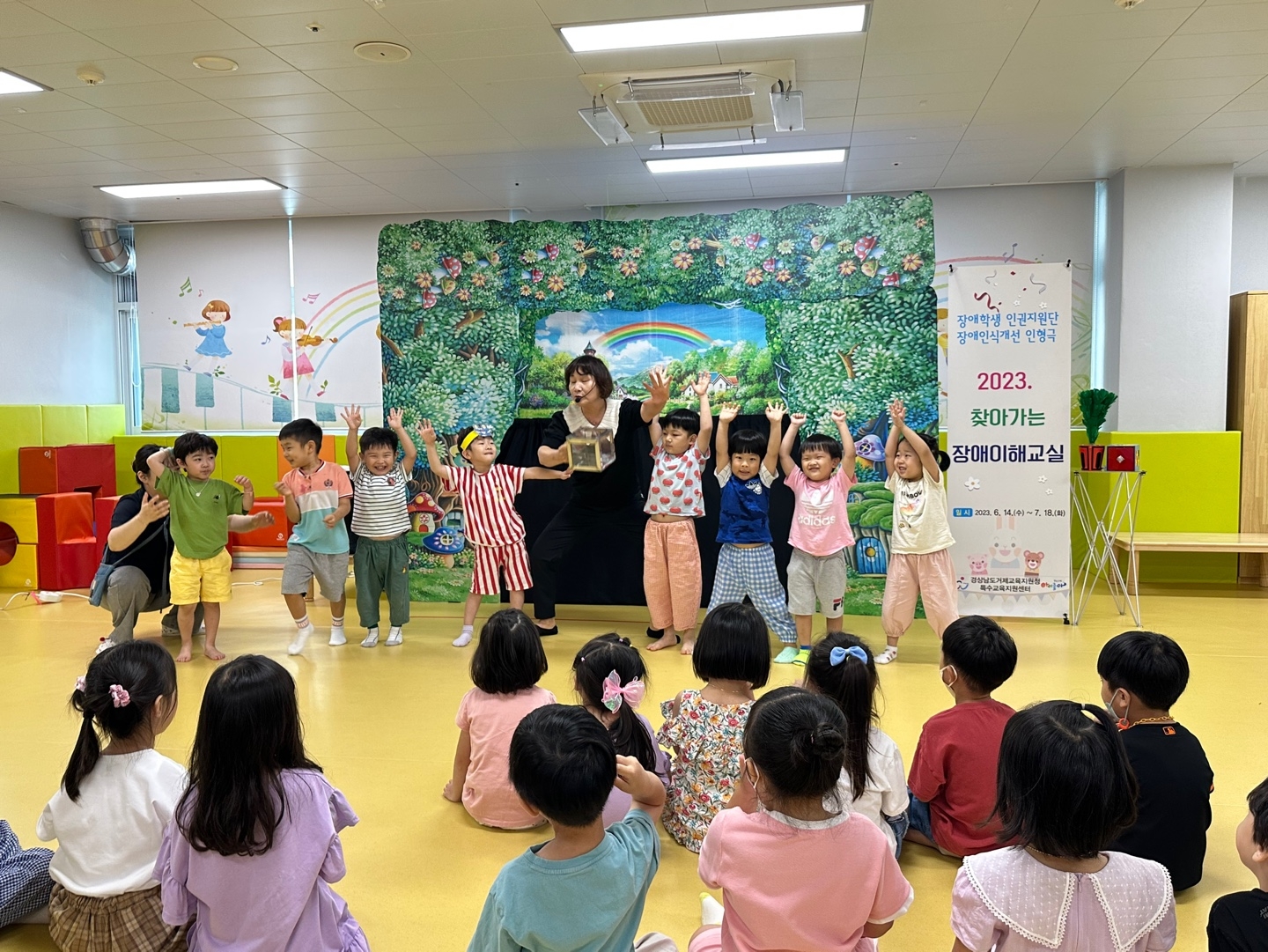 거제양정초등학교병설유치원 유아들과 함께 장애인식개선 인형극을 관람했습니다.