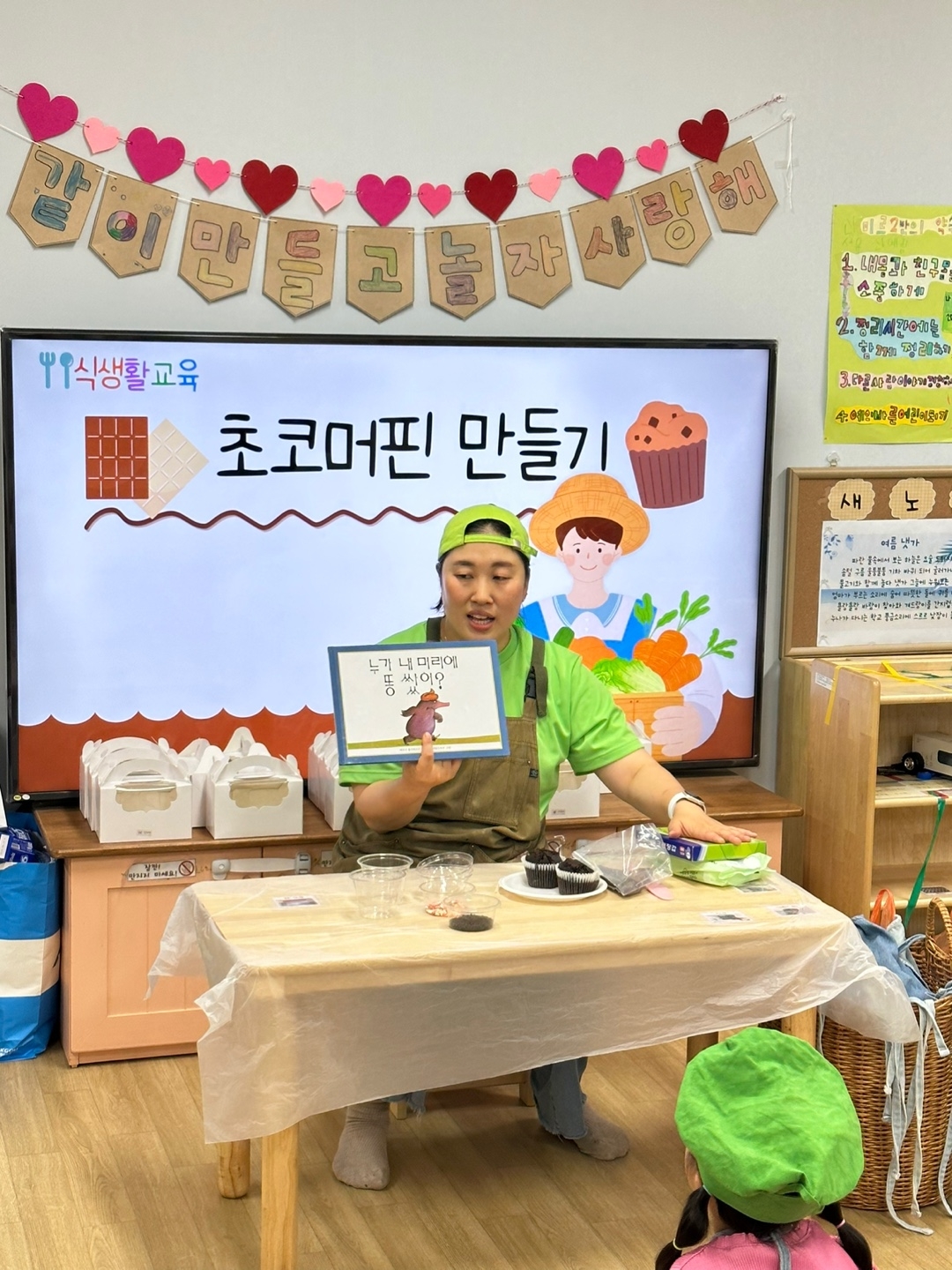 <누가 내 머리게 똥 쌌어?>라는 동화를 듣고 동화 내용과 연계하여 초코머핀을 만들기로 했습니다~ 똥이라는 이야기에 웃음이 났지만 똥에도 여러가지 쓰임새가 있다는 것을 알게 되었습니다.