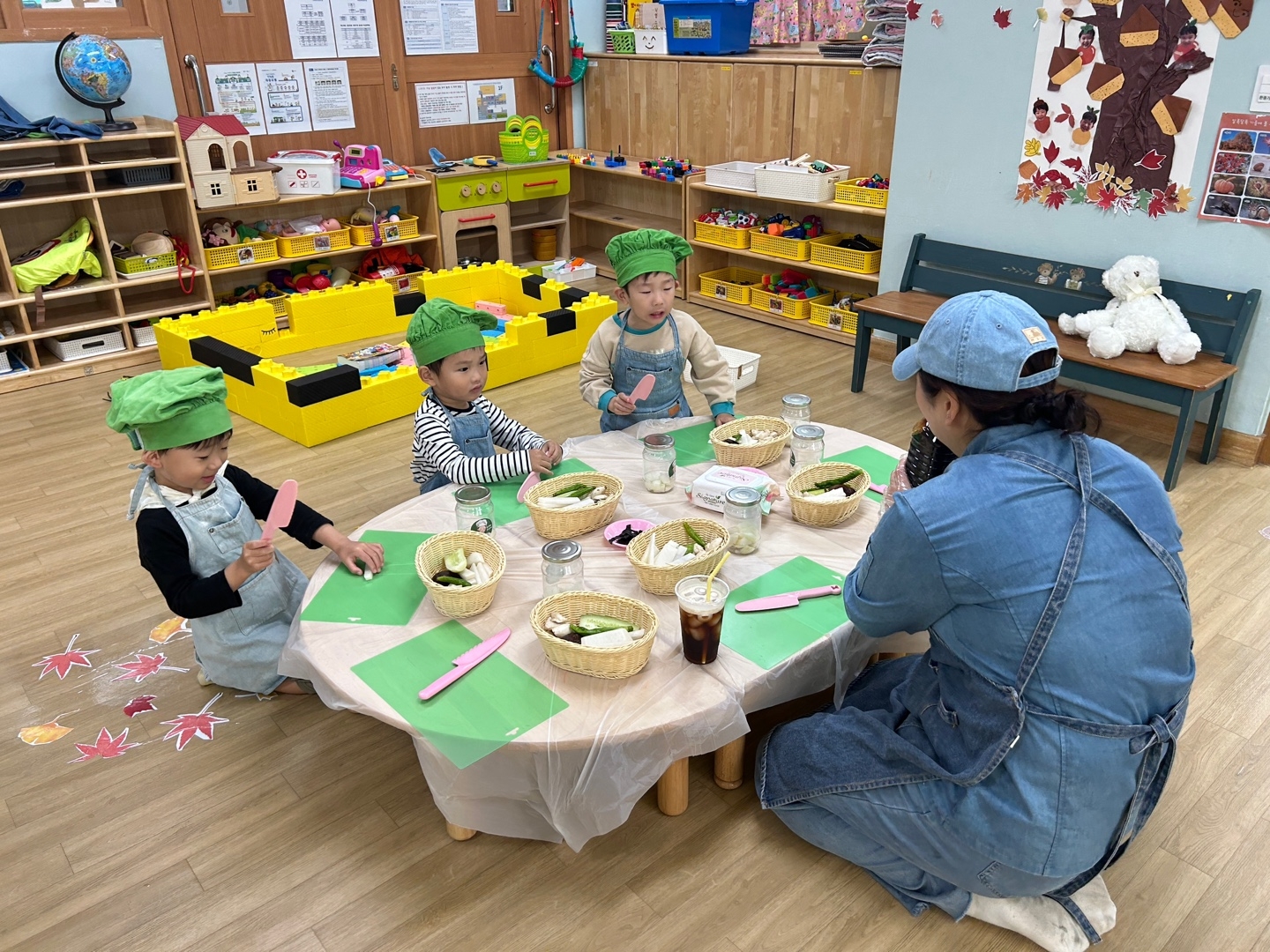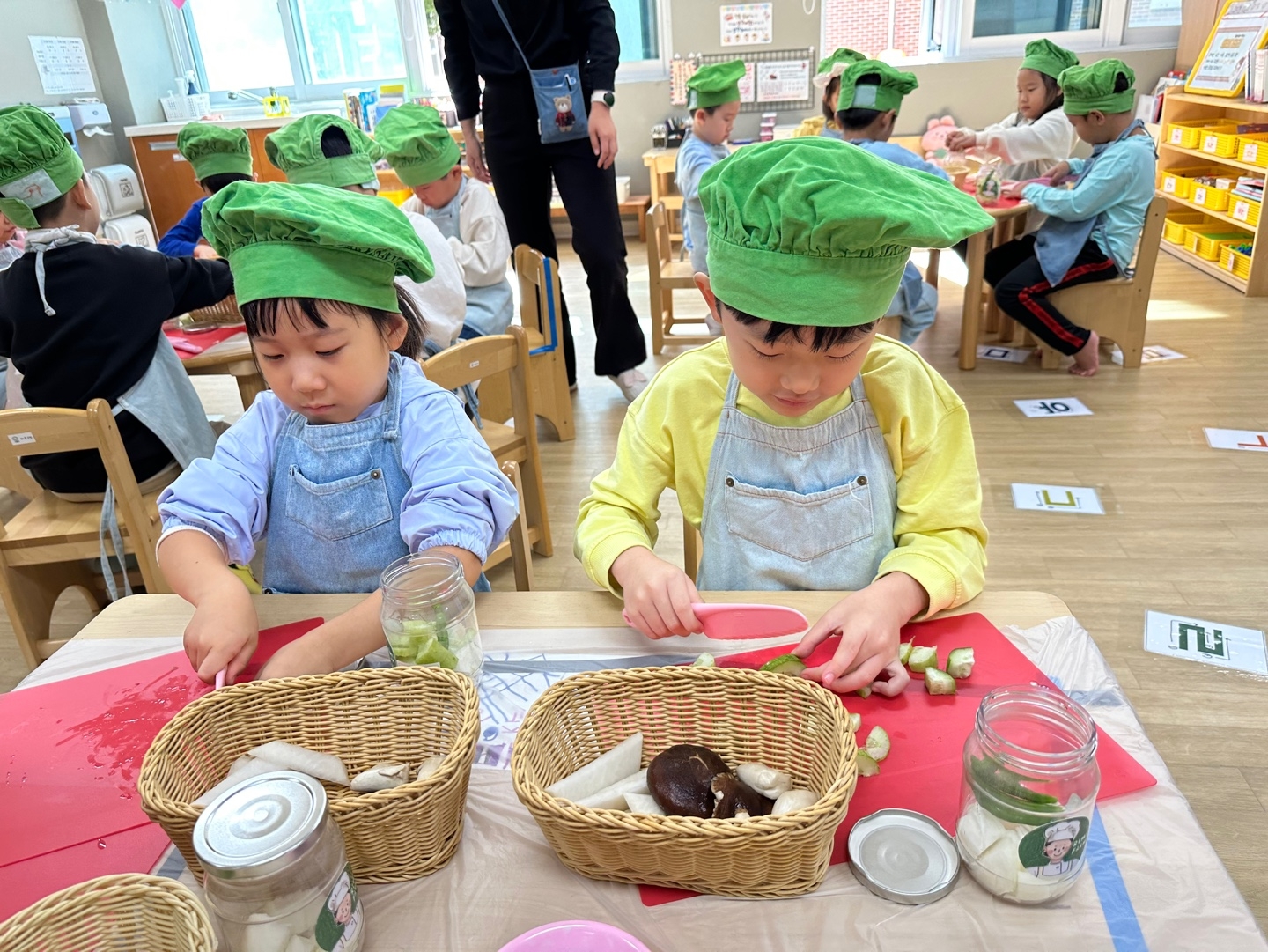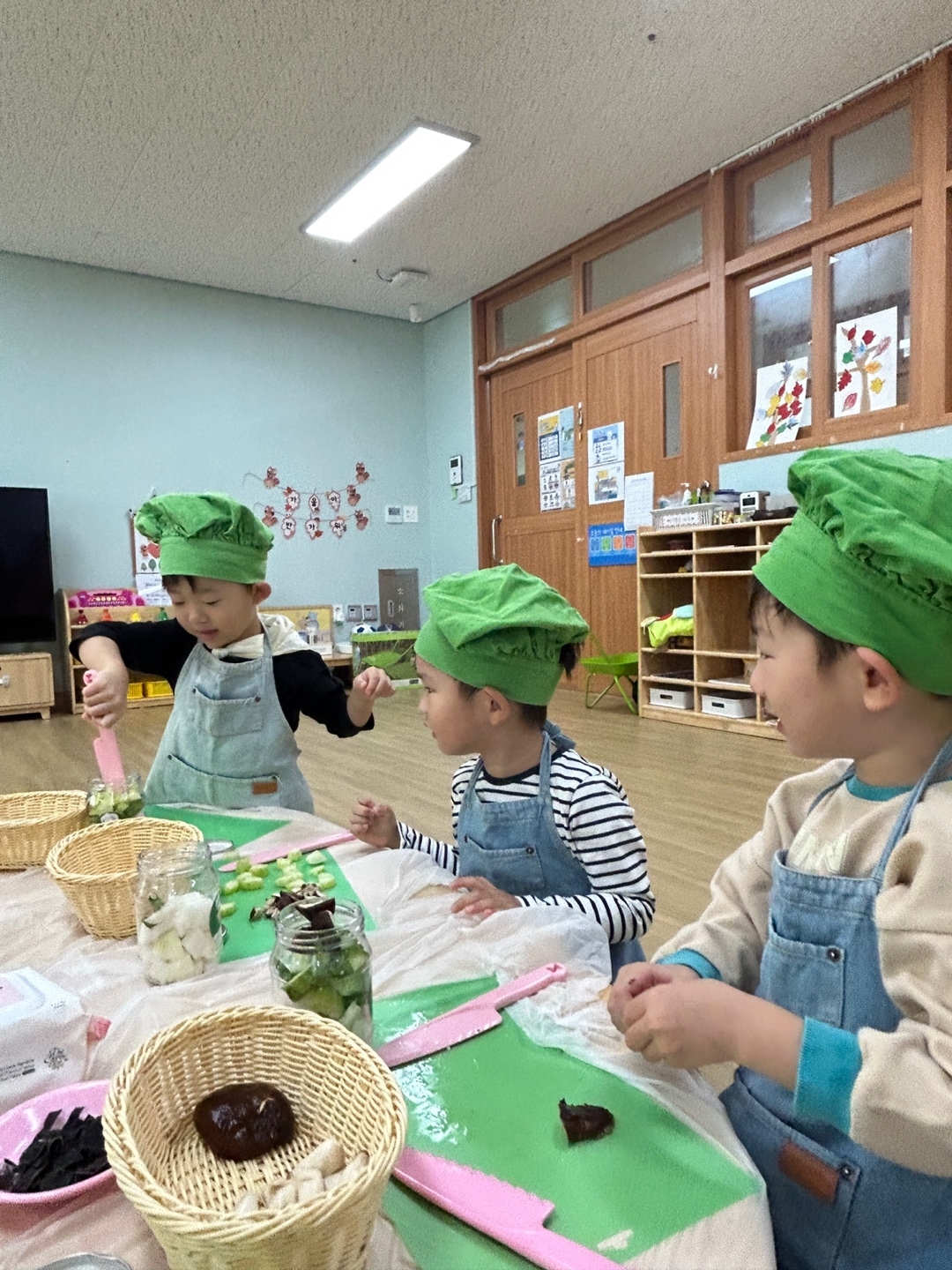 제철 야채 피클 만들기의 재료도 탐색해 보고 냄새도 맡아보며 어떤 냄새가 나는지 어떤 모양인지 친구들과 함께 이야기도 나누고 잘라보며 친구들과 즐겁게 제철 야채 피클 만들기를 했답니다.^^