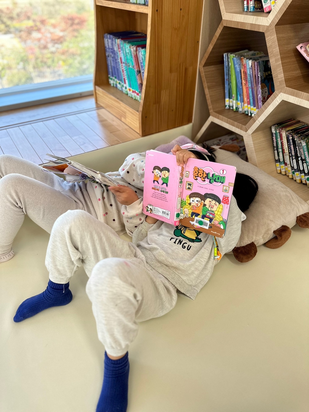 책을 읽고 있는 아이들의 모습을 보니 여유로움이 느껴지네요.