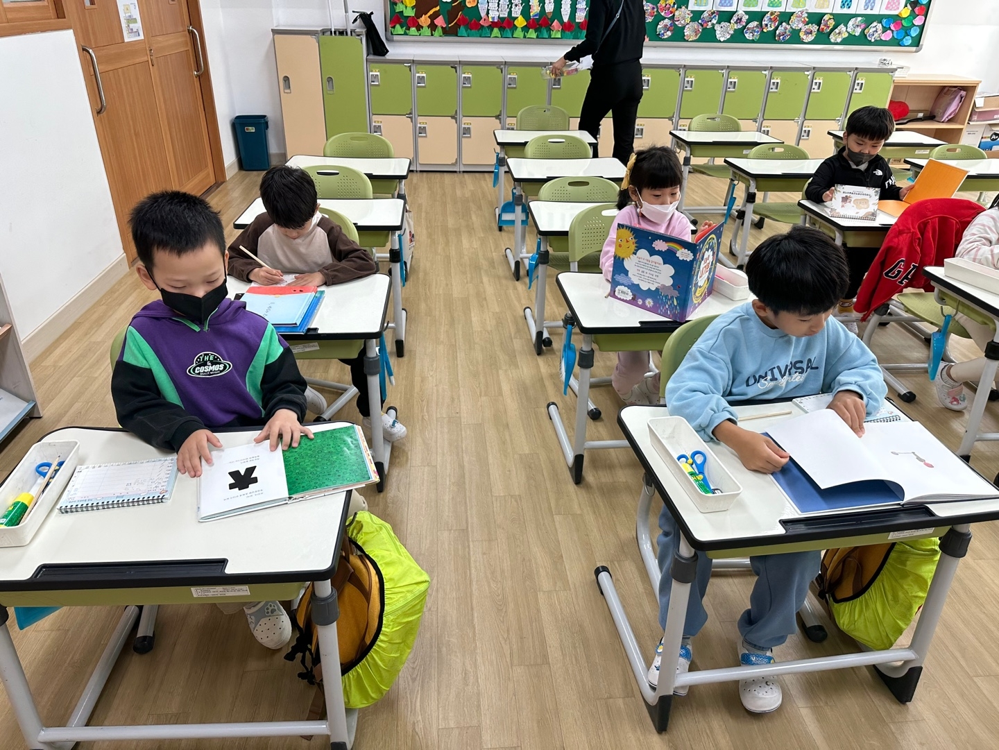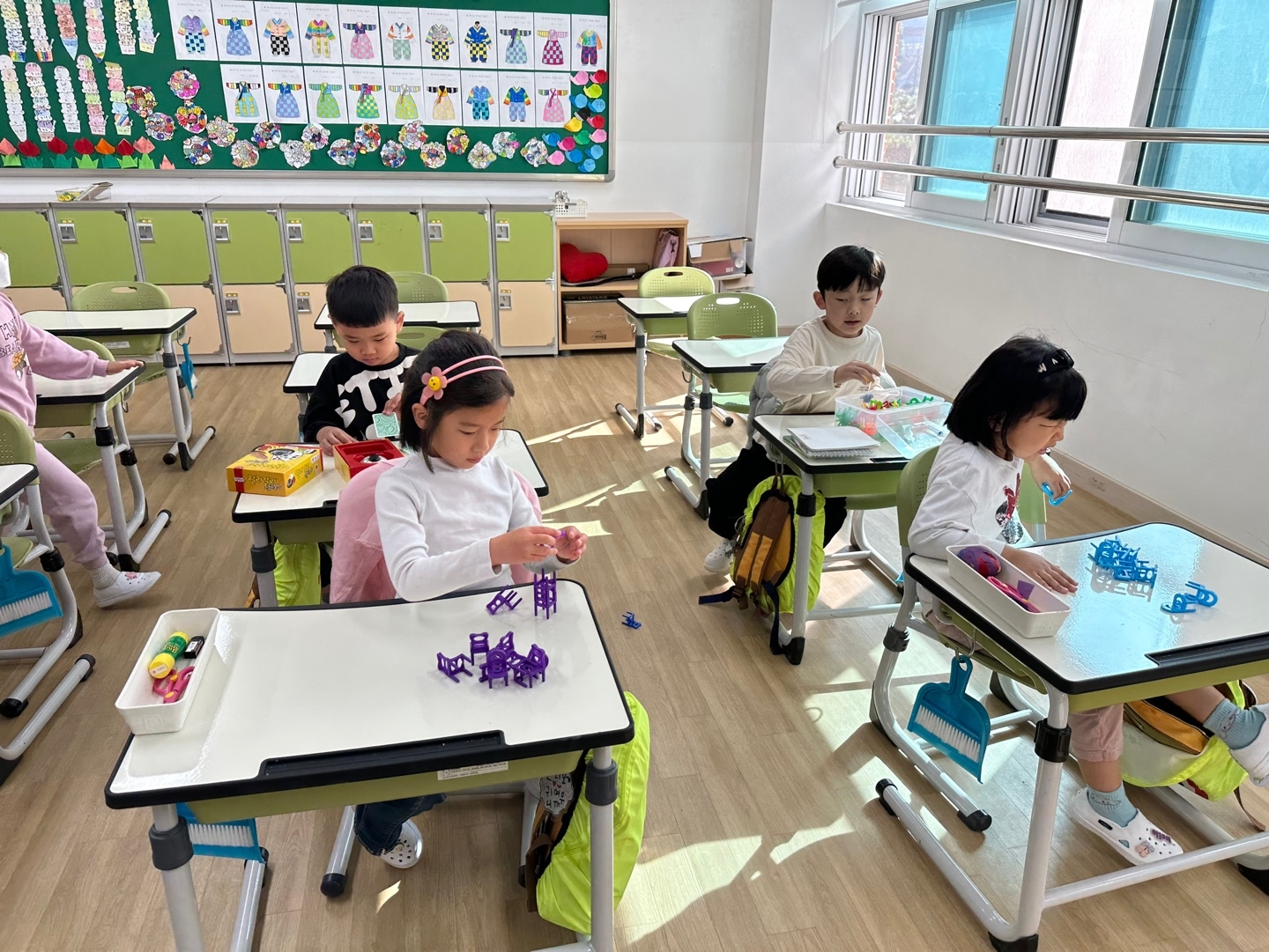 첫 번째 쉬는시간 종이 울렸을때는 환호성을 지르며 자유롭게 화장실도 다녀오고 친구들과 삼삼오오 모여 보드게임을 하기도 했어요! 신나게 놀다가도 수업시간 종이치면 자리에 멋지게 앉아 다음 수업을 준비하는 아이들의 모습이 정말 기특하고 또 뭉클하기도 했어요!