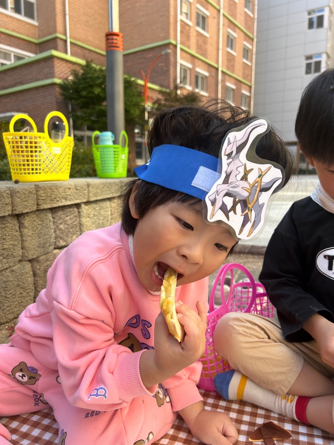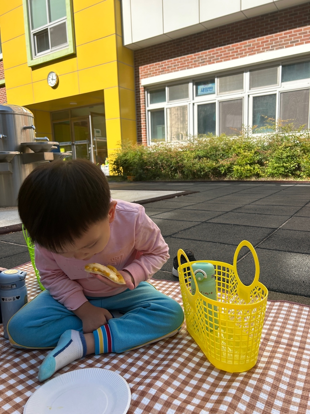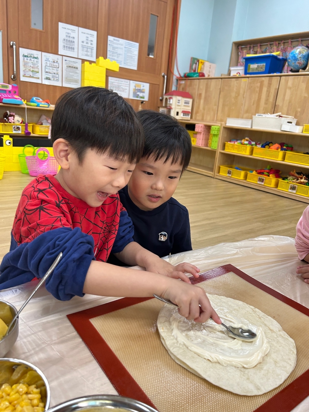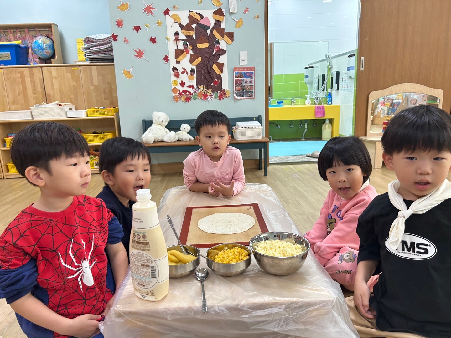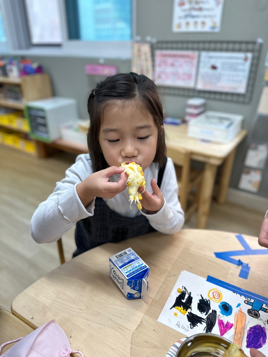"선생님! 제가 만든 피자 너무 맛있어요."라고 하며 즐거워하며 먹는 모습이 너무 사랑스러웠어요.^^