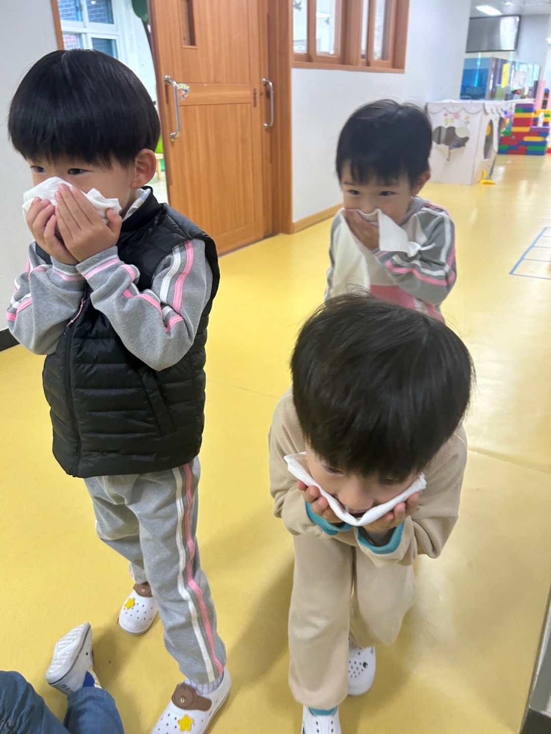 화재 발생시 어떻게 대피하여야 하는지 사전에 아이들과 이야기를 나누었습니다.
