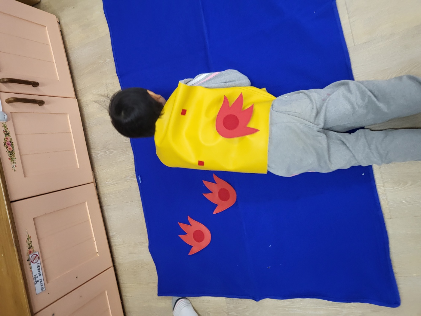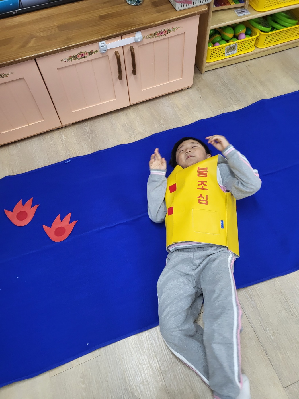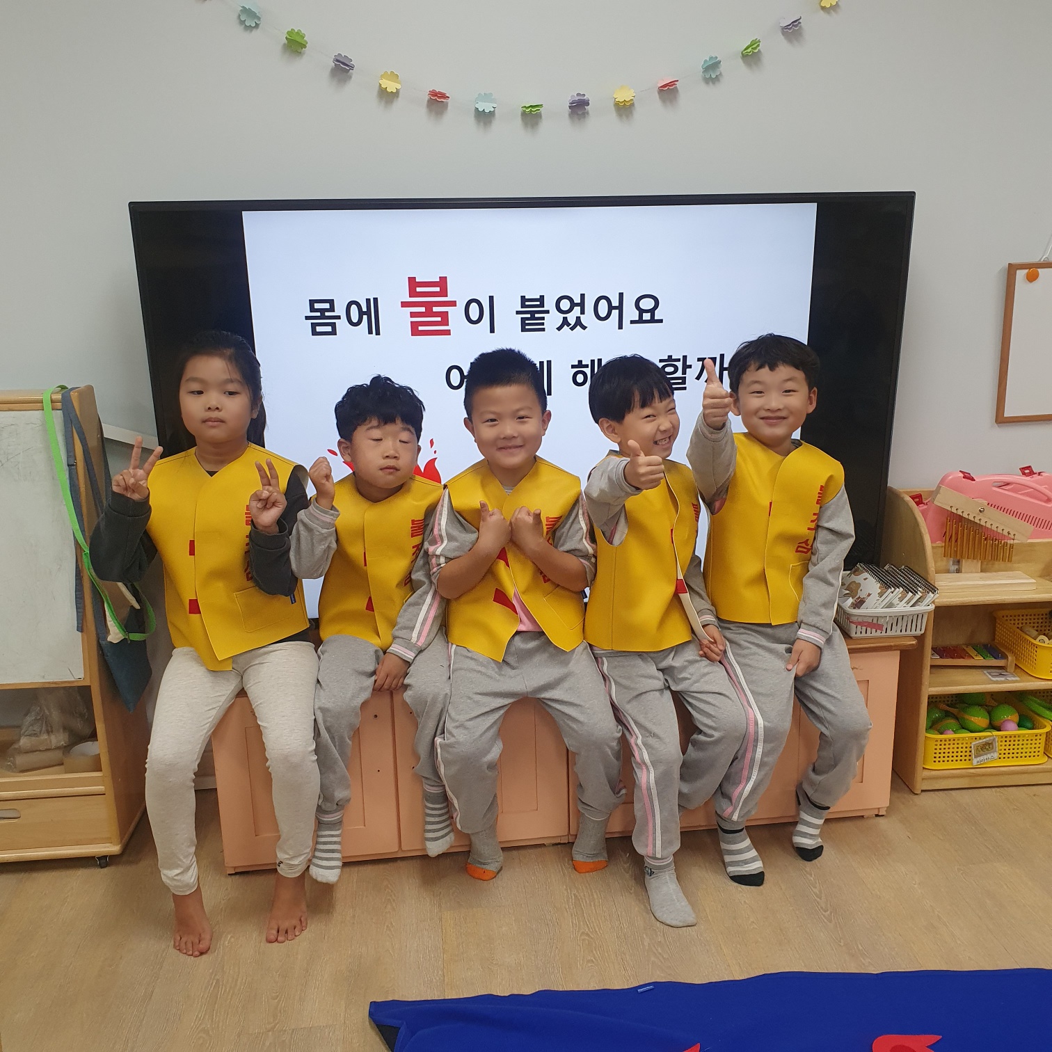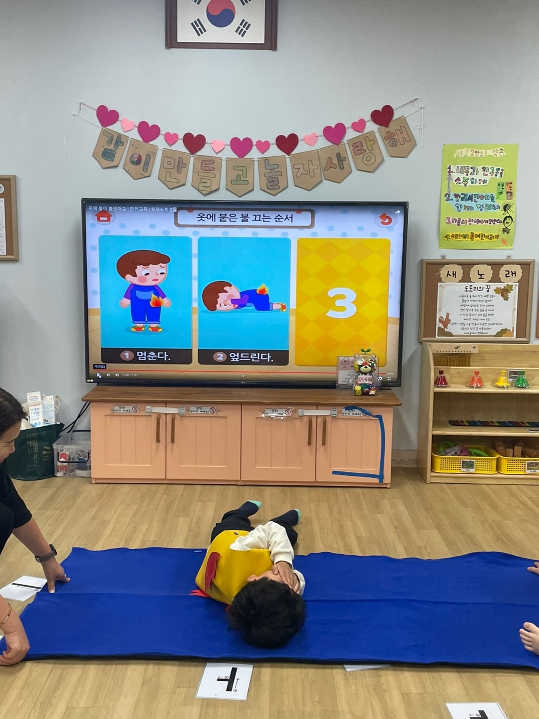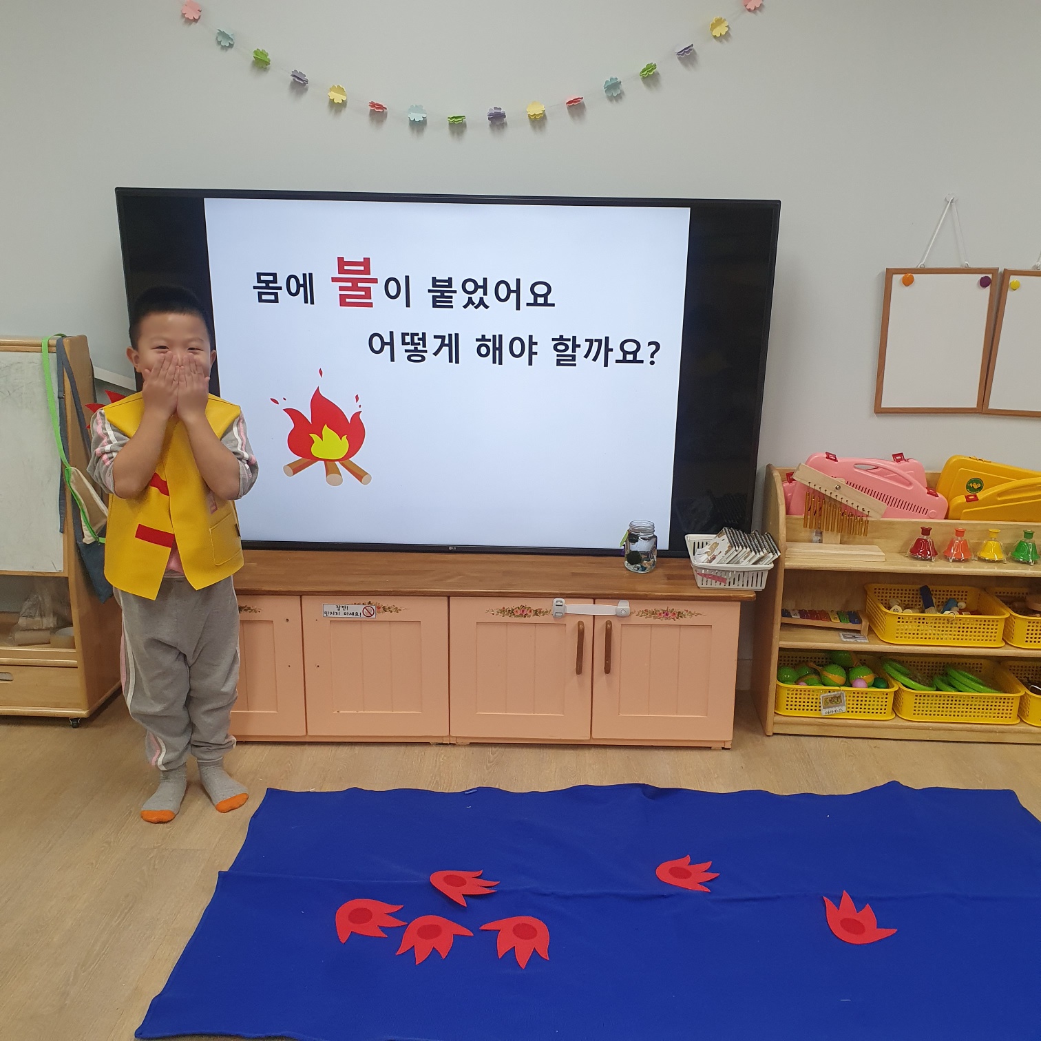 몸에 불이 붙었을 때 어떻게 해야 하는지 대응법에 대해 아이들과 이야기를 나누고
