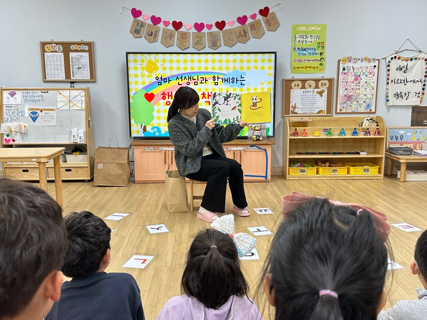 엄마 선생님이 오셔서 책을 읽어주시니 아이들이 더욱 반짝반짝한 눈으로 흥미롭게 동화책을 들을 수 있었습니다~^^