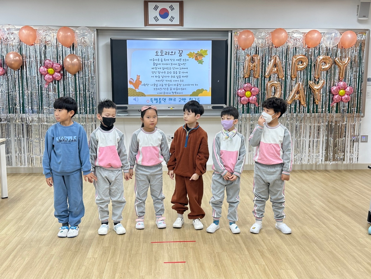 1학년 형님들의 노래 공연을 보며 함께 박수를 쳐주기도 하고 우리가 준비한 작은 공연을 보여주는 시간도 가졌어요*^^*