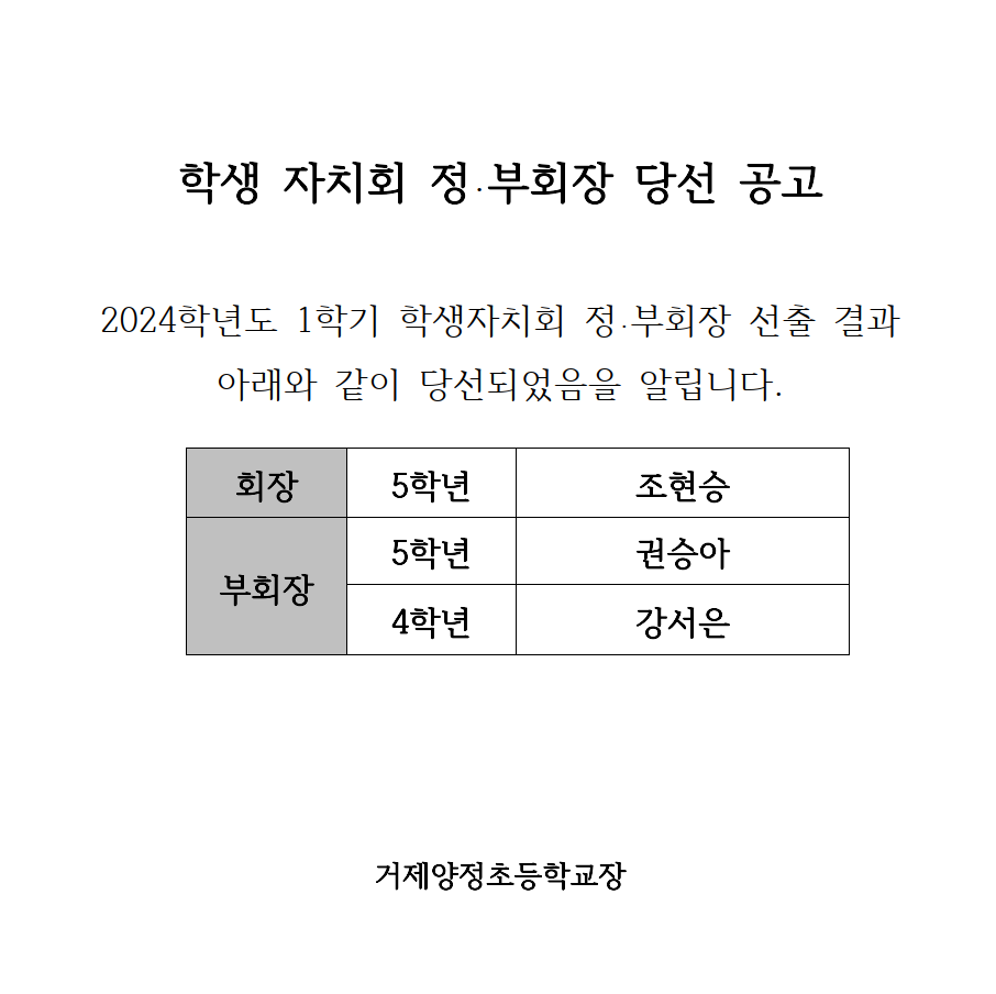 2024학년도 1학기 학생자치회 정부회장 당선 공고