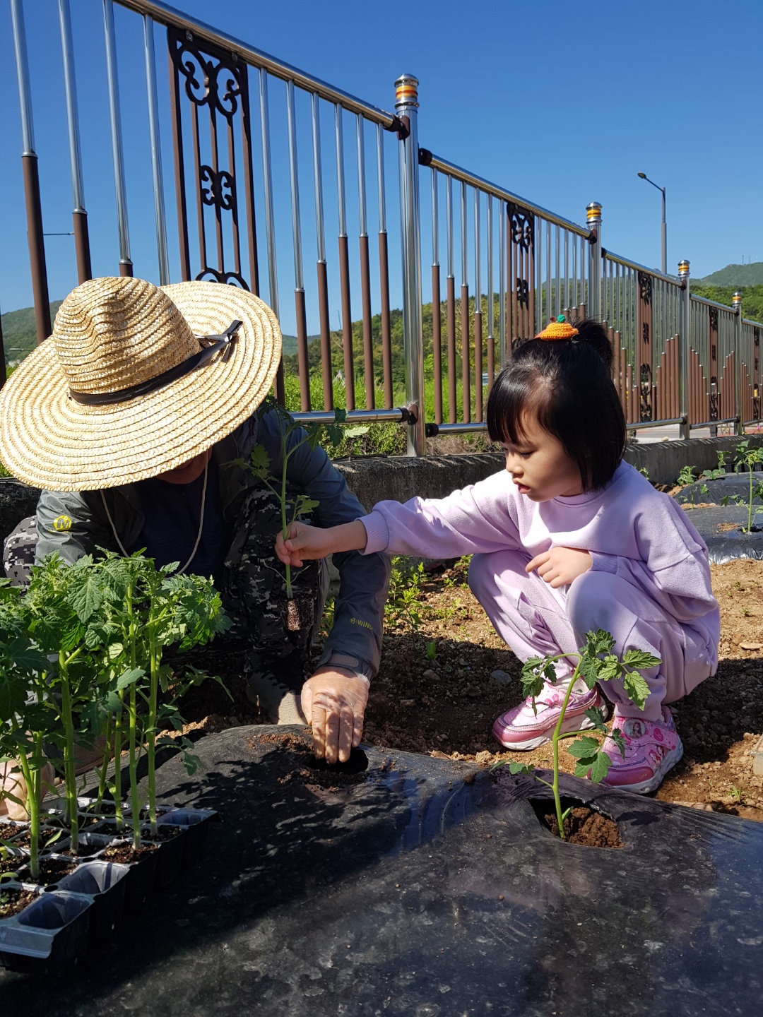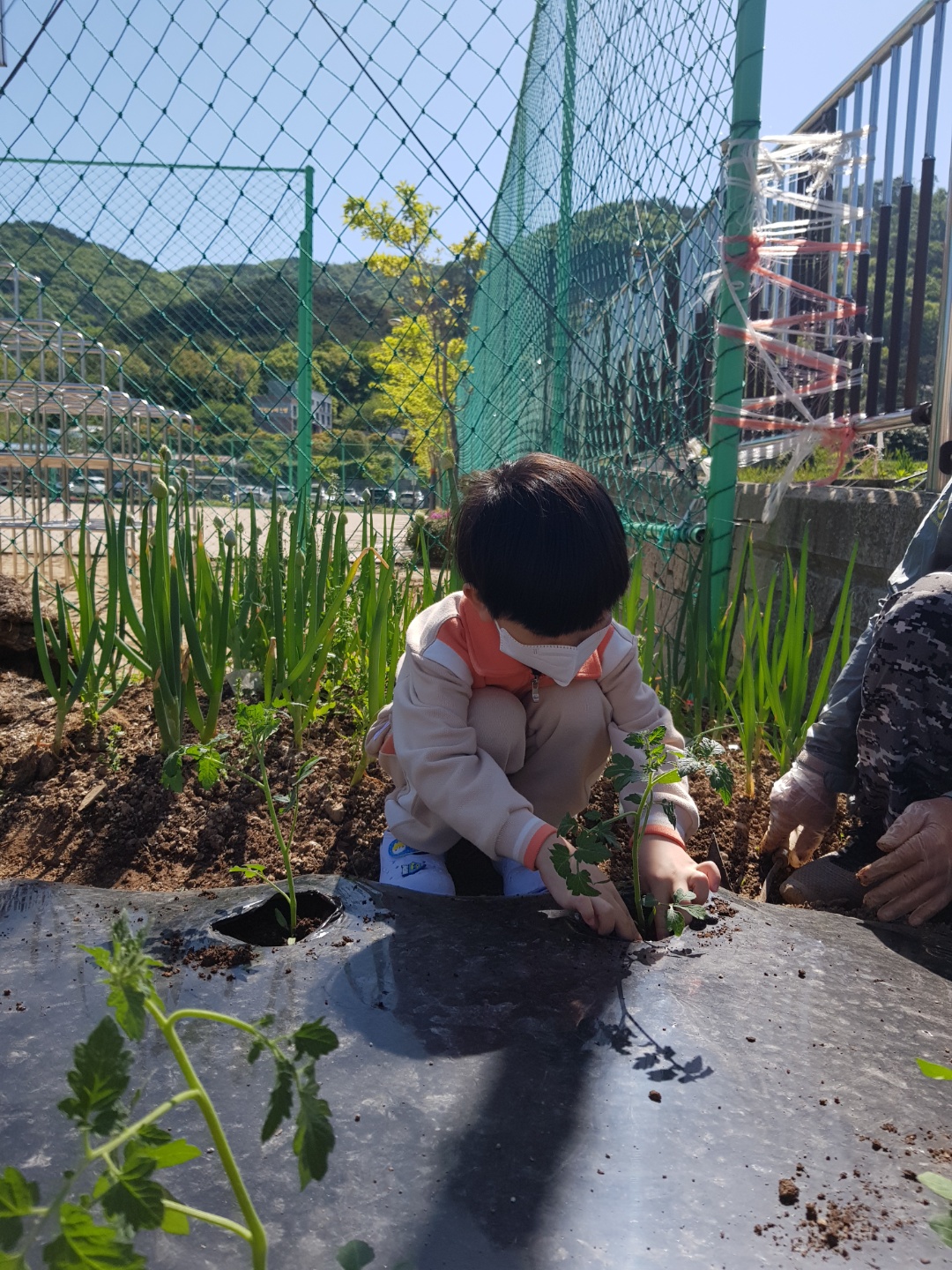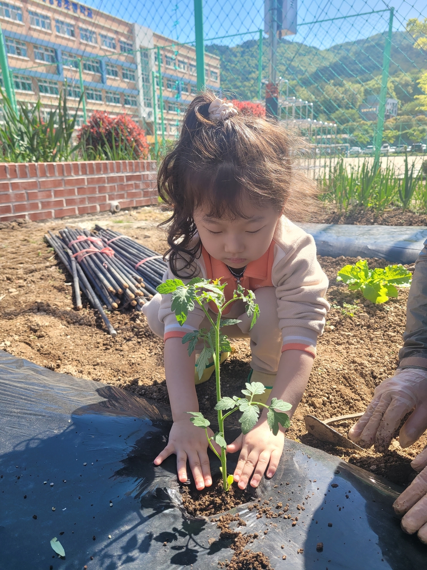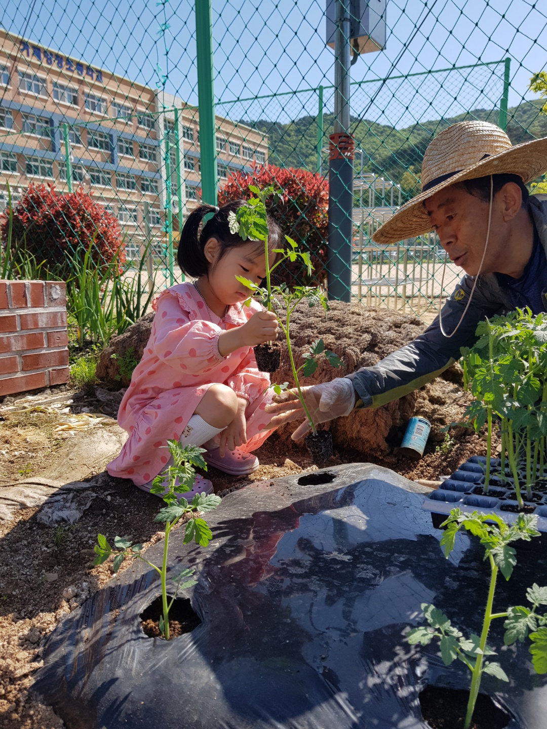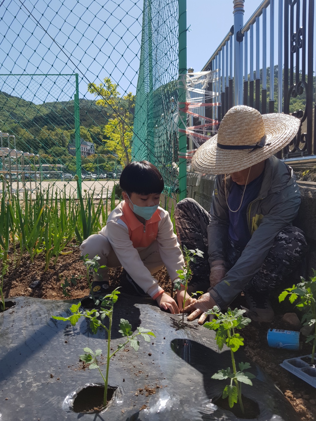 텃밭에 모종을 심었어요.