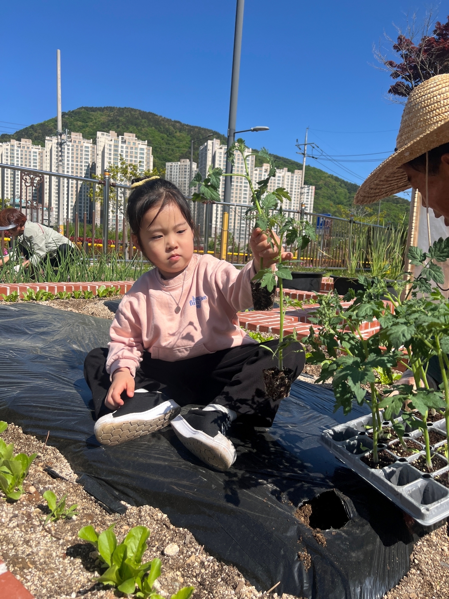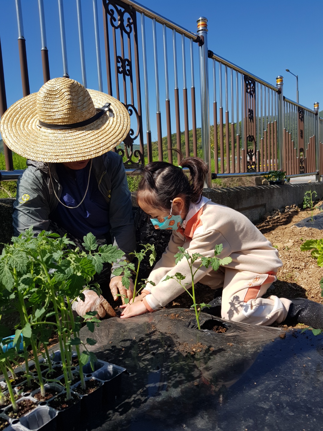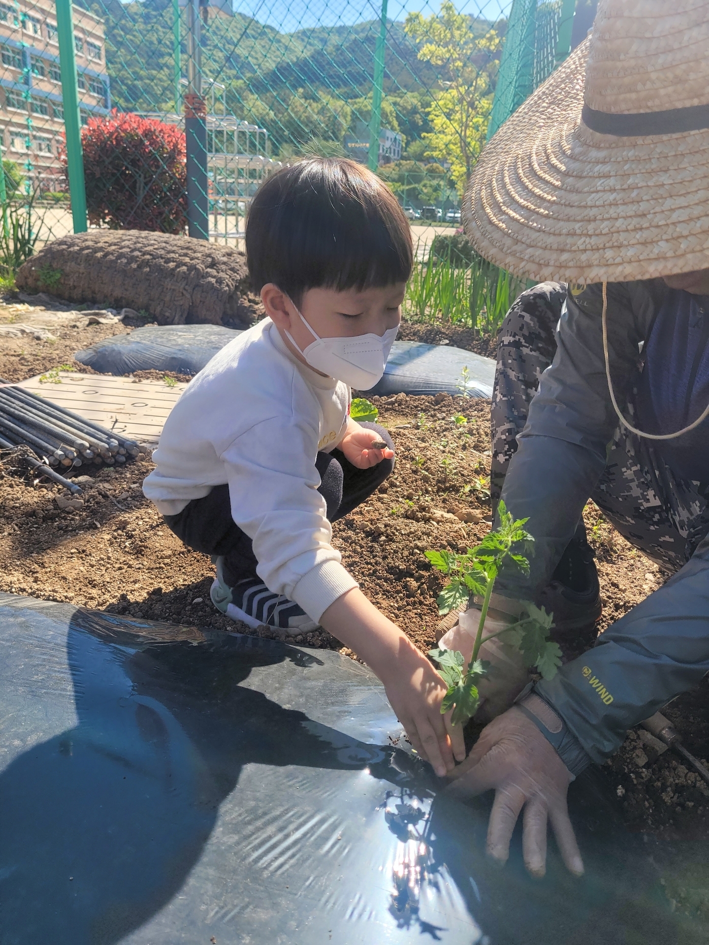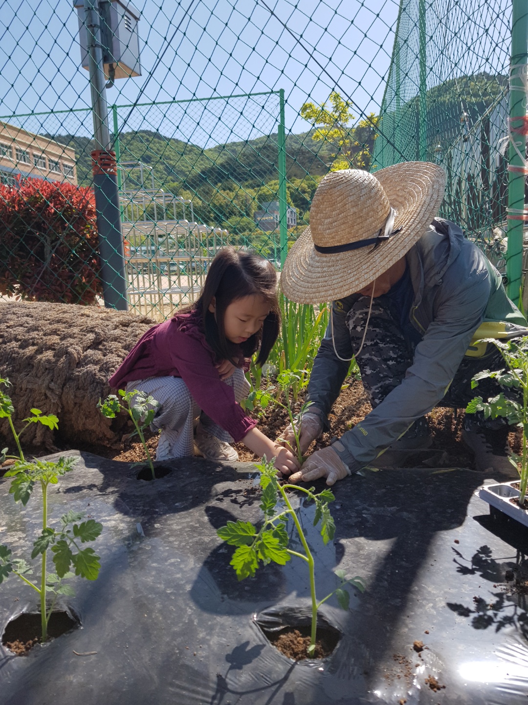 텃밭에 모종을 심었어요.