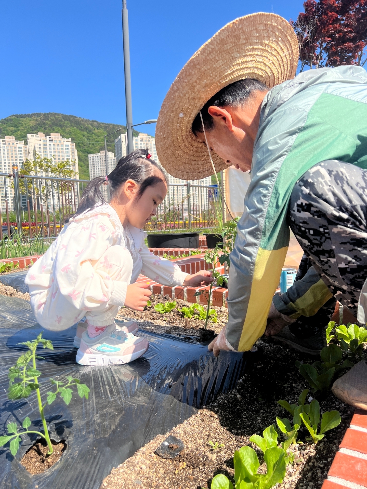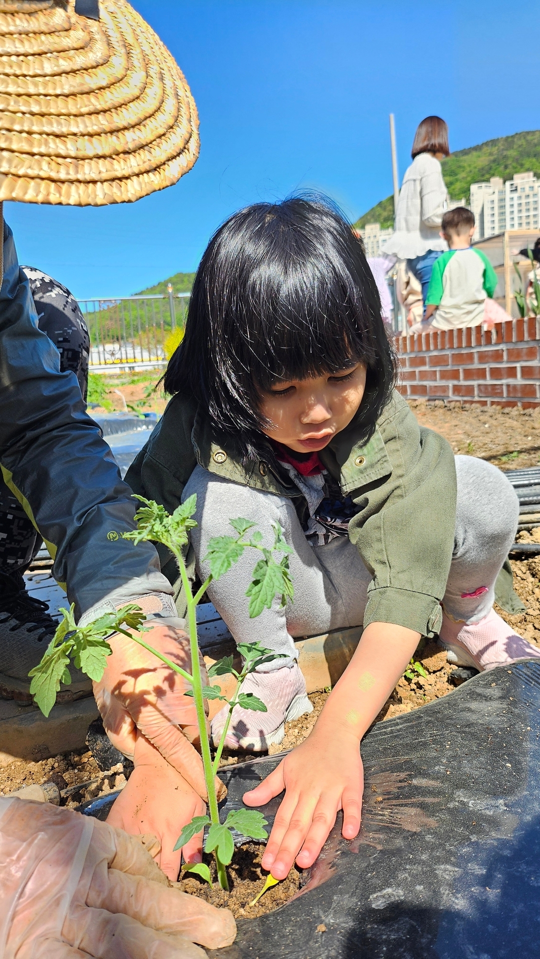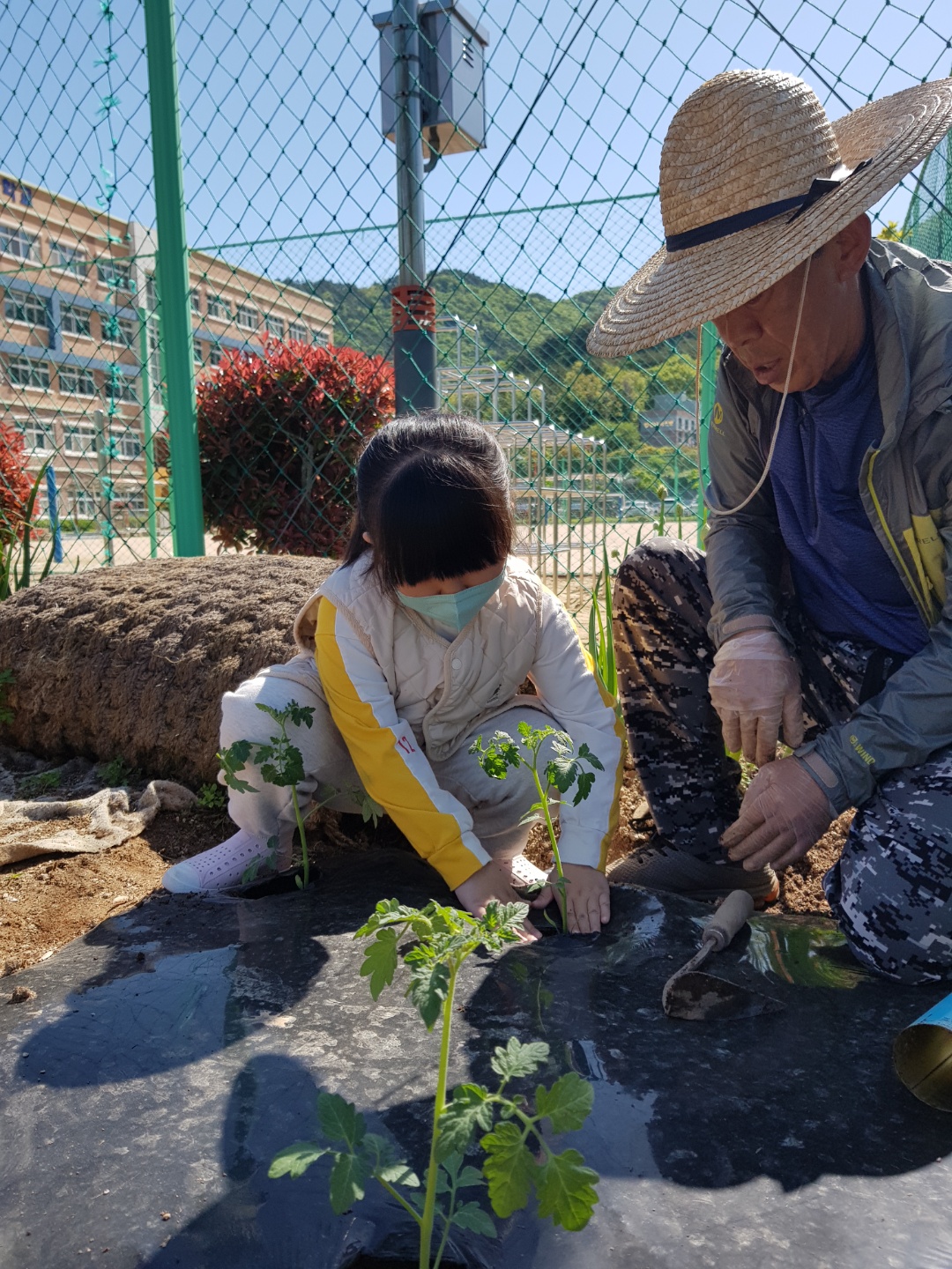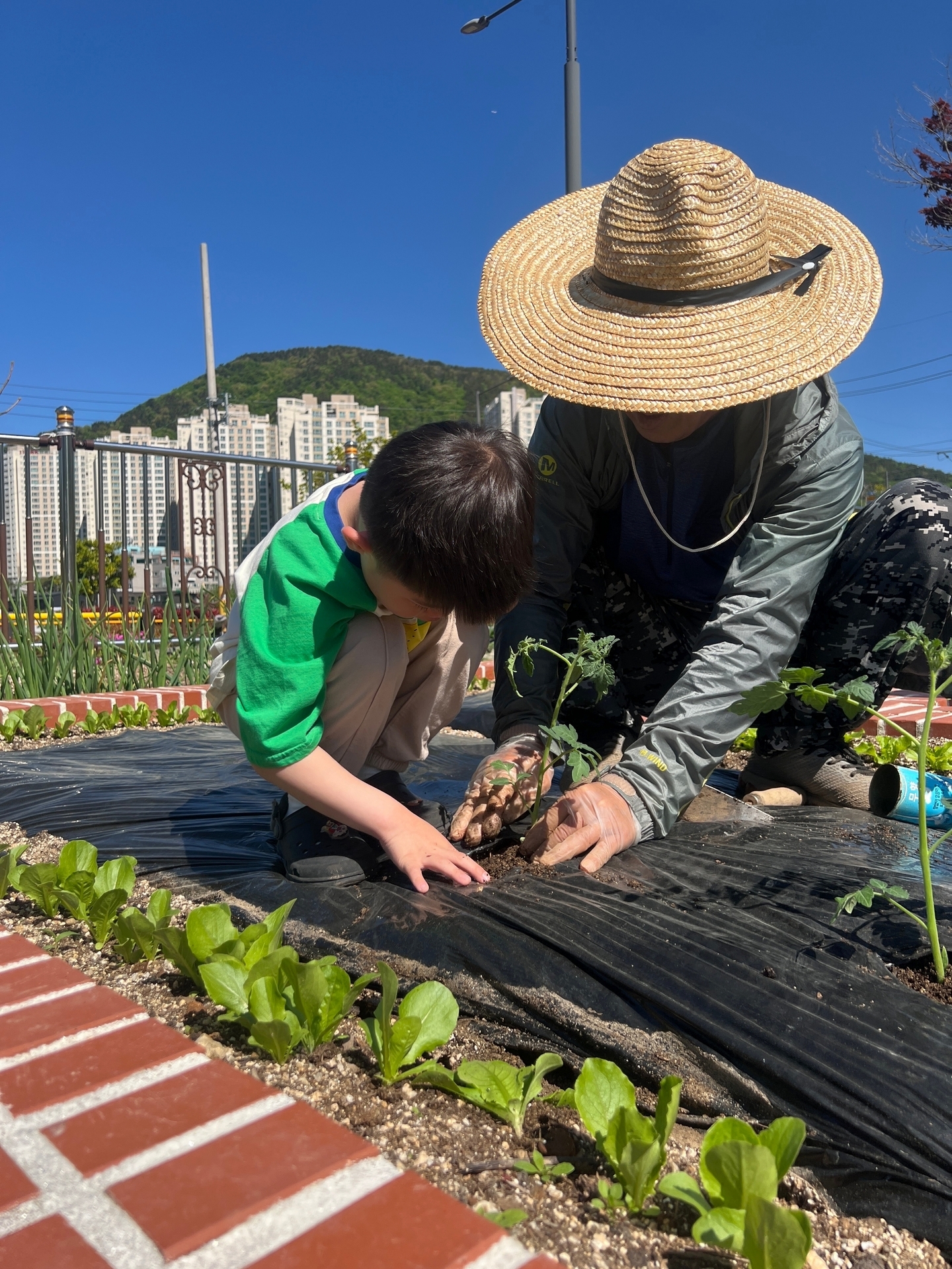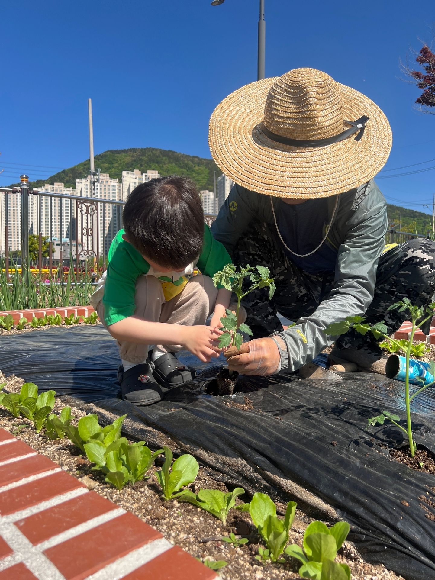텃밭에 모종을 심었어요.