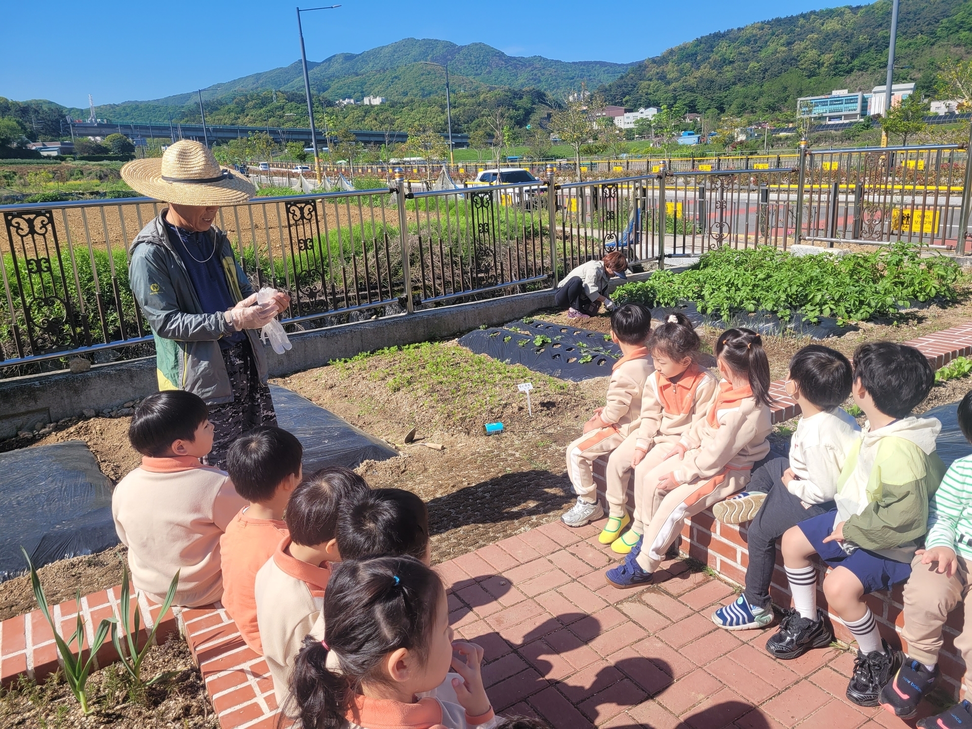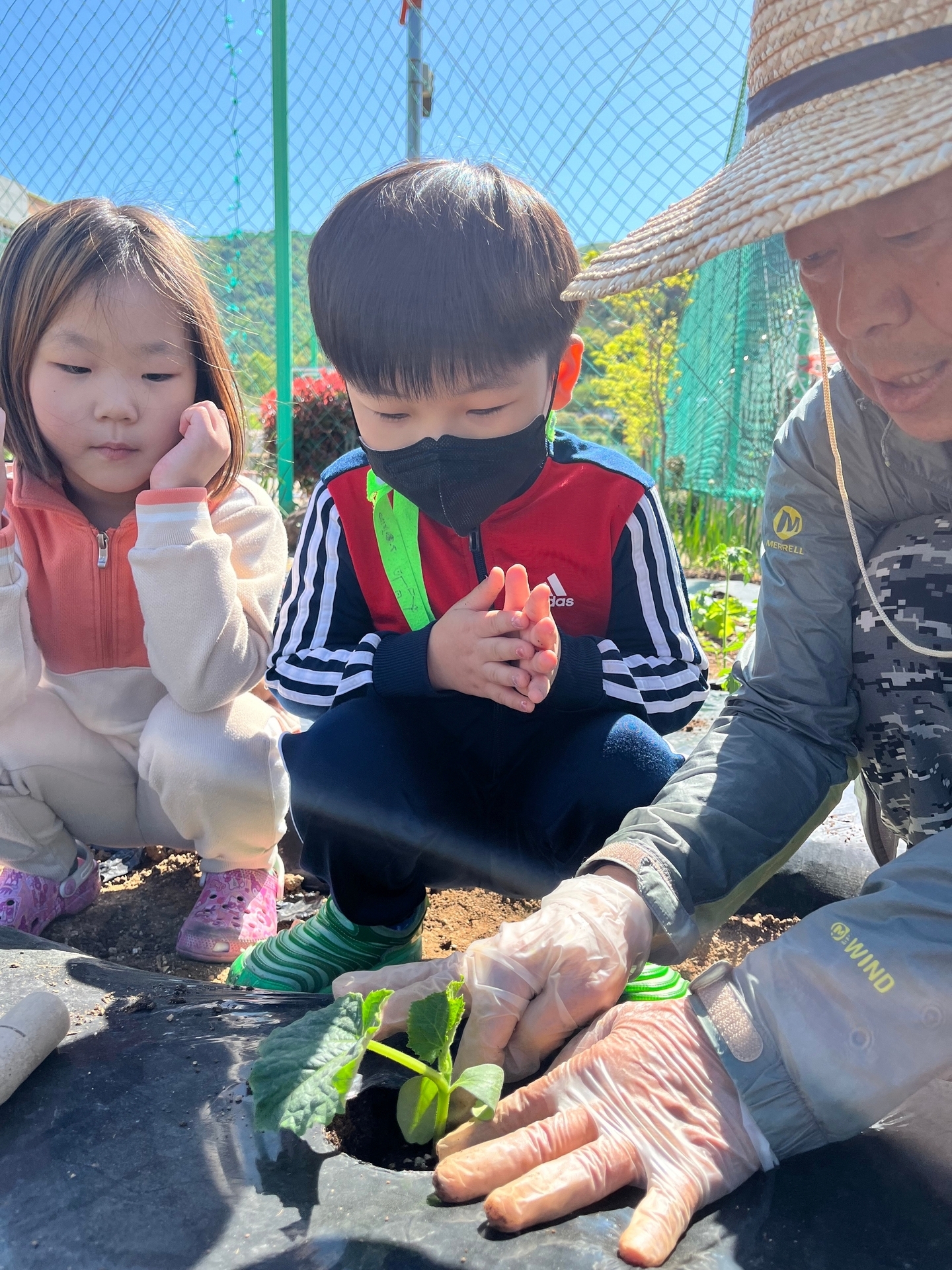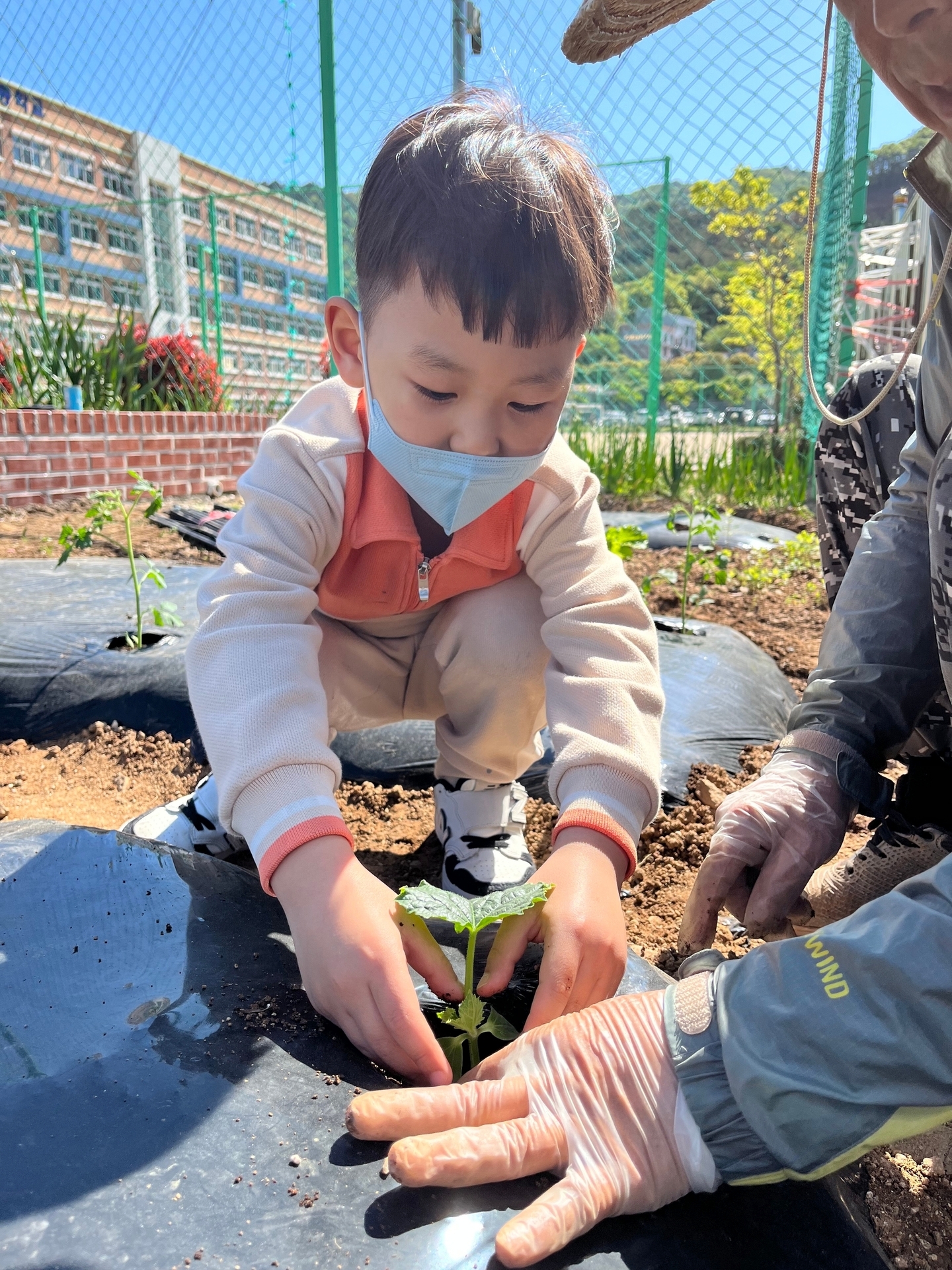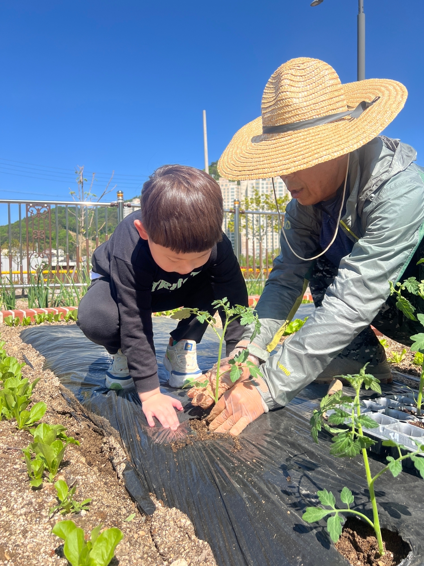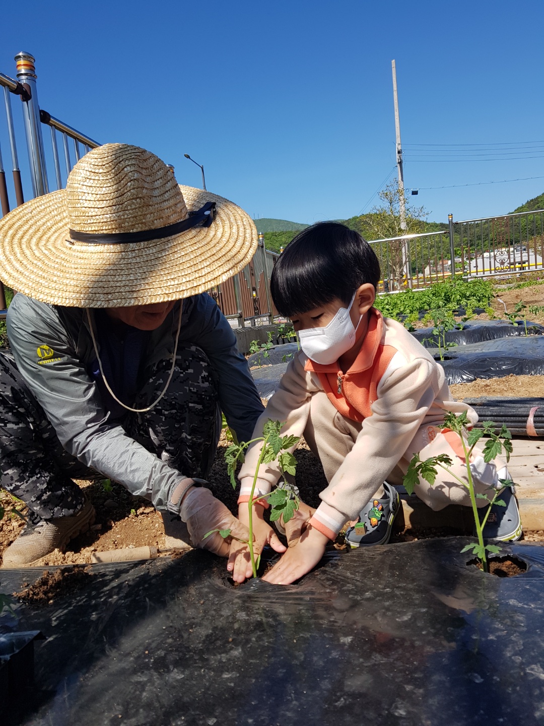 텃밭에 모종을 심었어요.