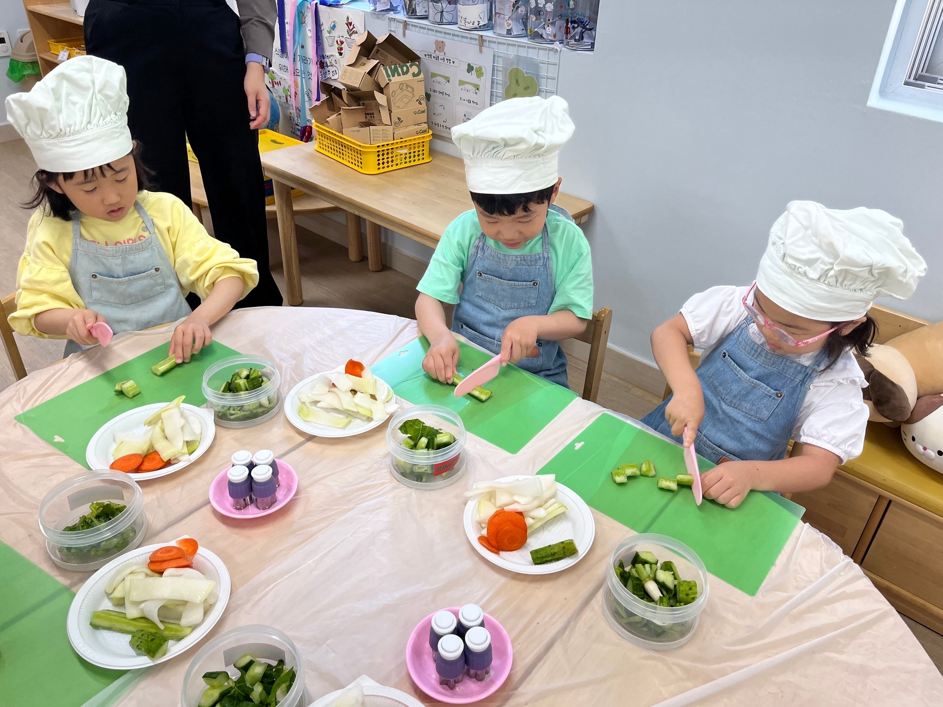 오이와 파프리카, 양파를 직접 썰어보고, 당근은 모양칼로