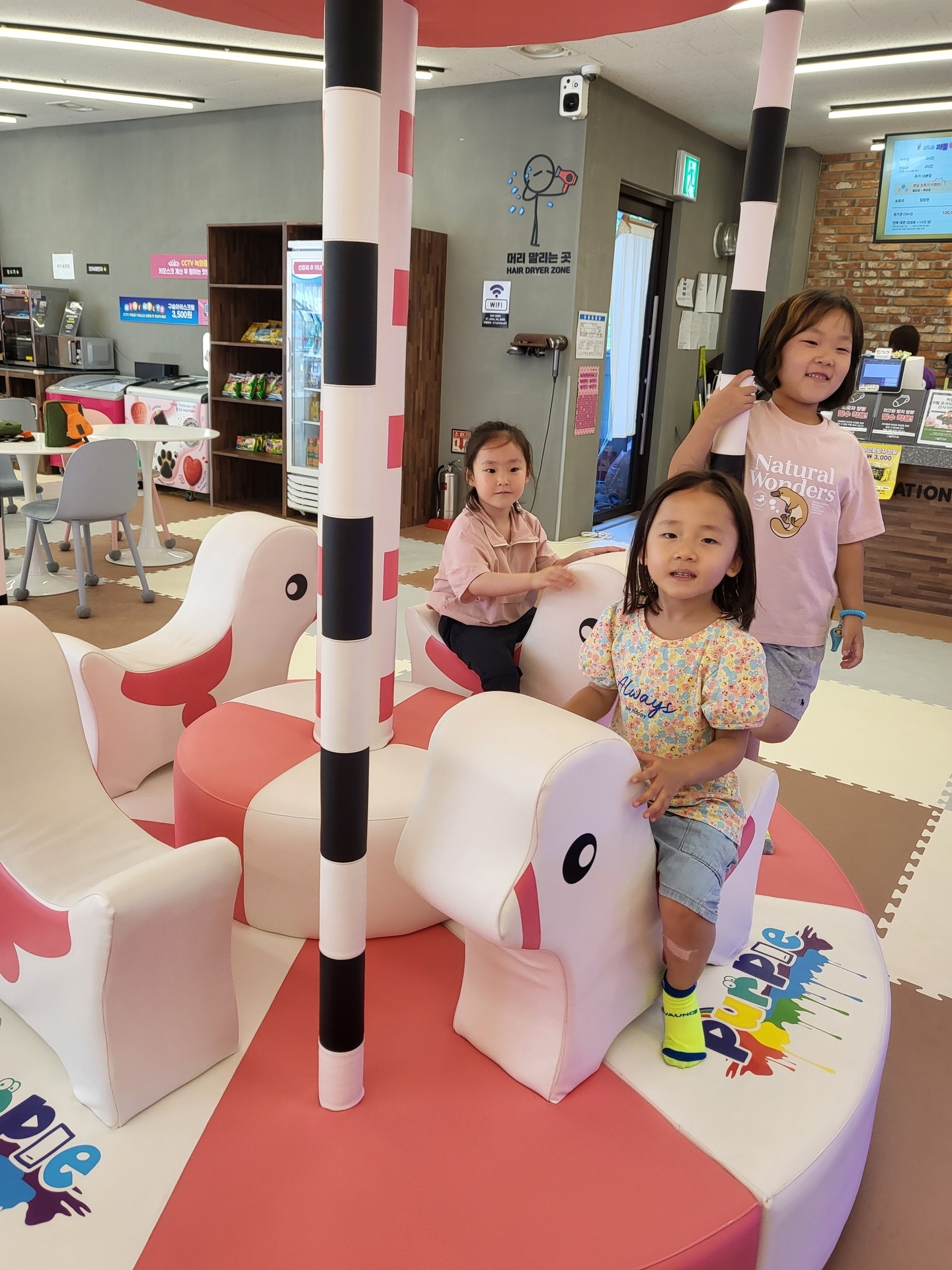 퍼플 키즈카페는 볼풀장, 회전목마, 역할놀이존, 낚시터,