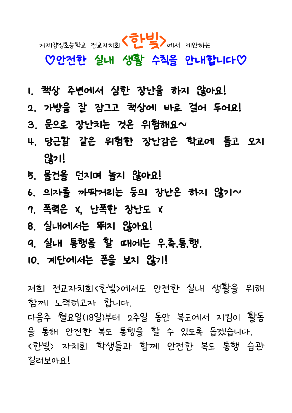 3월 제 1회 거제양정초 전교자치회의 결과입니다.