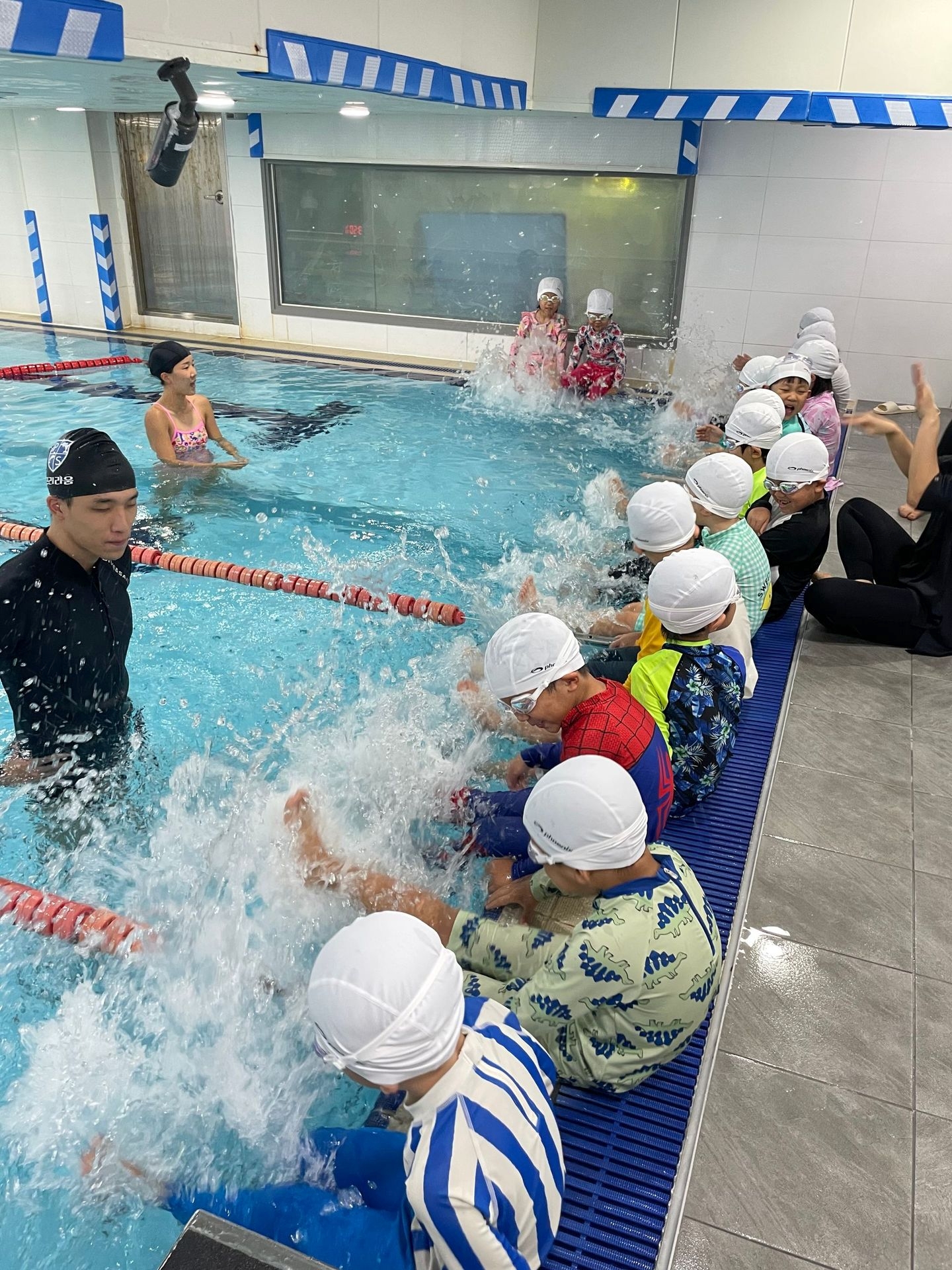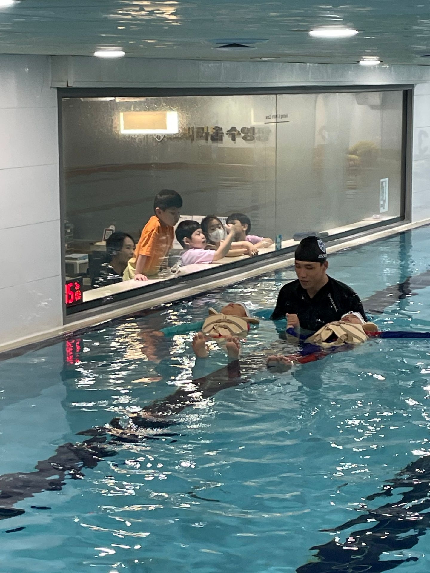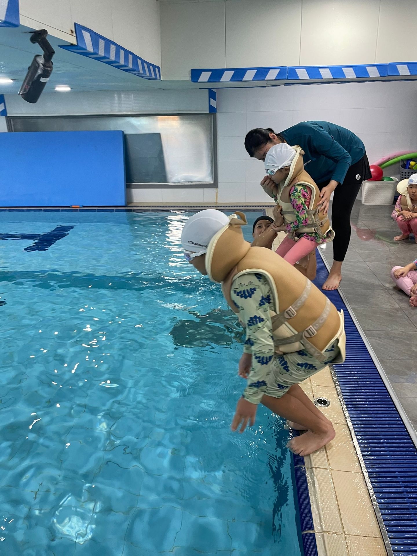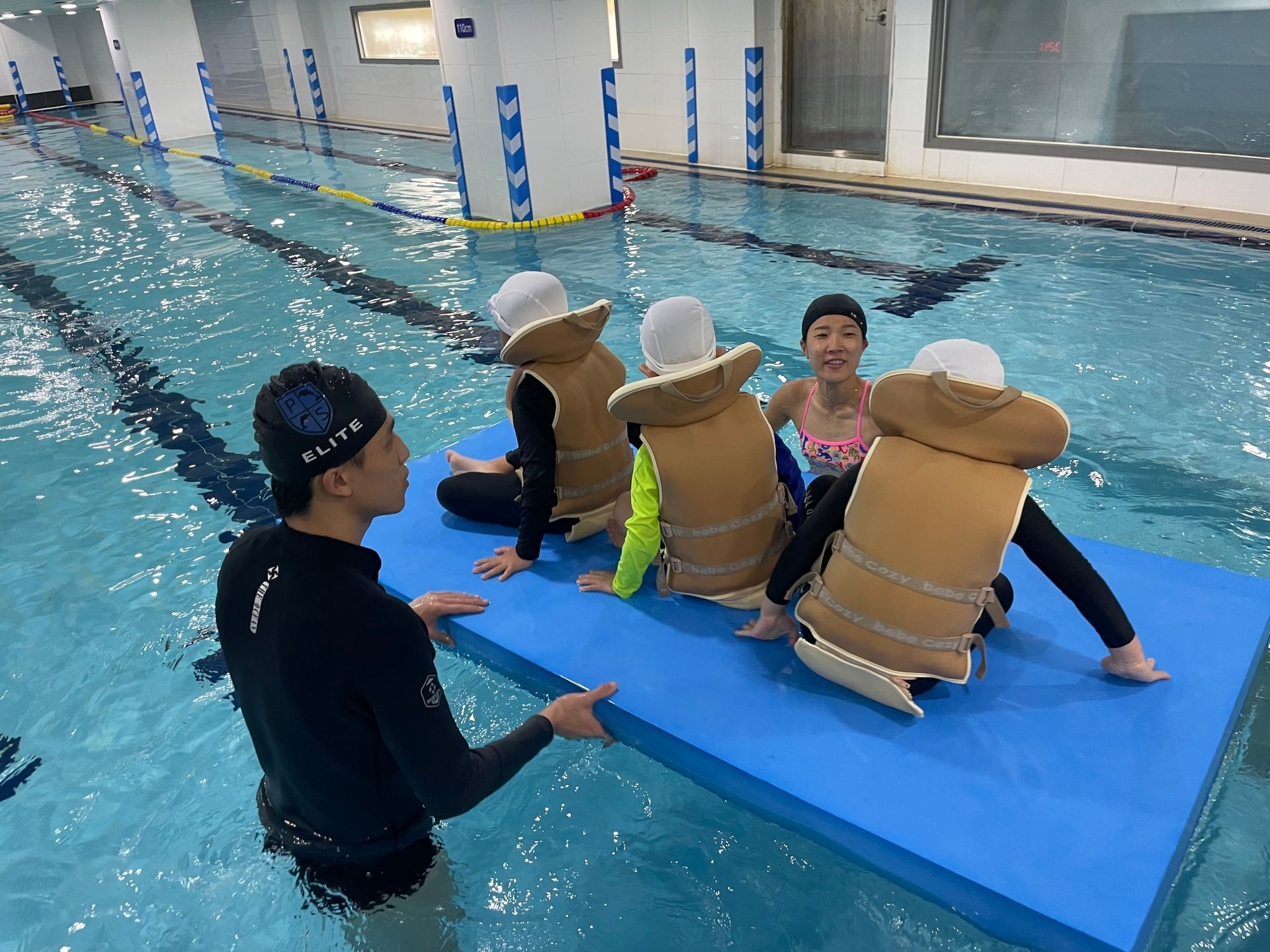 월요일~목요일까지 4일간 생존수영 교육을 실시하였습니다. 첫째날은 발차기와 호흡법을 배우고, 둘째날은 벽 짚고 이동한 후 깊은 수심쪽에서 음~파 호흡도 해 보았답니다. 셋째날은 구명조끼를 입고 물에 누워 뜨기, 다시 친구와 손잡고 뜨기, 친구 모두와 동그랗게 모여 물에 뜨기를 하였답니다. 넷째날은 지금까지 배웠던 생존수영 모두를 복습하듯 익혔답니다. 처음에는 약간의 두려움으로 과연 될까? 할 수 있을까? 의구심이 무색하게 우리 친구들이 용기를 내고 차분히 잘 따라주어 너무나 대견하였습니다. 이번 생존수영을 배우며 또 한번 극복한 우리 친구들의 앞으로의 무궁무진한 도전을 응원합니다.!!