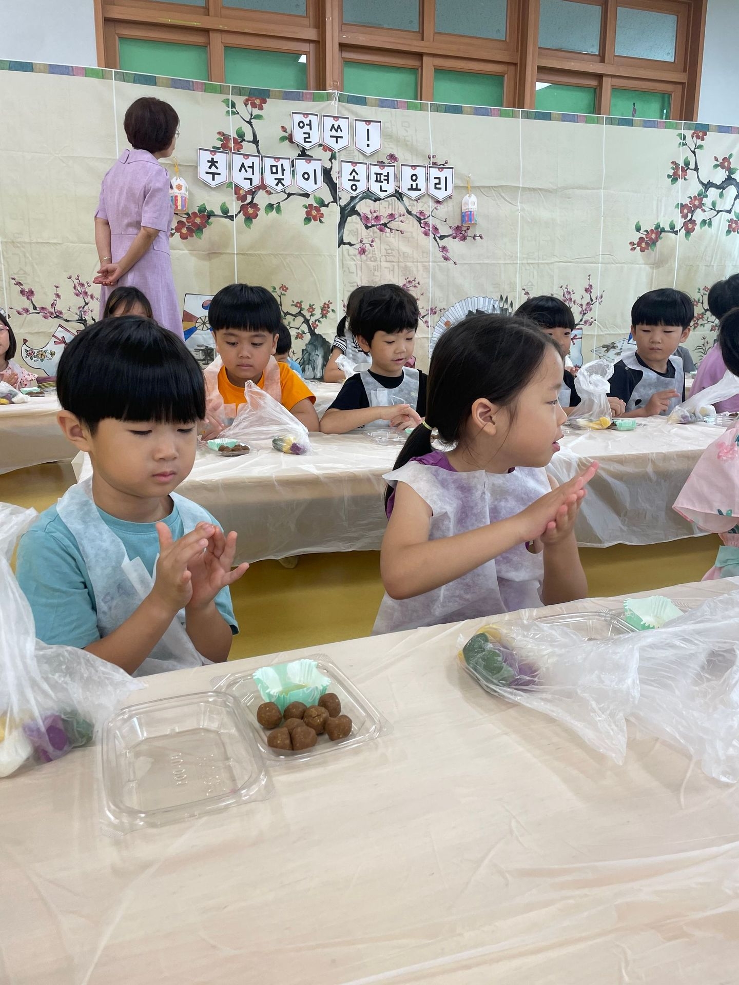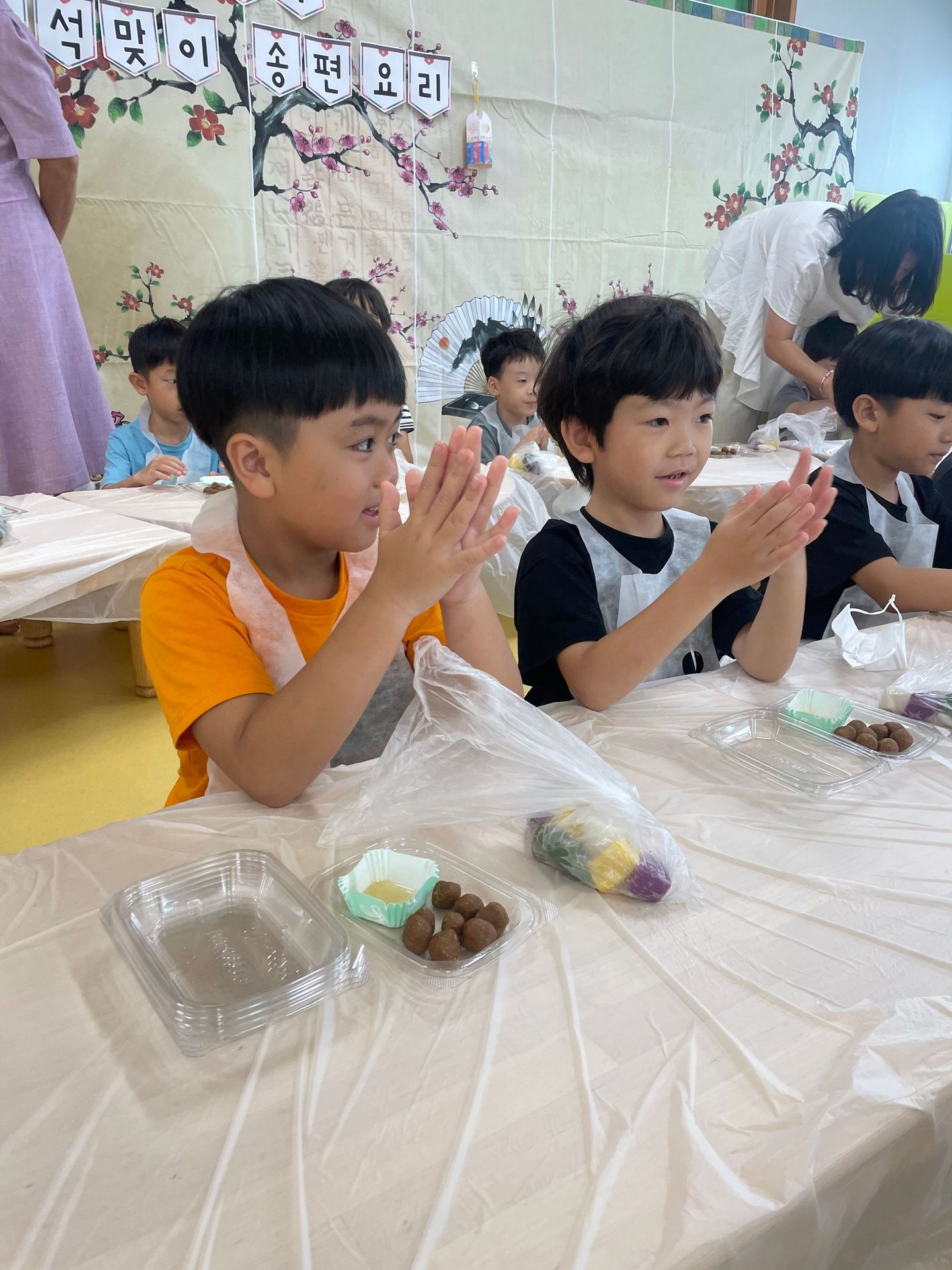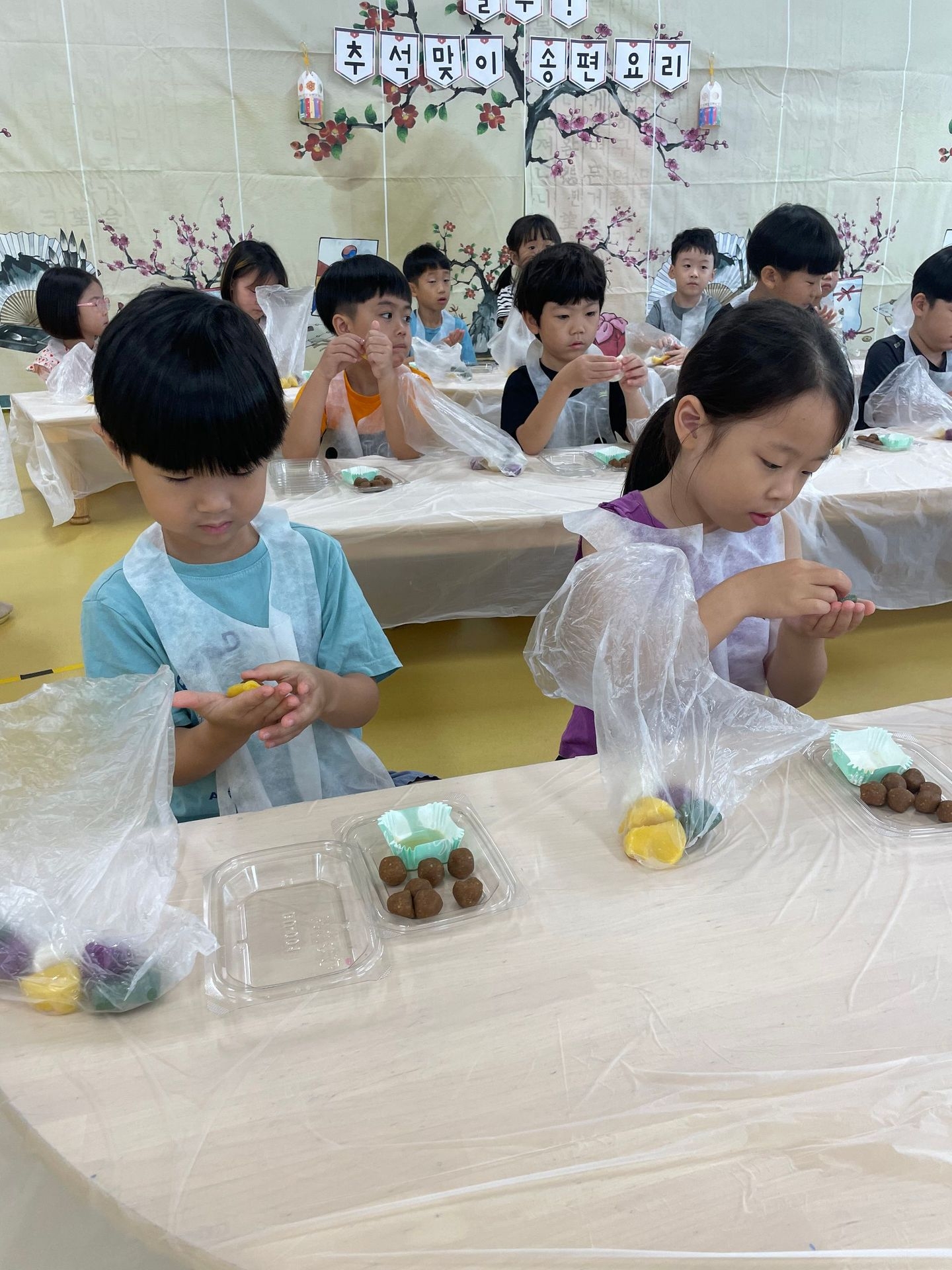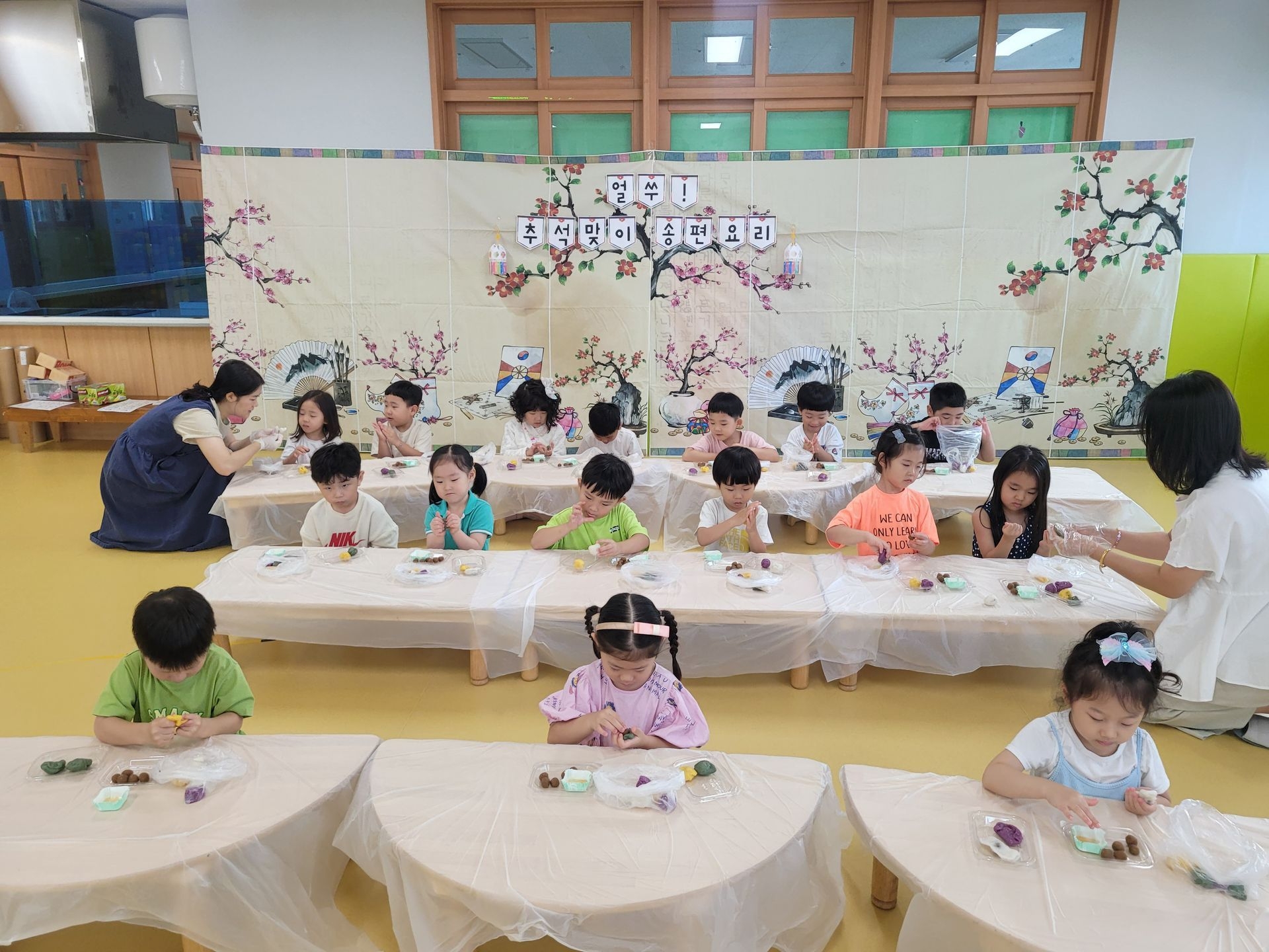 즐거운 명절 추석을 맞이하여 친구들과 함께 송편요리를 하였습니다.