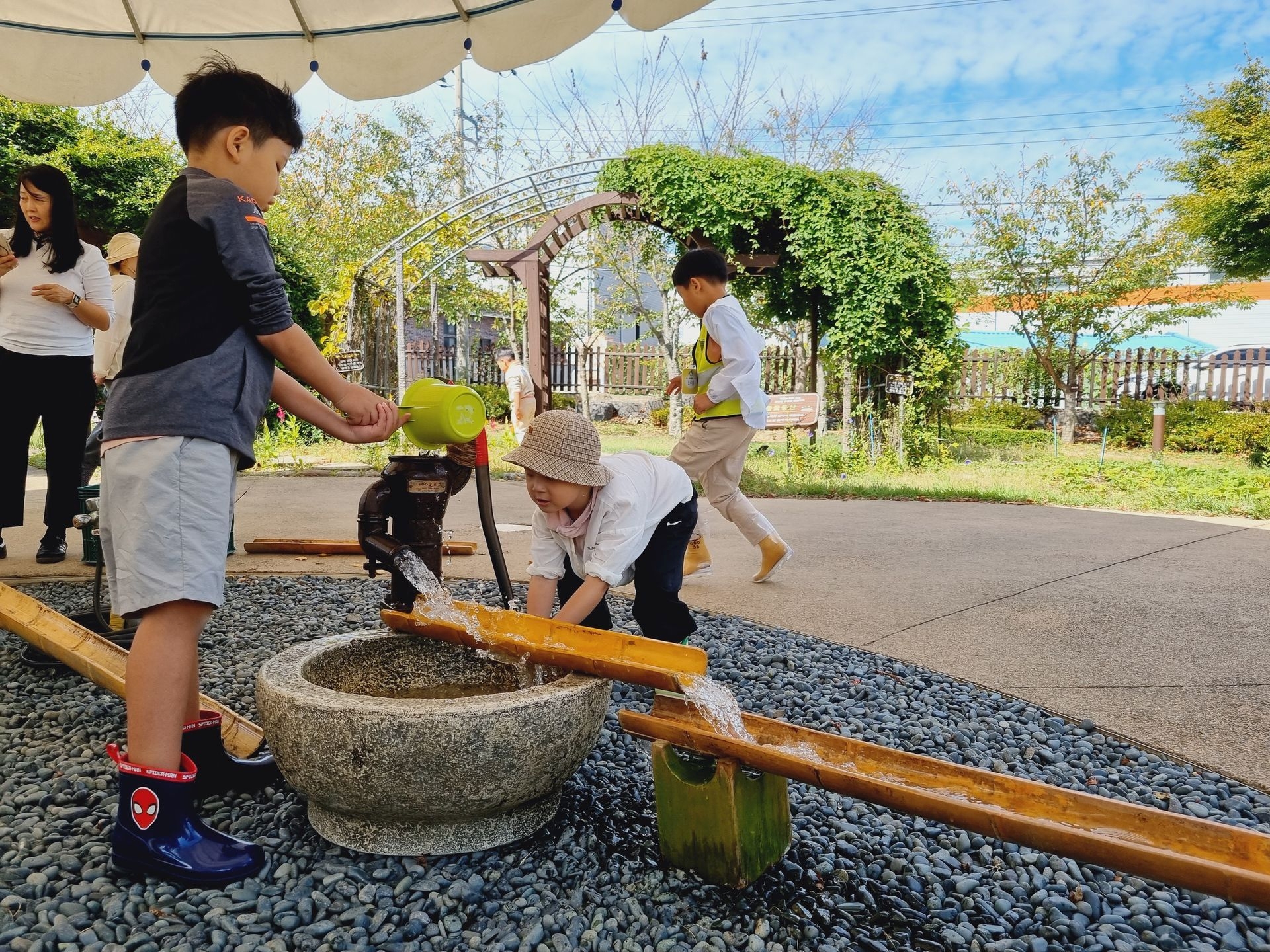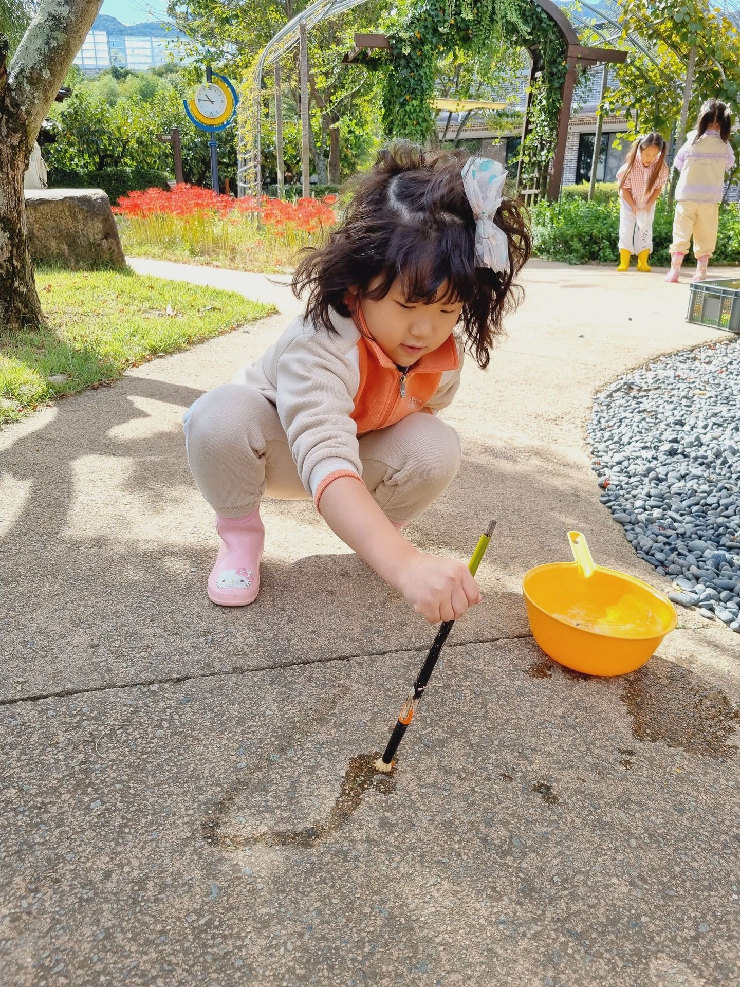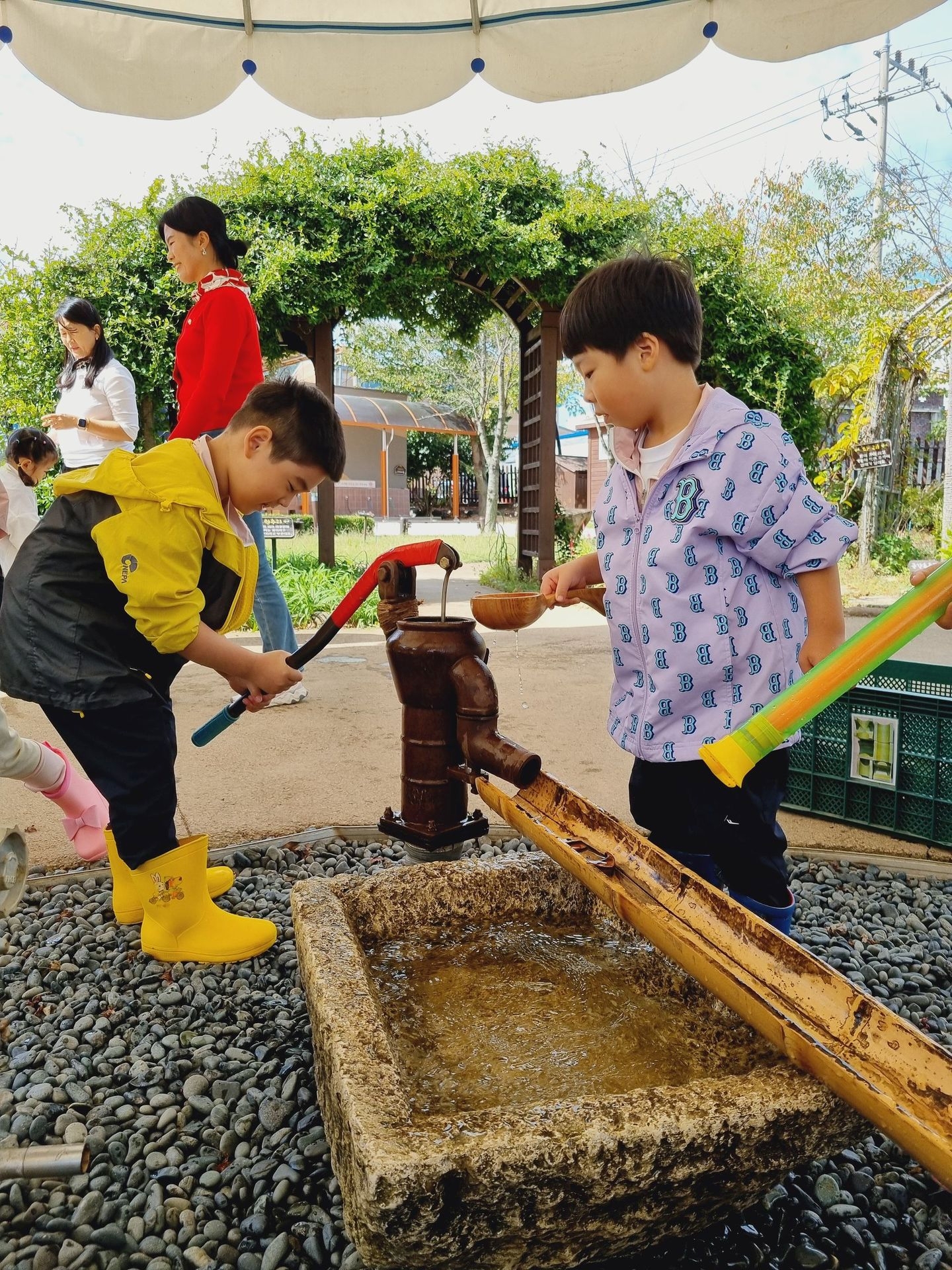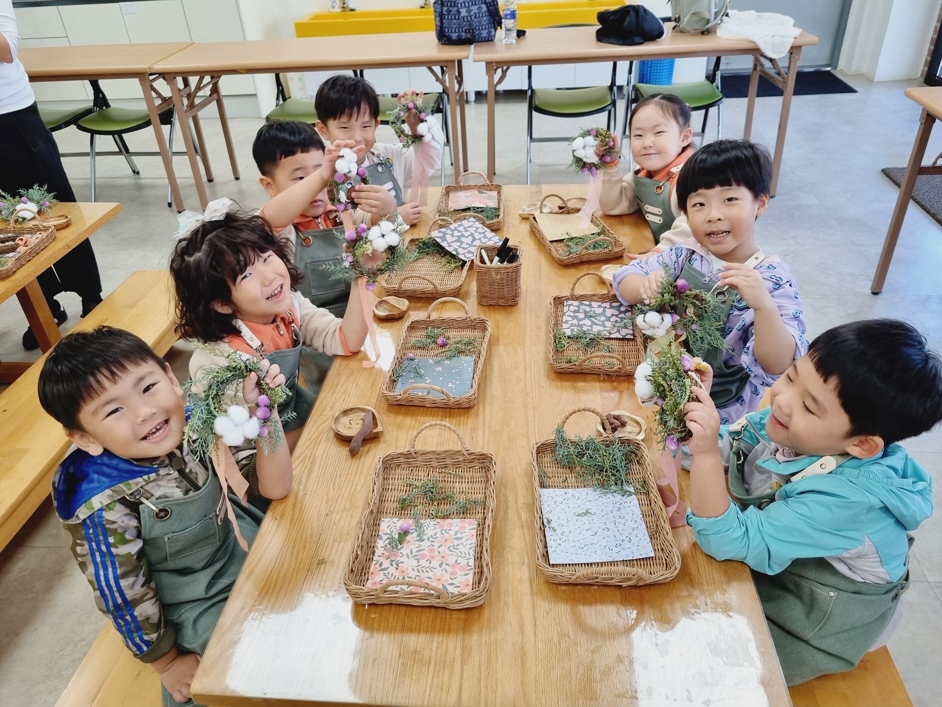 유아교육원 김해체험분원으로 현장학습을 다녀왔어요. 실내체험교실에는 공룡, 전통, 땅속, 물속, 초록 마을이 있어 친숙하면서 흥미롭고 다양한 놀이를 하였답니다. 실외에서는 흙산놀이로 비료포대 썰매를 타기도 하고, 자연물을 이용한 식물리스도 만들어 보구요 펌프질 하기 전 물을 끌어올리기 위해 붓는 마중물을 넣어서 펌프질 하여 물길도 만들고 물총놀이도 했어요. 해 본 놀이고, 할 수 있는 놀이는 우리 아이들이 시간 가는 줄 모르게 집중하고, 자기주도와 자존감을 퐁퐁 샘솟게 하겠지요^^