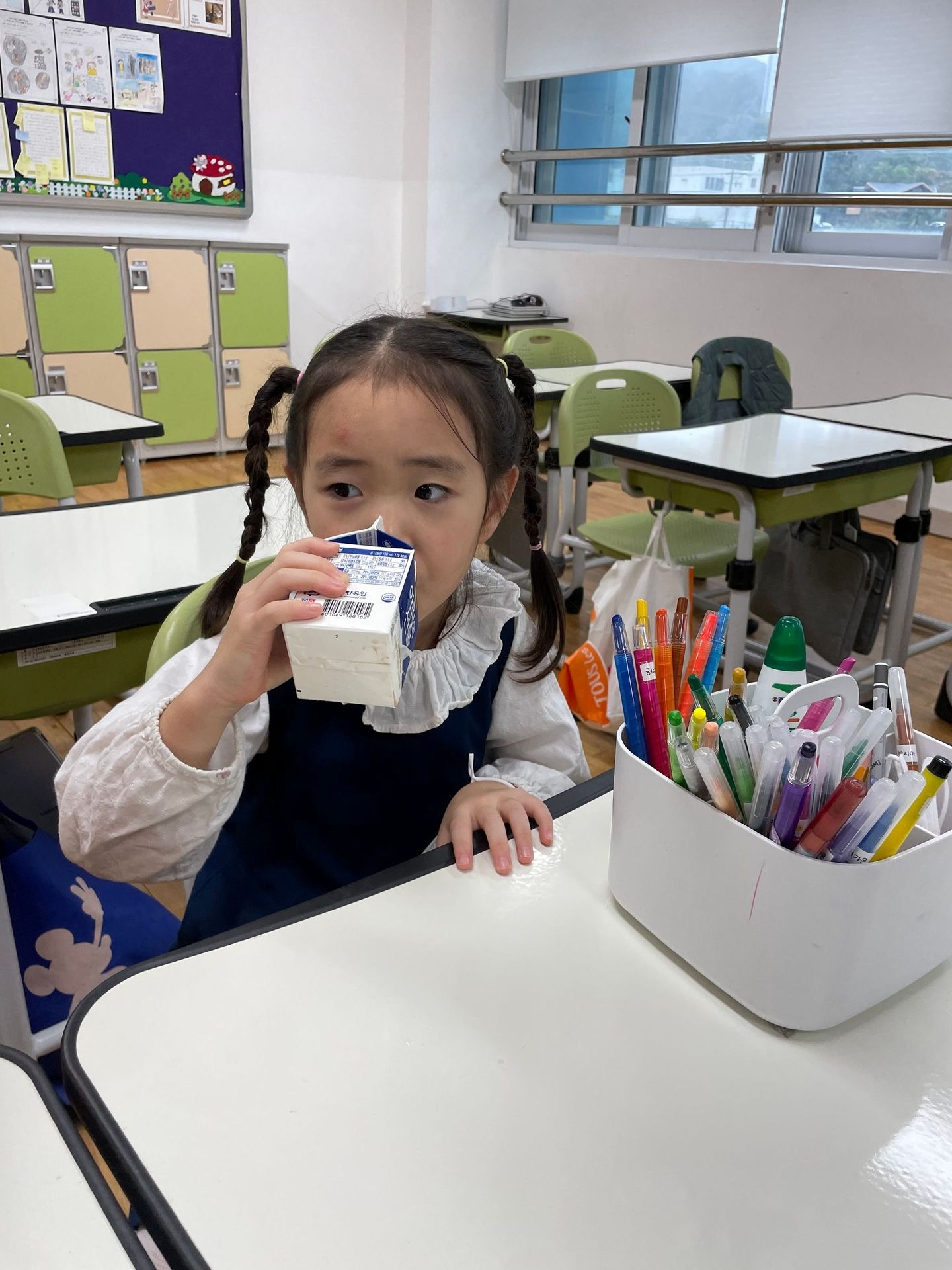 형들의 의자에 앉아 우유도 마셔 보고, 책도 읽었어요.