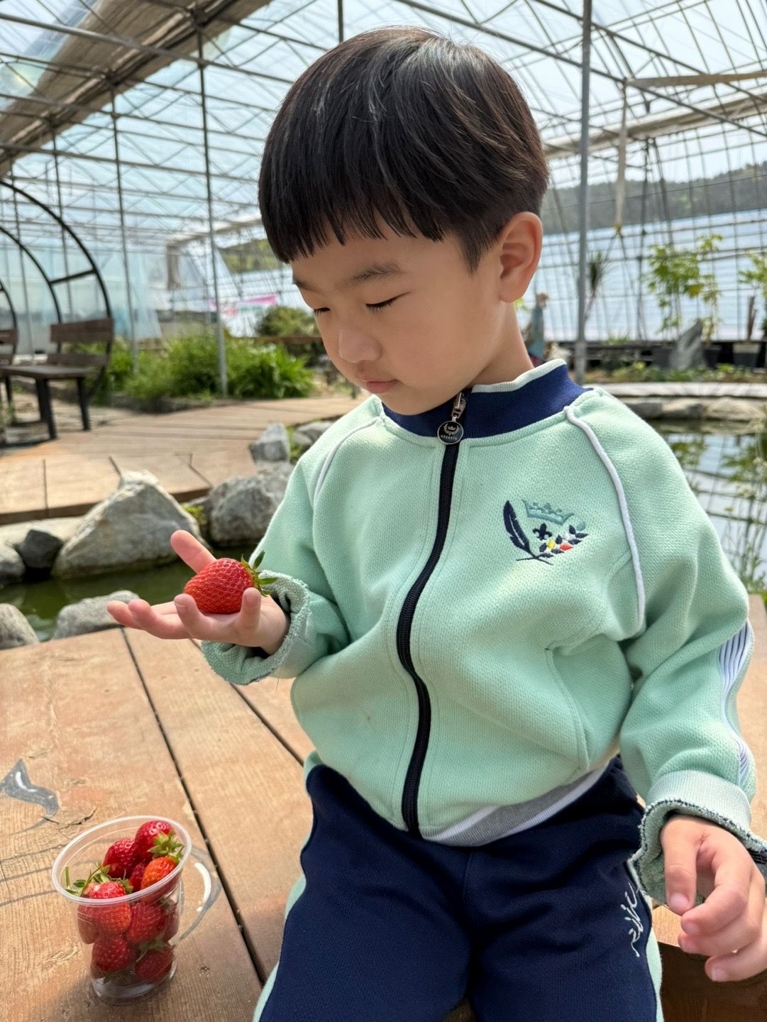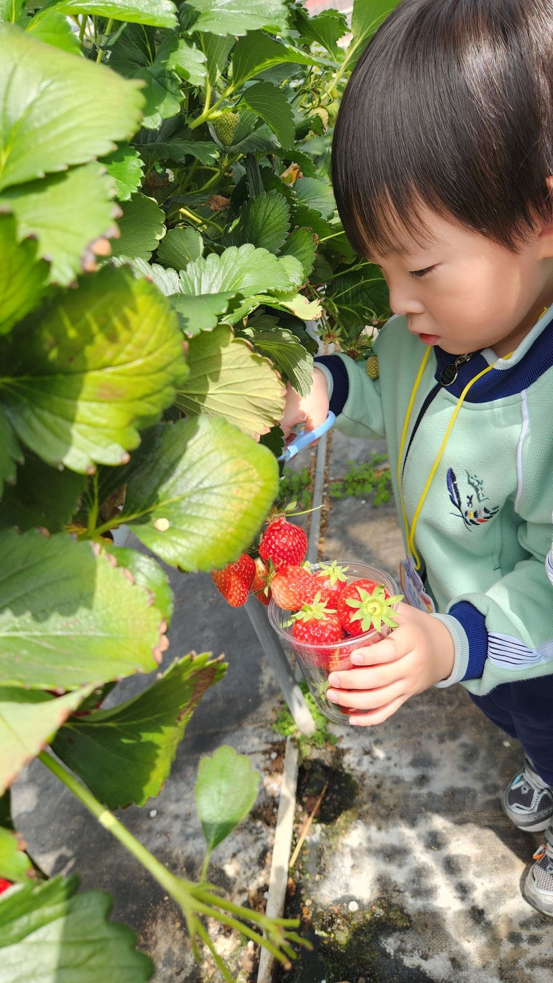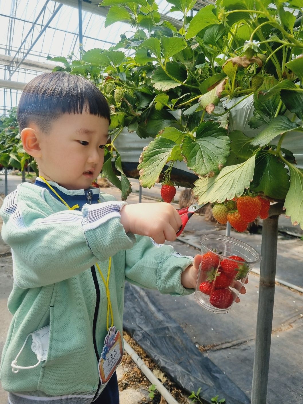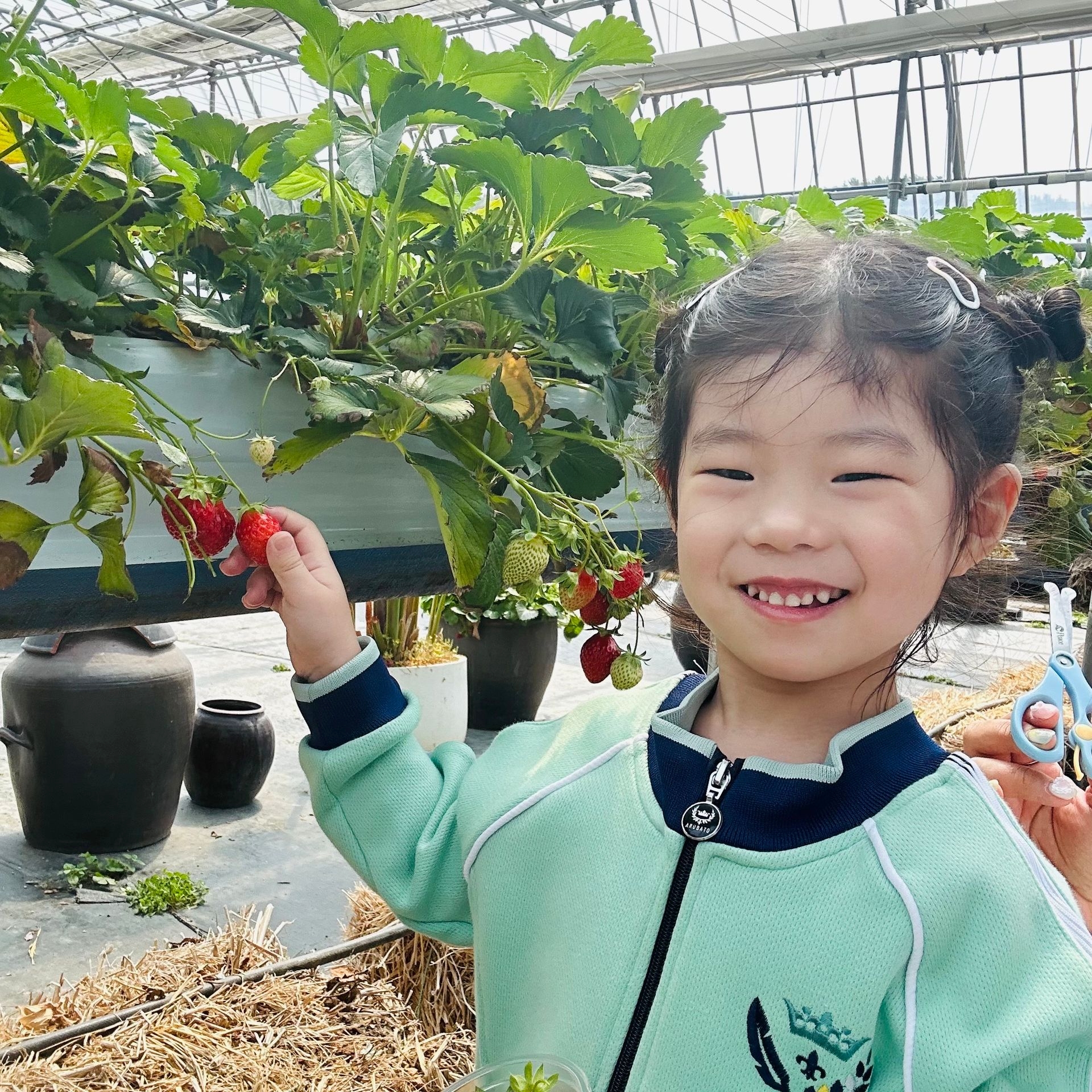 내가 딴 딸기로 우리 가족에게도 맛보일 생각을 하며