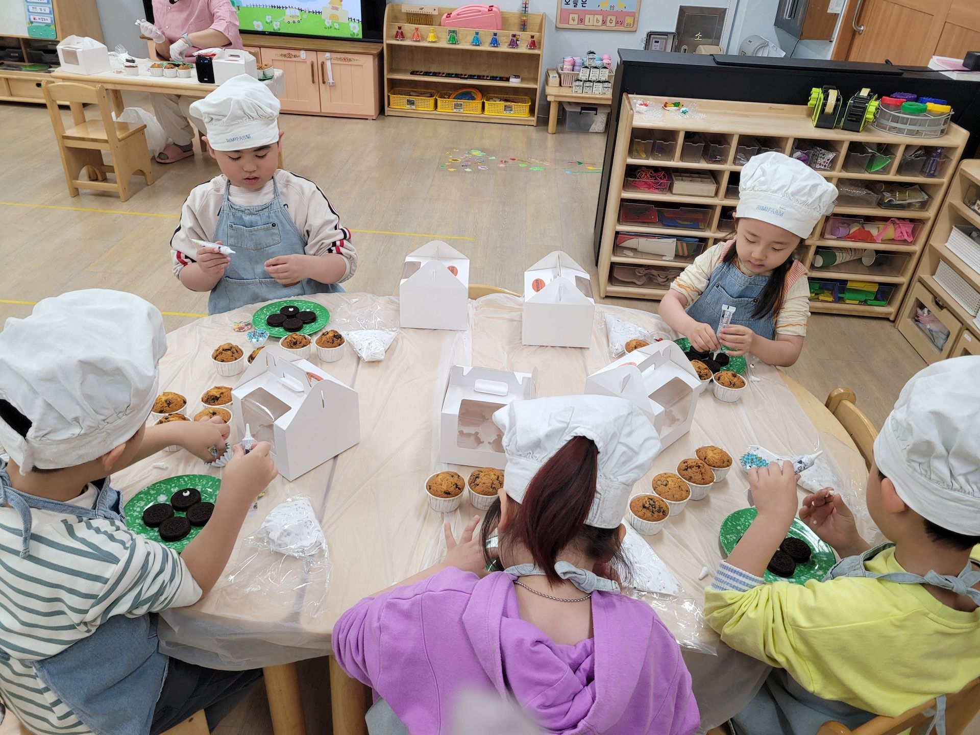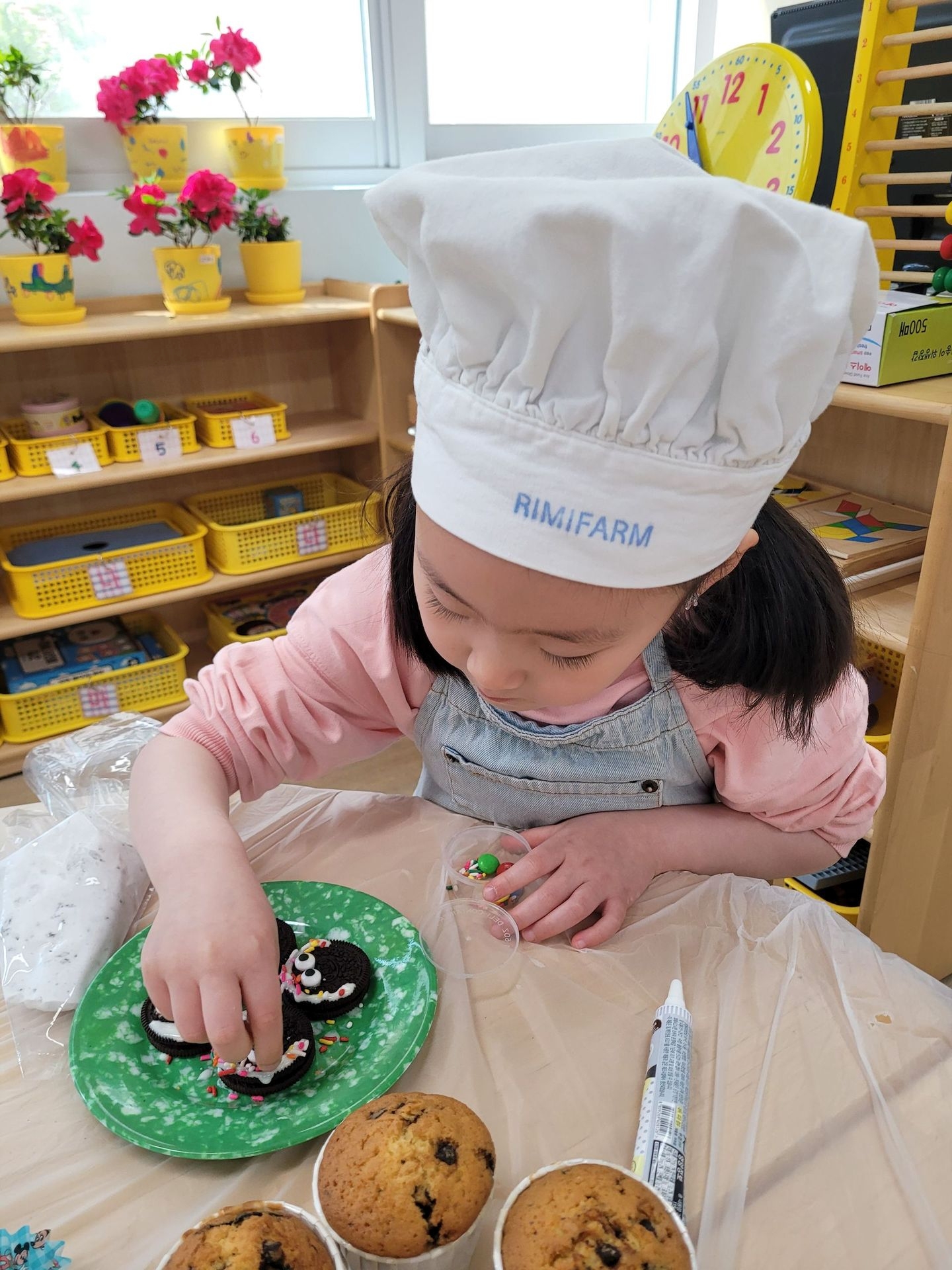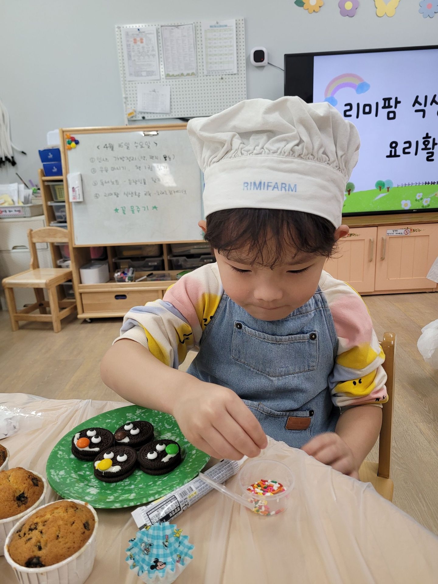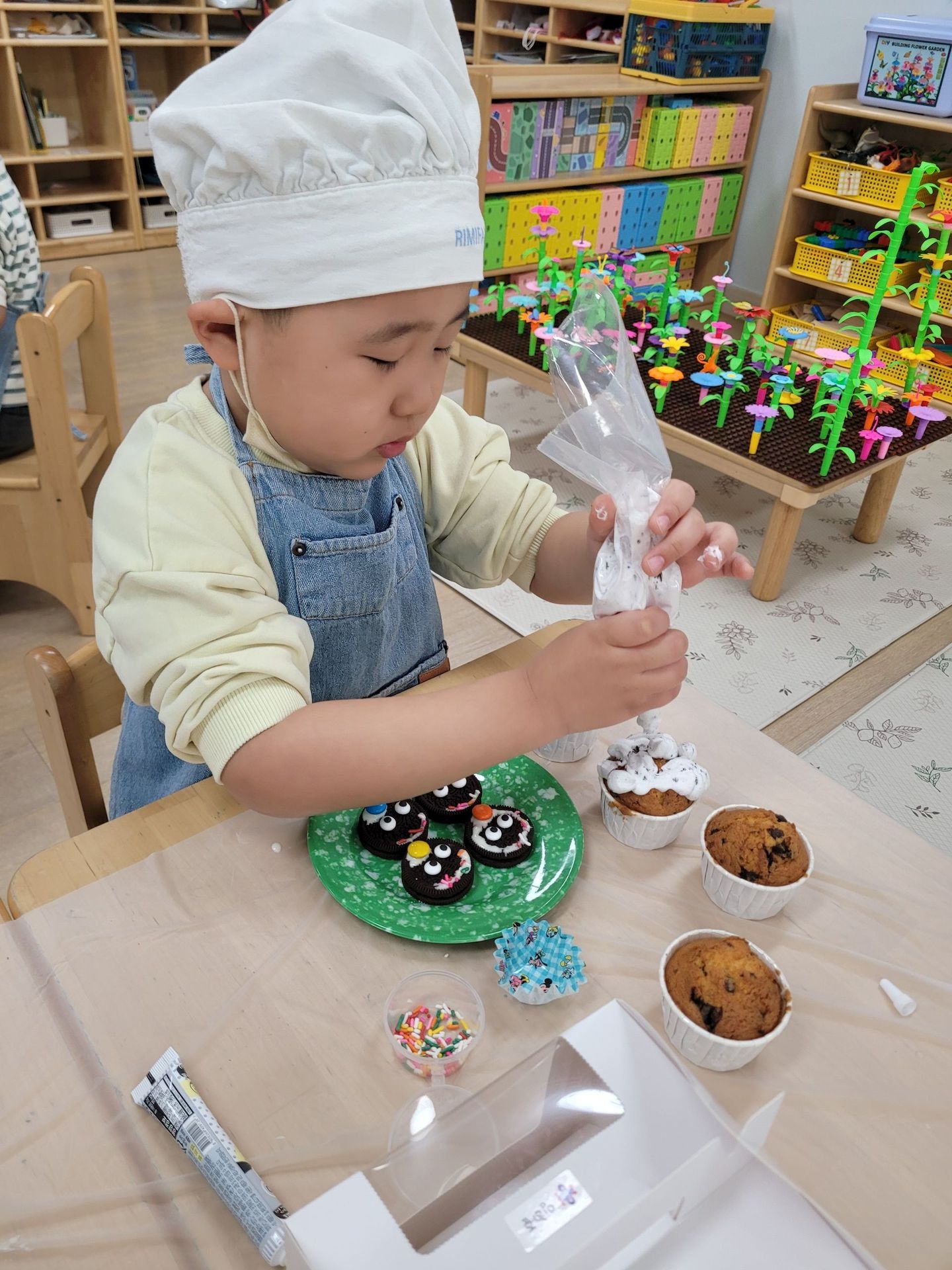 오레오에 각자 개성대로 얼굴을 꾸미고, 생크림도 직접 짜며 빵 위에 올려도 보구요~