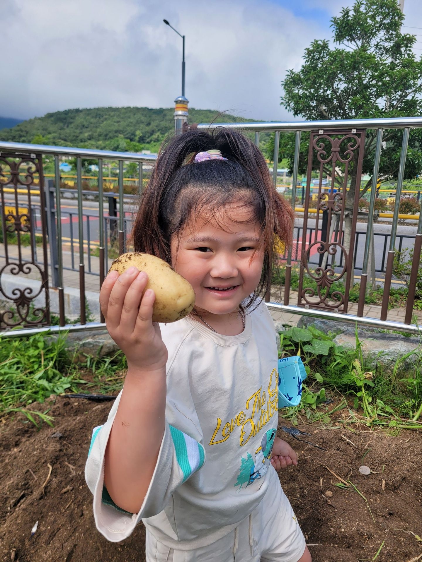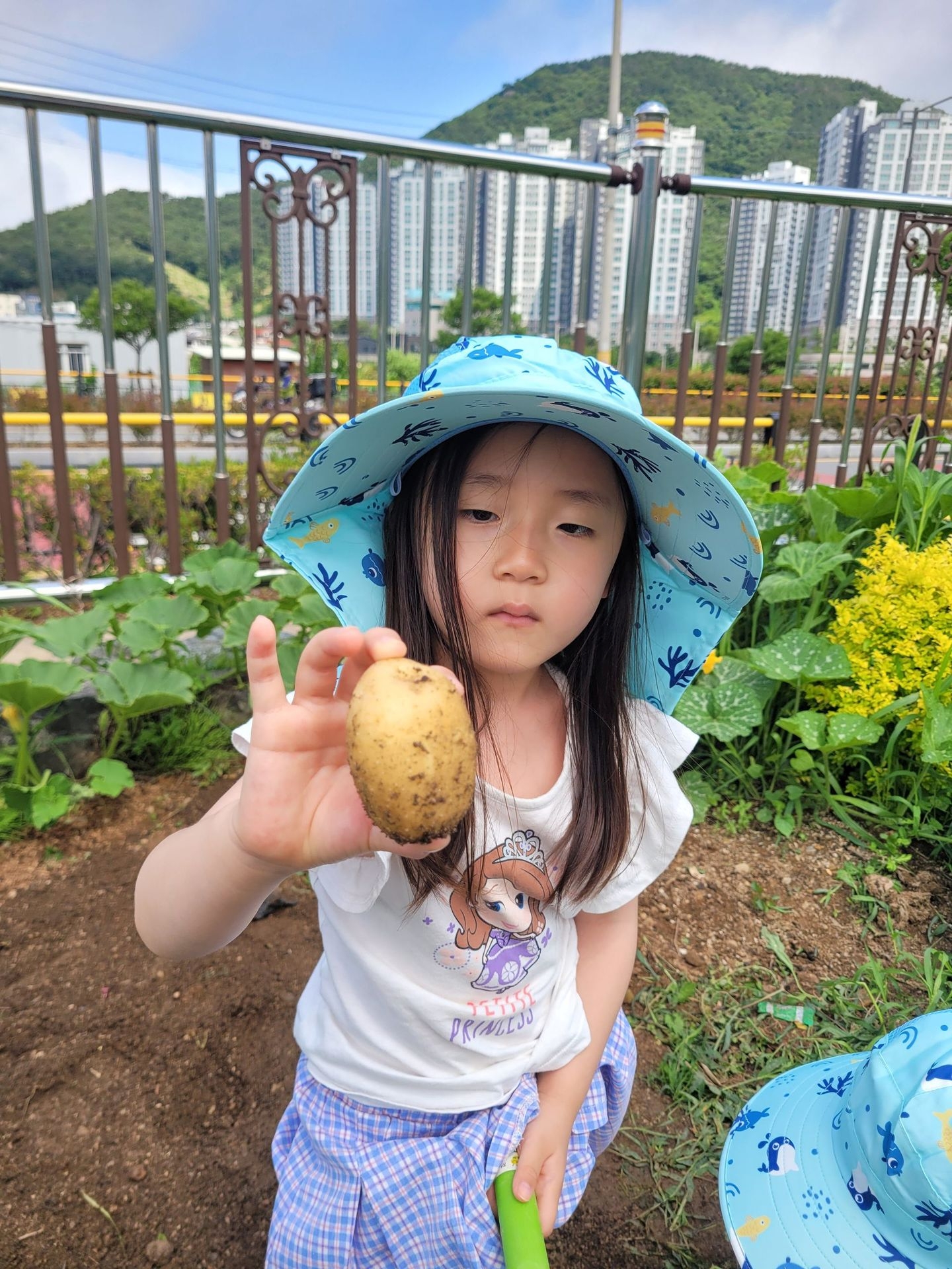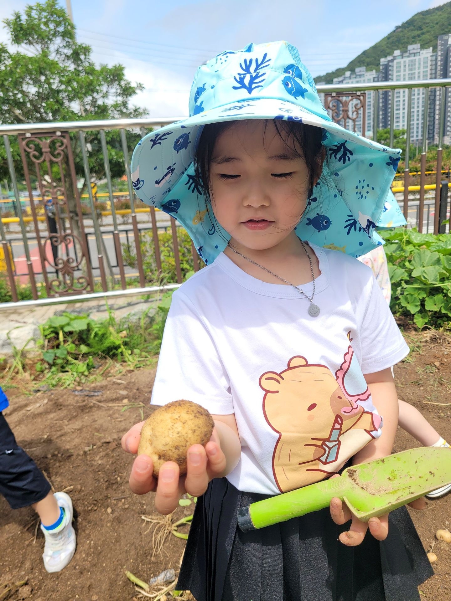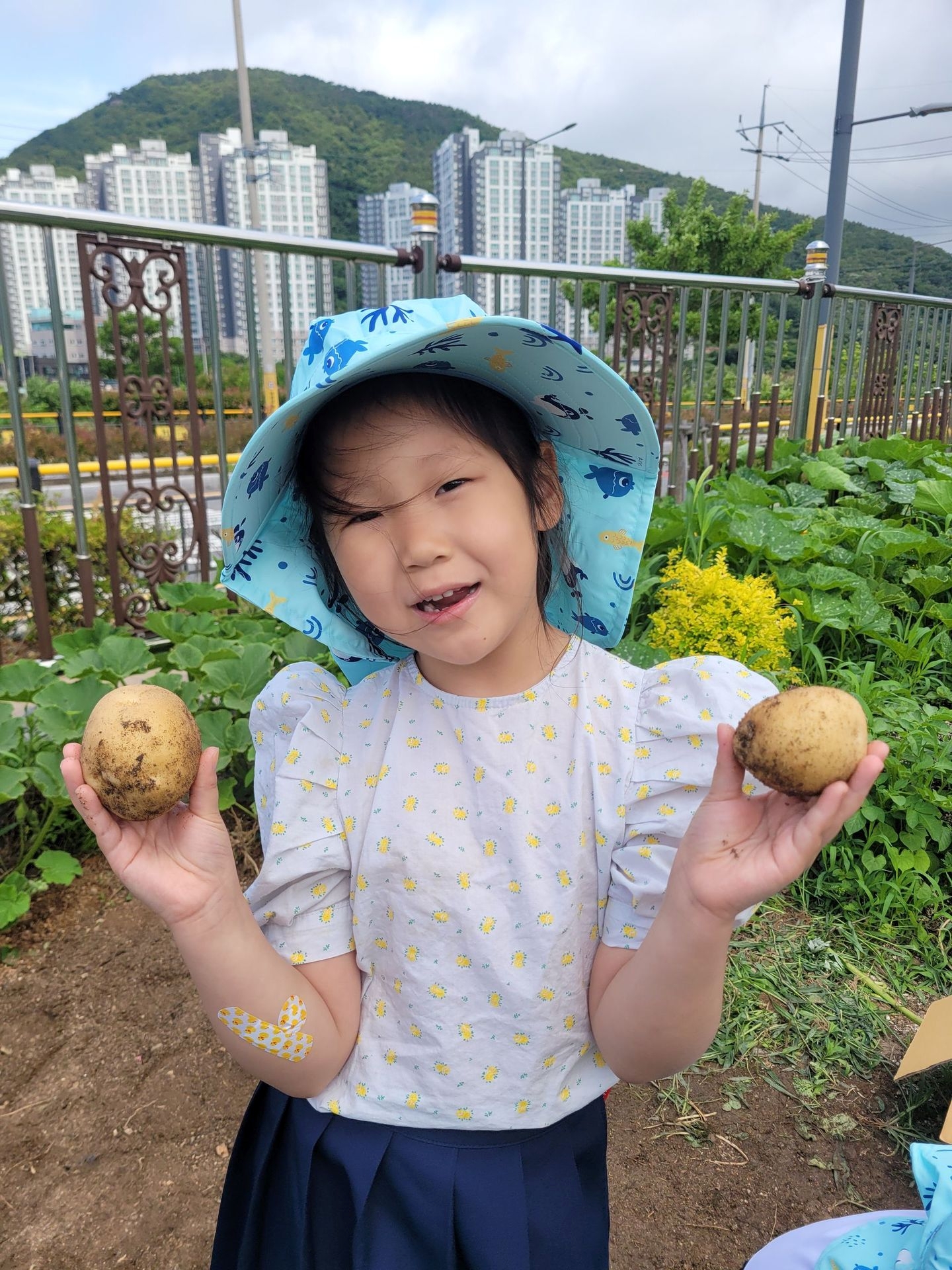 이번 유치원 텃밭에서는 오이따기에 이어 감자캐기를 했어요.