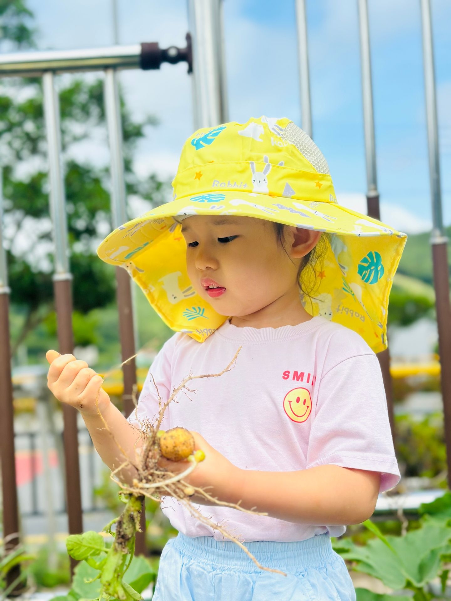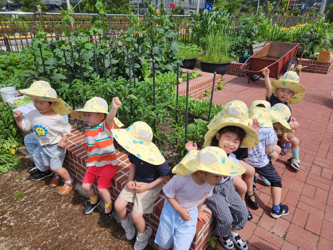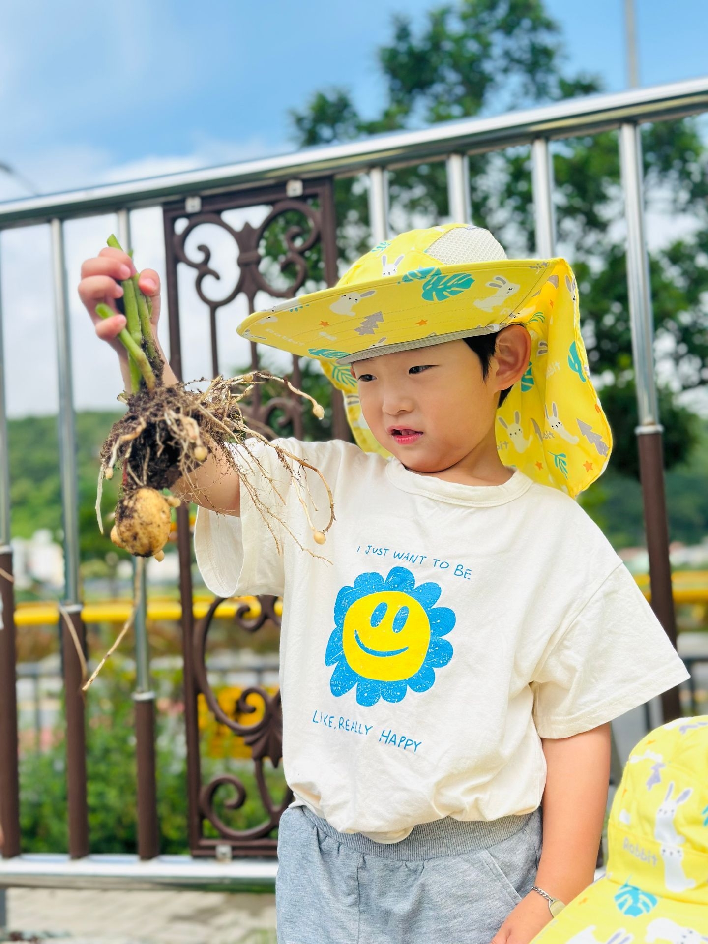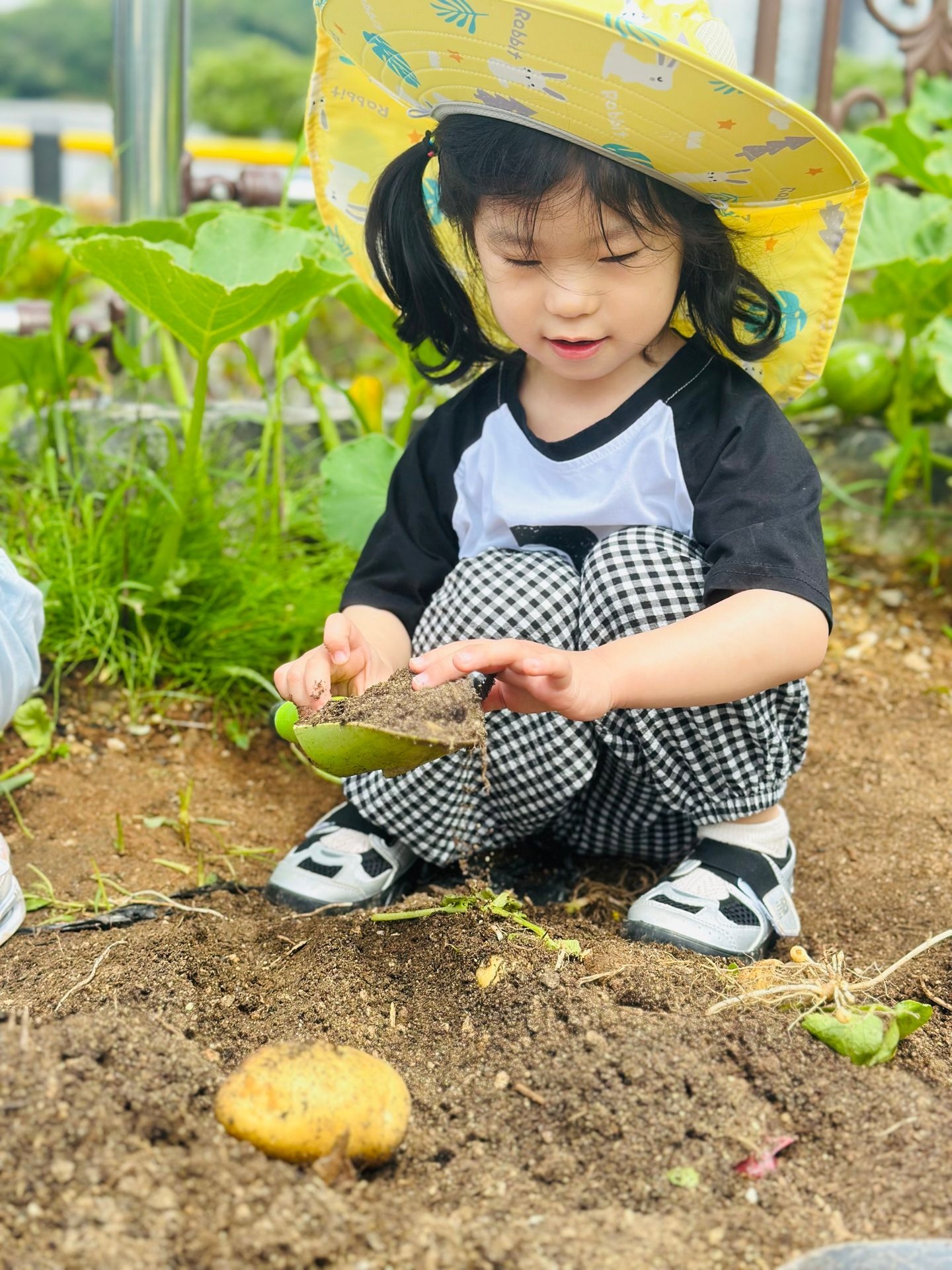 이번 유치원 텃밭에서는 오이따기에 이어 감자캐기를 했어요.