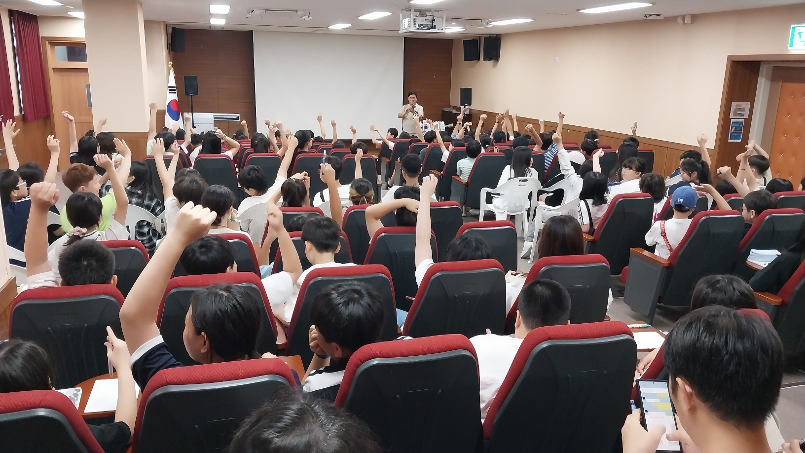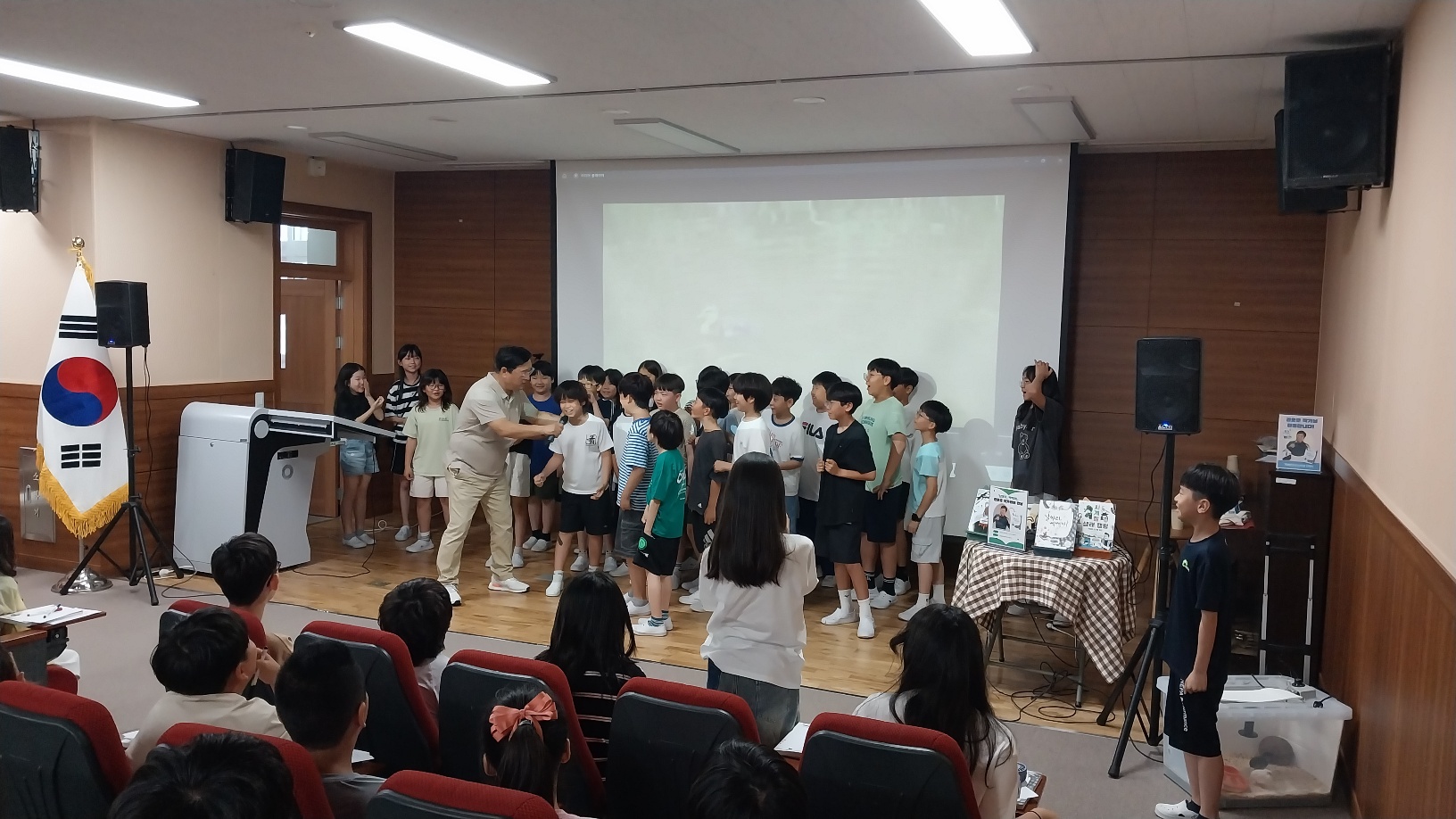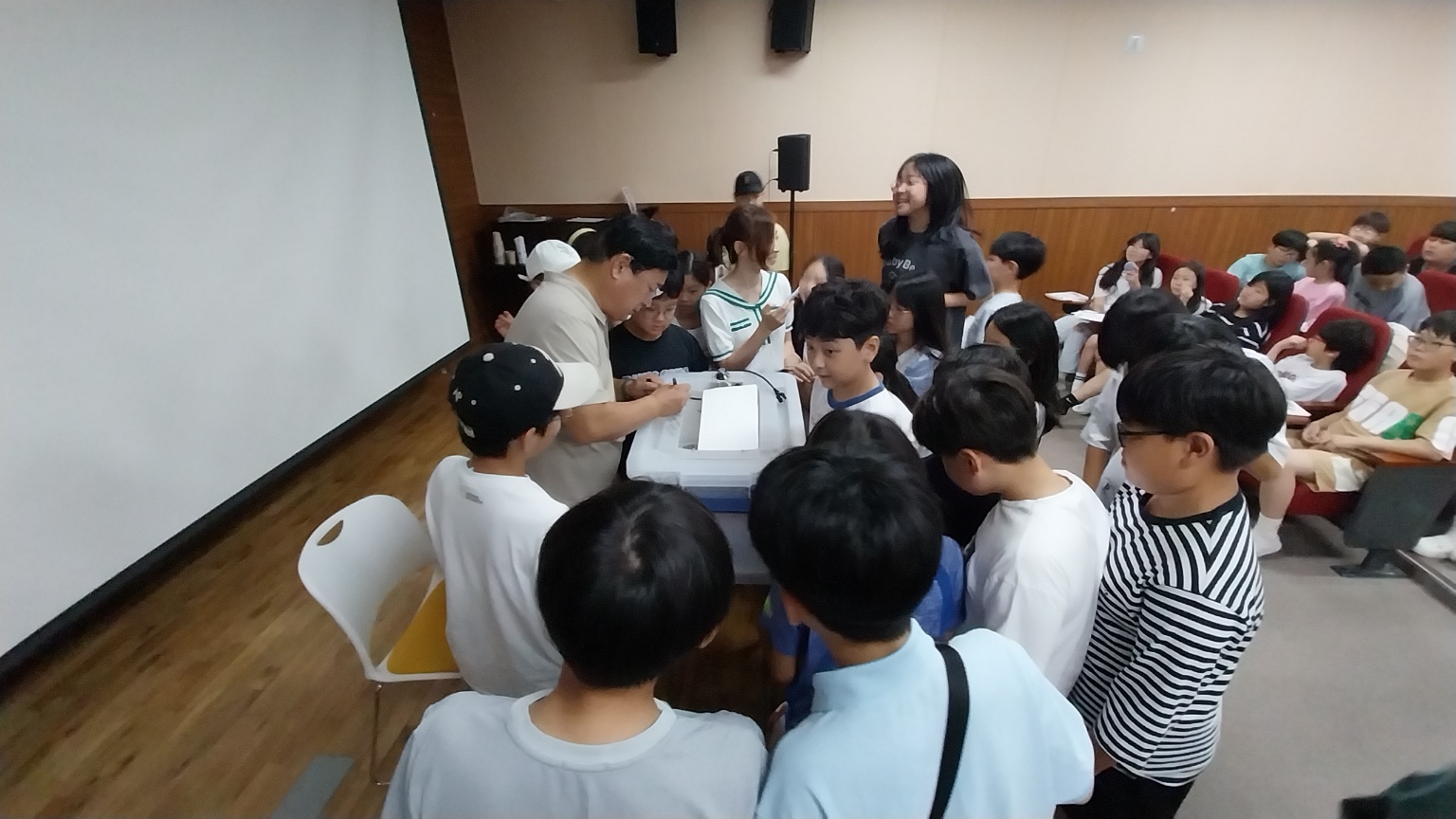 5학년 한 학기 한 권 읽기 활동과 연계하여 『날아라, 삑삑아!』의 저자 권오준 작가와의 만남을 진행하였습니다. 권오준 작가님은 직접 자연에서 보고 듣고 겪은 생태 이야기를 생생하게 들려주며, 책의 내용을 바탕으로 퀴즈와 미션, 질문 활동 등을 통해 학생들과 적극적으로 소통해 주셨습니다. 강연 내내 에너지 넘치고 흥미로운 분위기 속에서 학생들은 생명과 자연의 소중함을 다시 한번 느끼는 뜻깊은 시간을 보냈습니다.