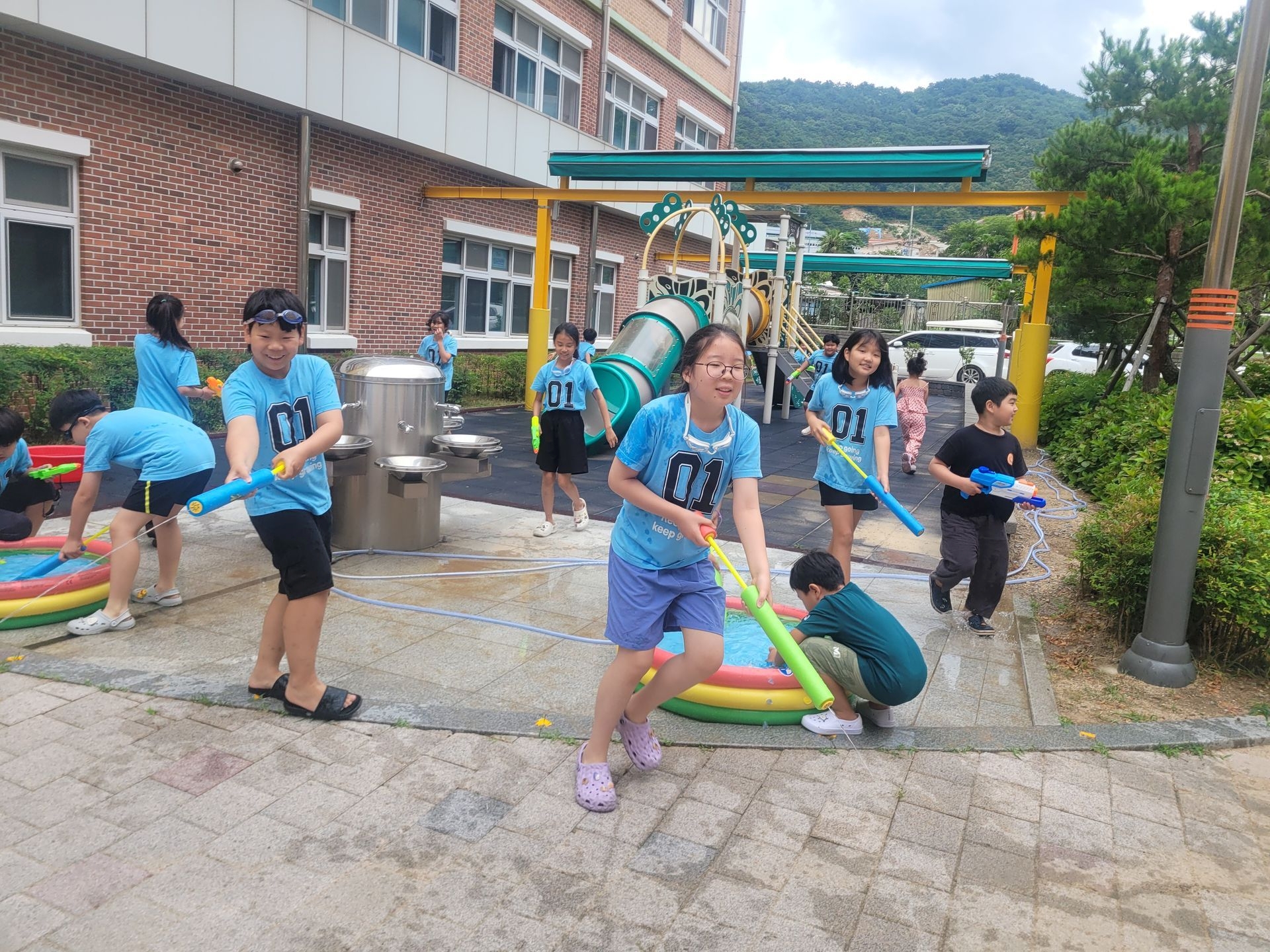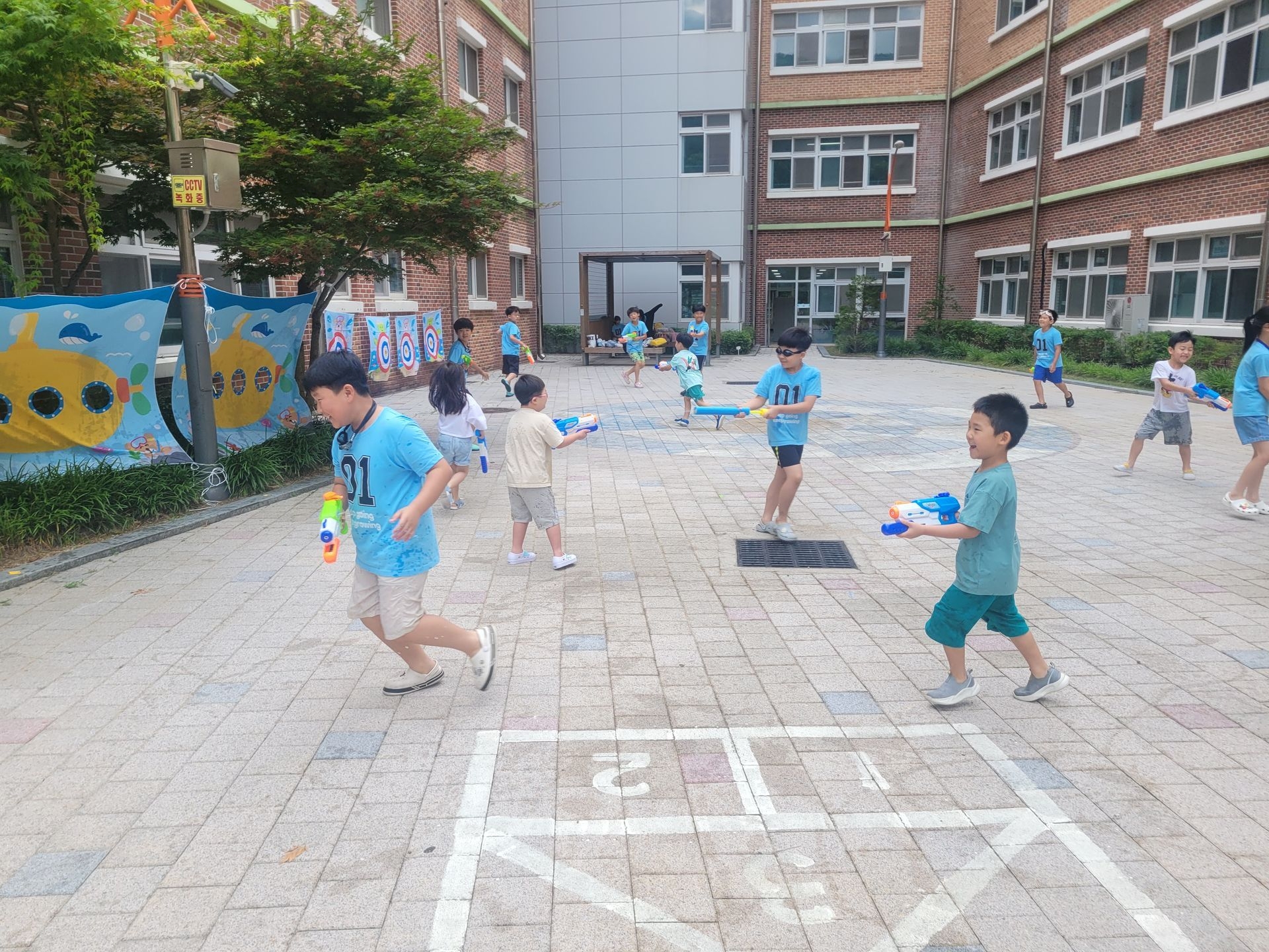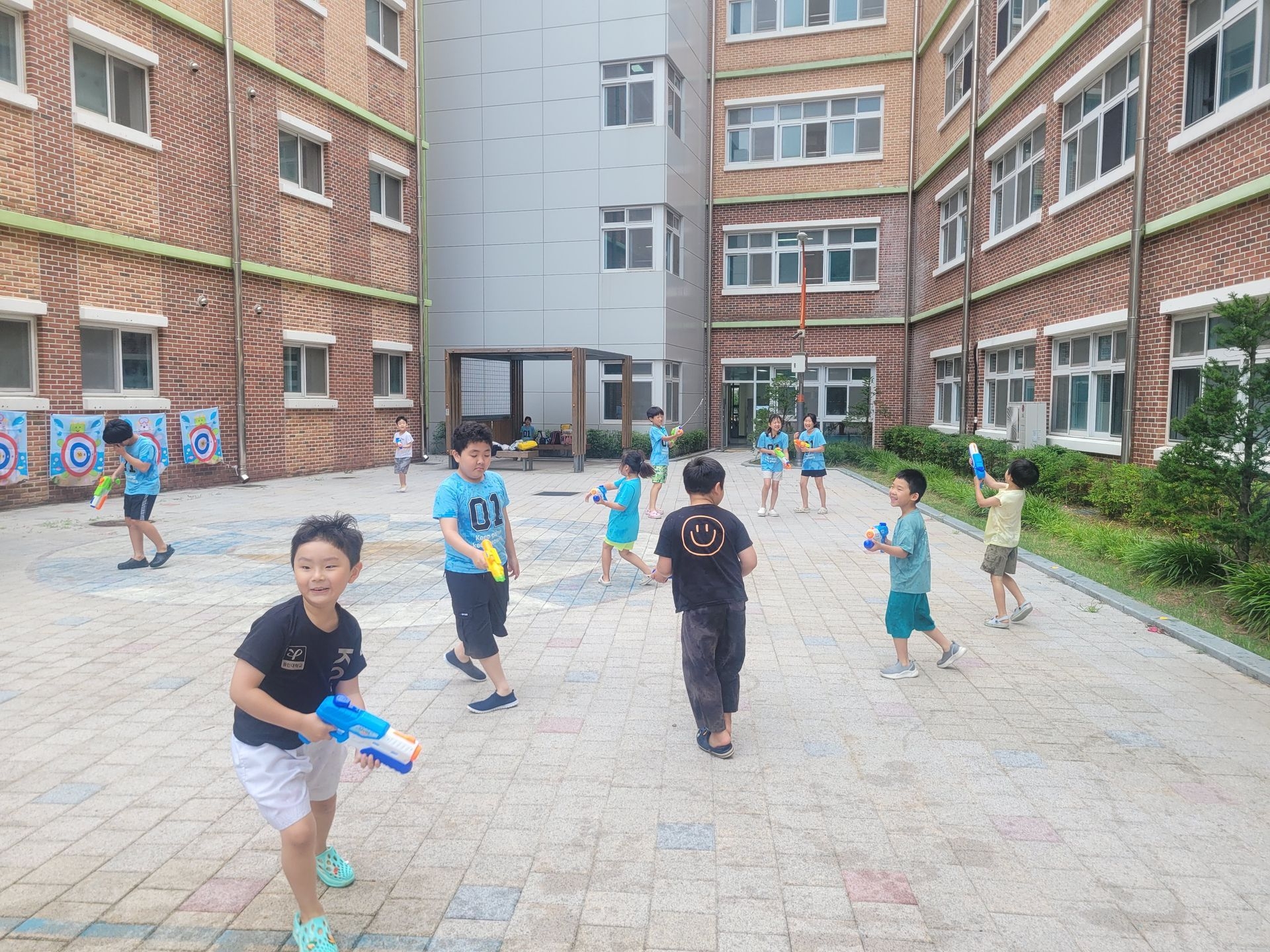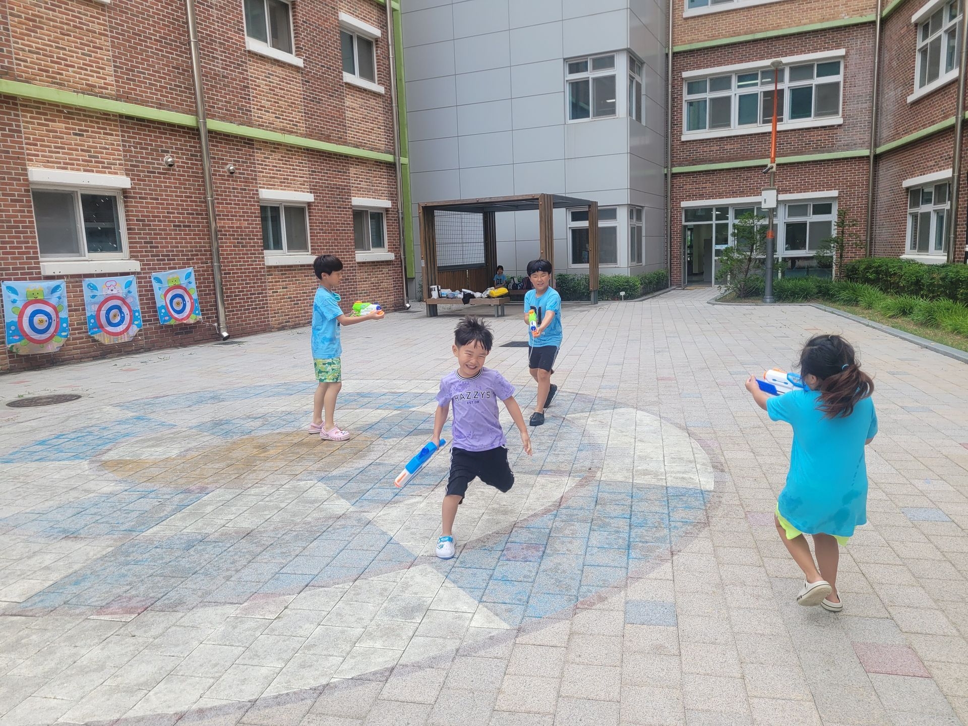 4학년 1반 형님들과 중정원에서 만나 신나는 물총놀이가 시작되었습니다.