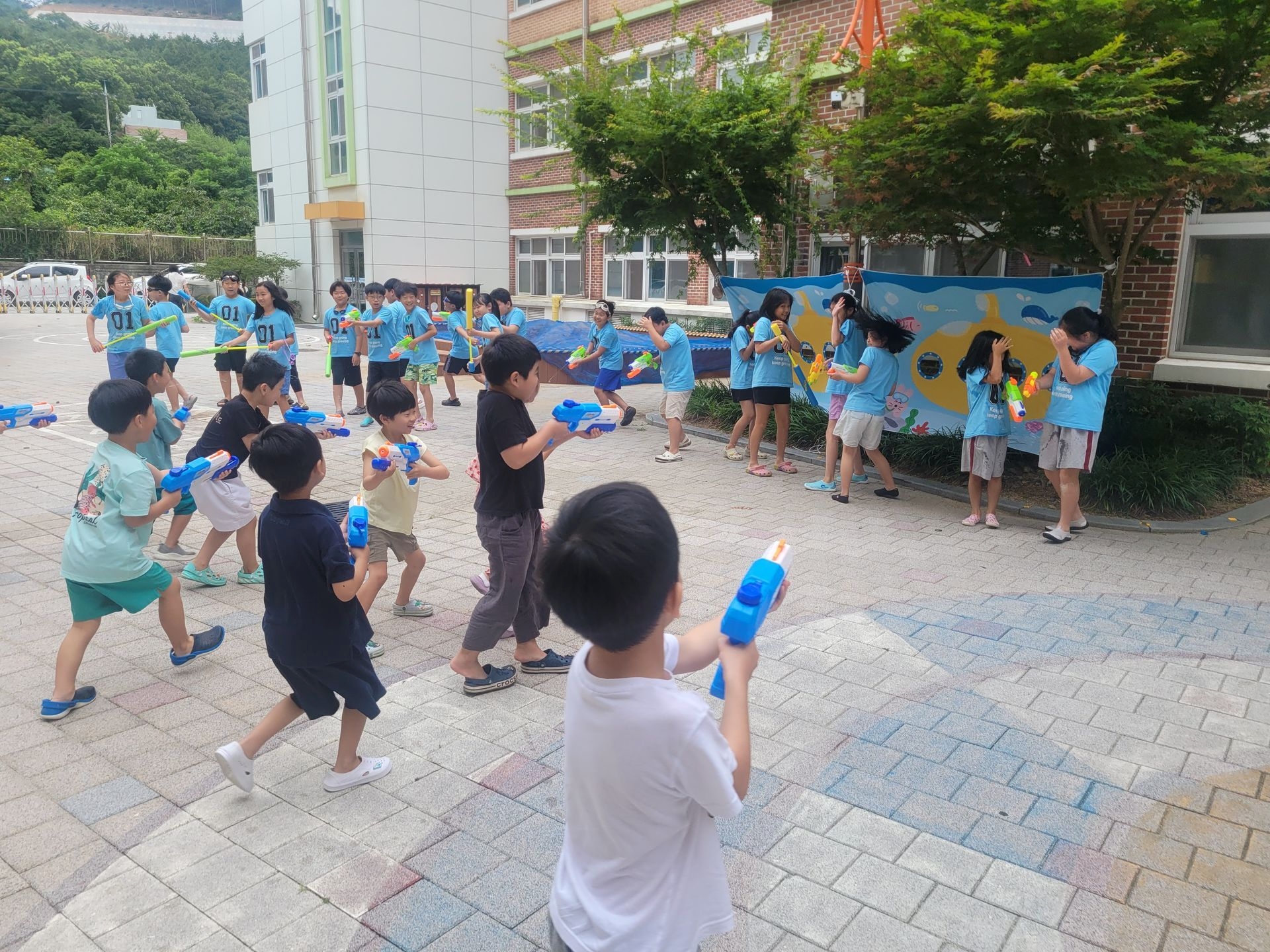 서로 인사를 나눈 후, 안전 약속에 대해 알아보고 물총 발사!!!