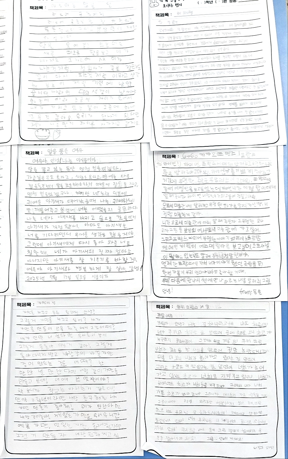 7월 독서행사(책파랑길 100권 읽기 연계)- 책 속 인물에게 보내는 편지