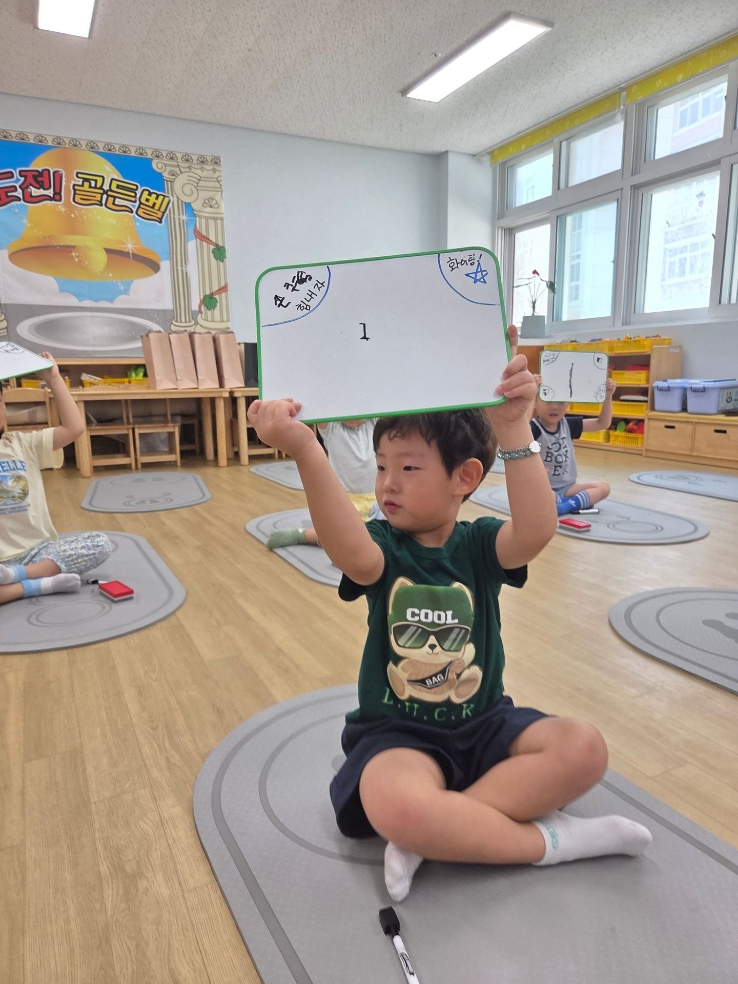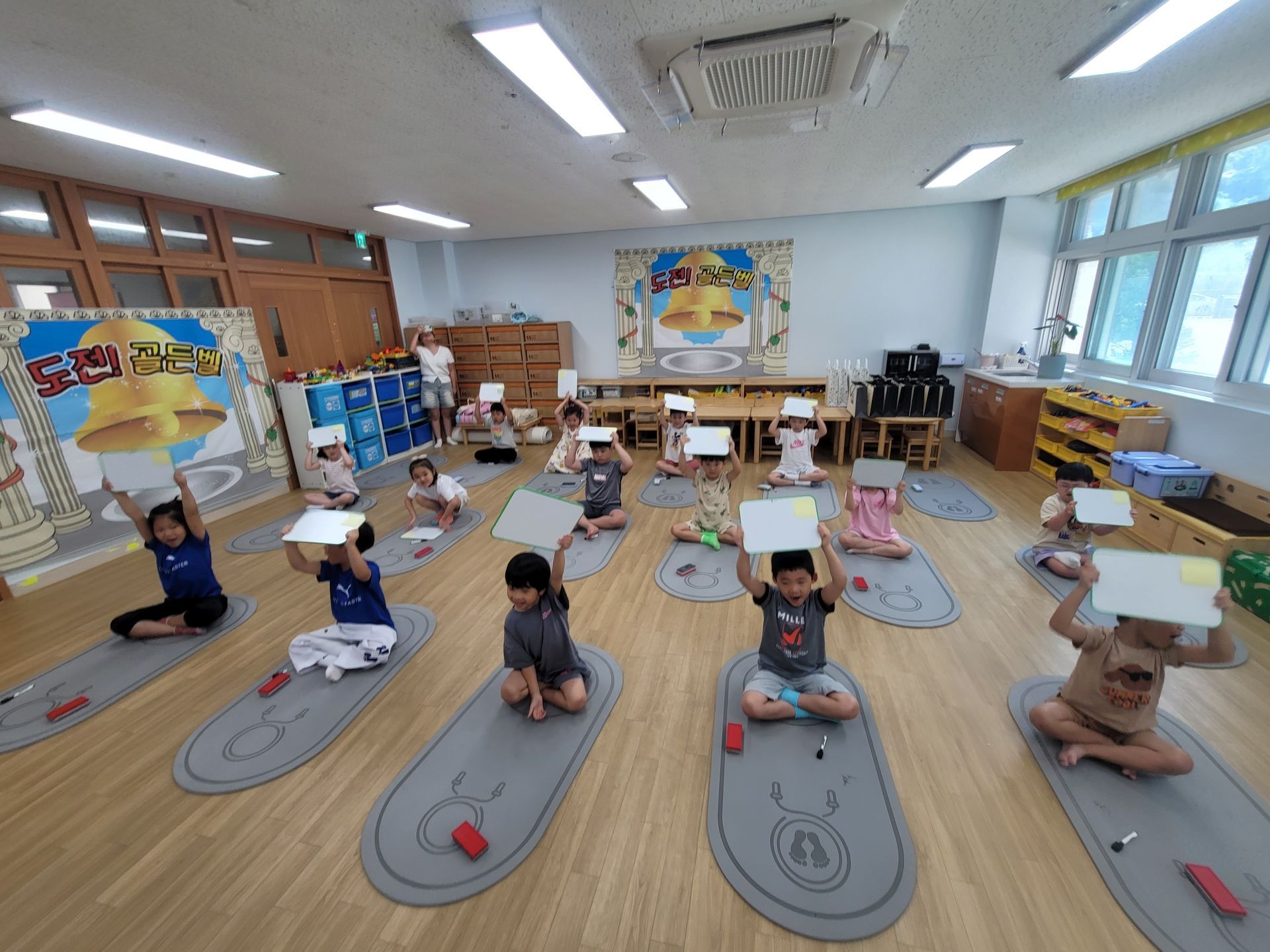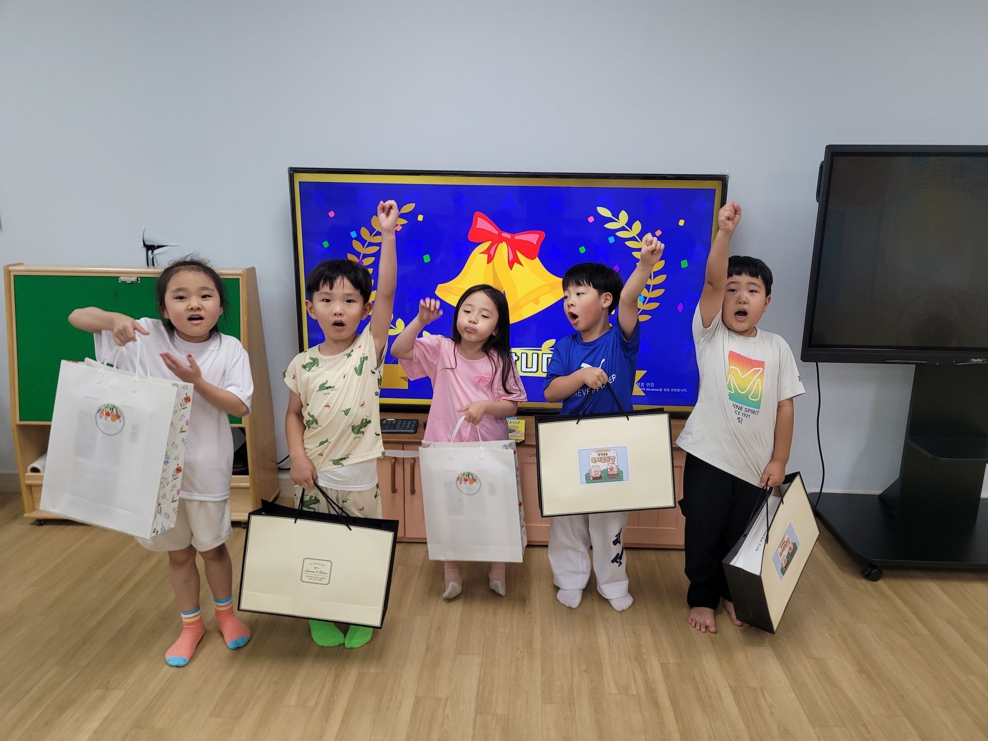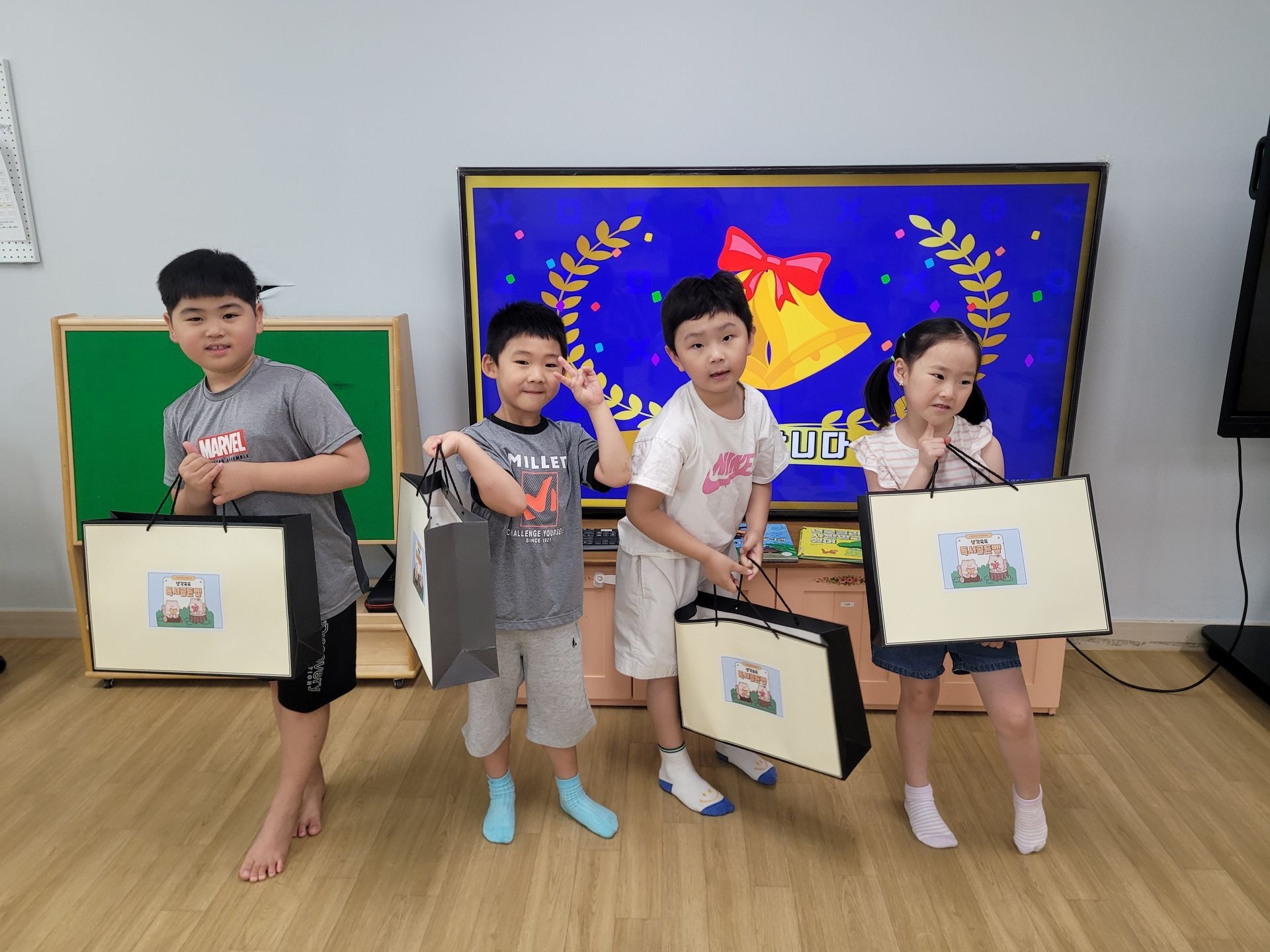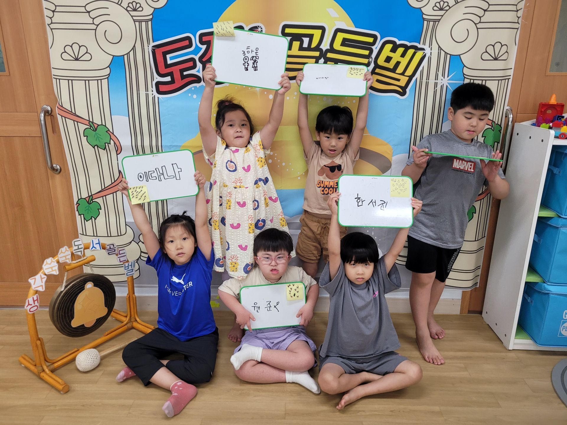 오늘 유치원에서는 ‘생각쑥쑥 독서골든벨’ 활동이 진행되었습니다. 아이들은 사전에 함께 읽고 익힌 책을 바탕으로 퀴즈를 풀며, 내용을 떠올리고 스스로 생각해보는 시간을 가졌답니다. 이번 '생각쑥쑥 독서 골든벨' 활동은 책의 내용을 되새기고 즐겁게 참여하는 경험 자체에 의미를 두고 진행되었습니다. 열심히 참여한 아이들을 격려하는 의미로 ‘독서대’를 선물로 전달하였으니, 가정에서도 아이가 책과 더욱 가까워질 수 있도록 따뜻한 응원 부탁드립니다.