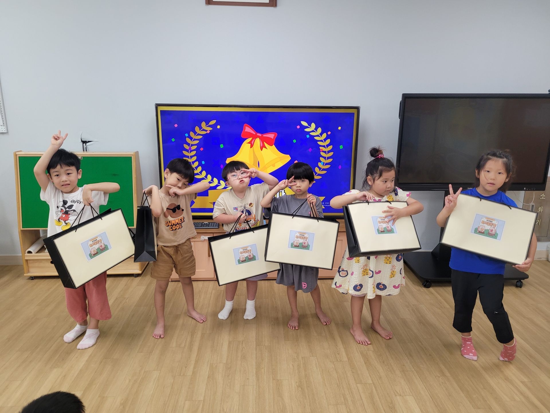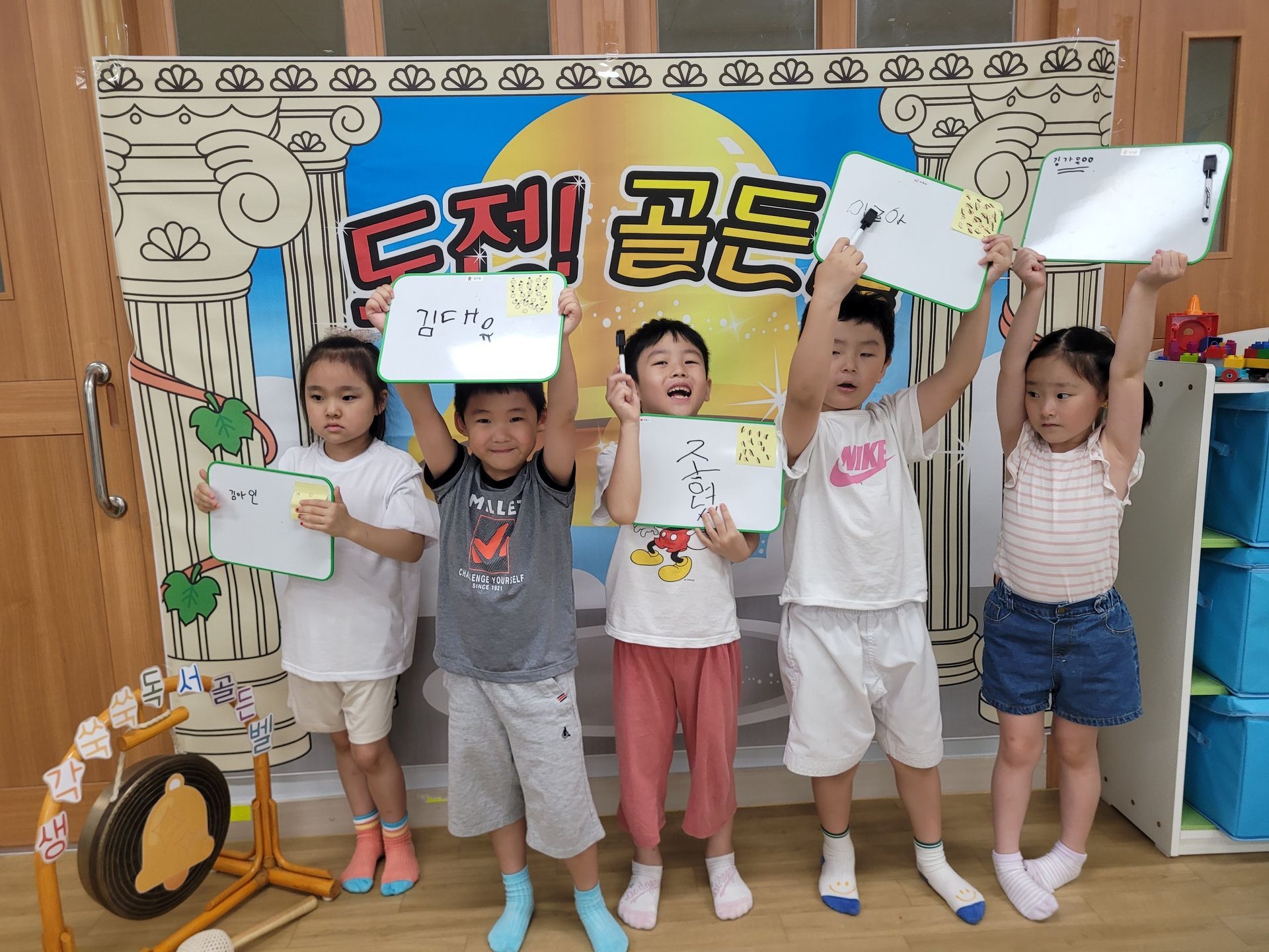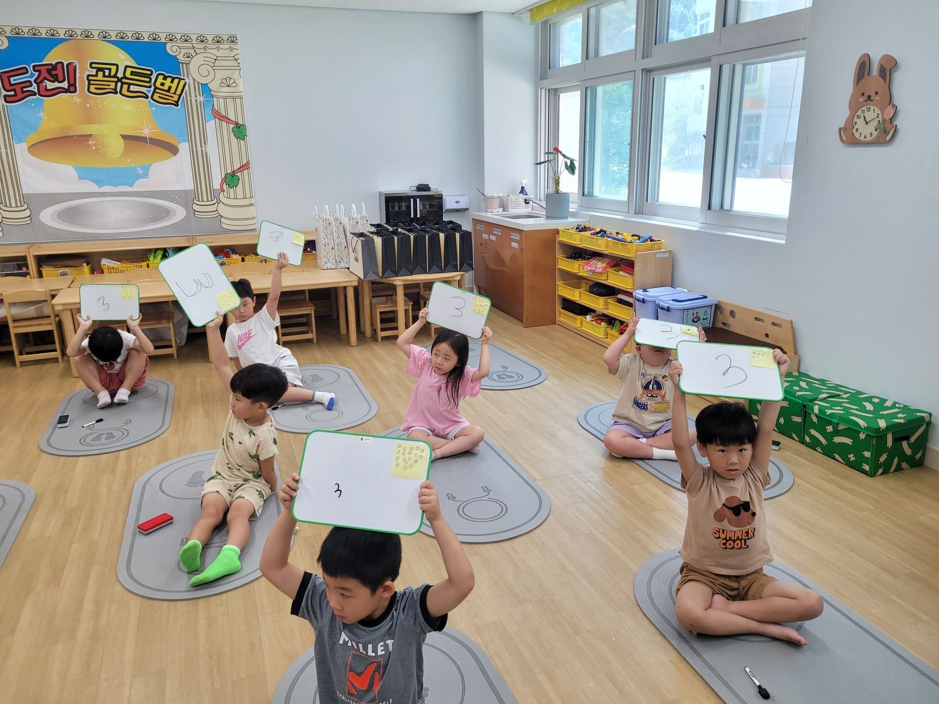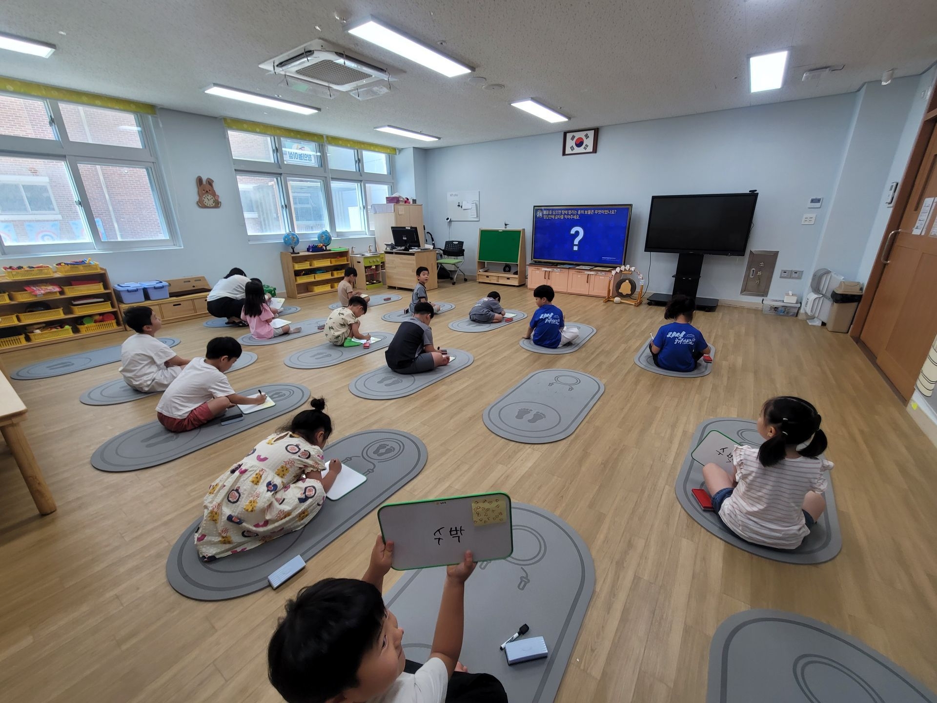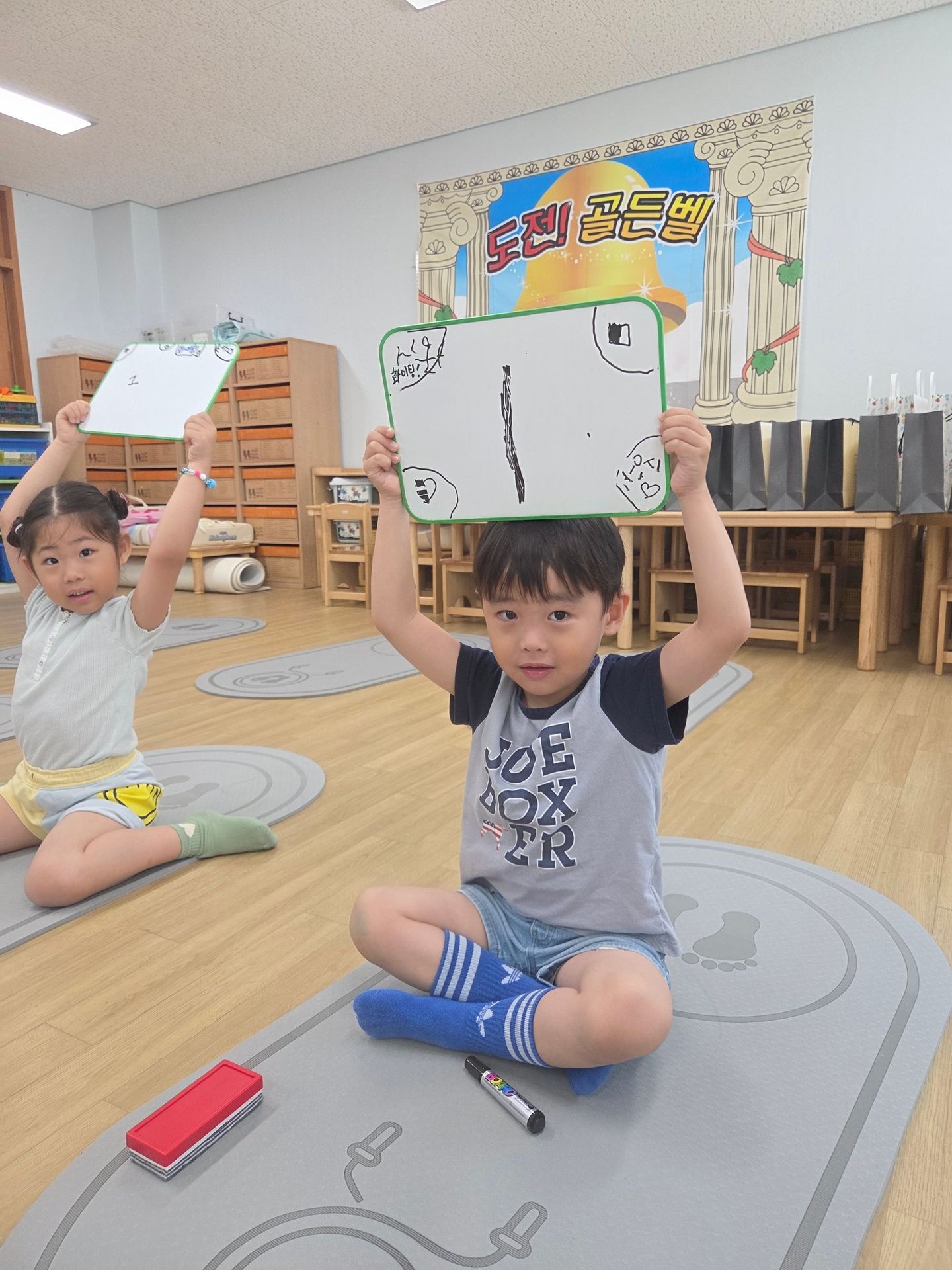 오늘 유치원에서는 ‘생각쑥쑥 독서골든벨’ 활동이 진행되었습니다. 아이들은 사전에 함께 읽고 익힌 책을 바탕으로 퀴즈를 풀며, 내용을 떠올리고 스스로 생각해보는 시간을 가졌답니다. 이번 '생각쑥쑥 독서 골든벨' 활동은 책의 내용을 되새기고 즐겁게 참여하는 경험 자체에 의미를 두고 진행되었습니다. 열심히 참여한 아이들을 격려하는 의미로 ‘독서대’를 선물로 전달하였으니, 가정에서도 아이가 책과 더욱 가까워질 수 있도록 따뜻한 응원 부탁드립니다.