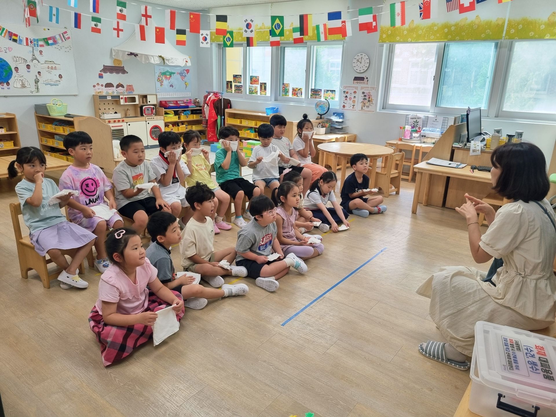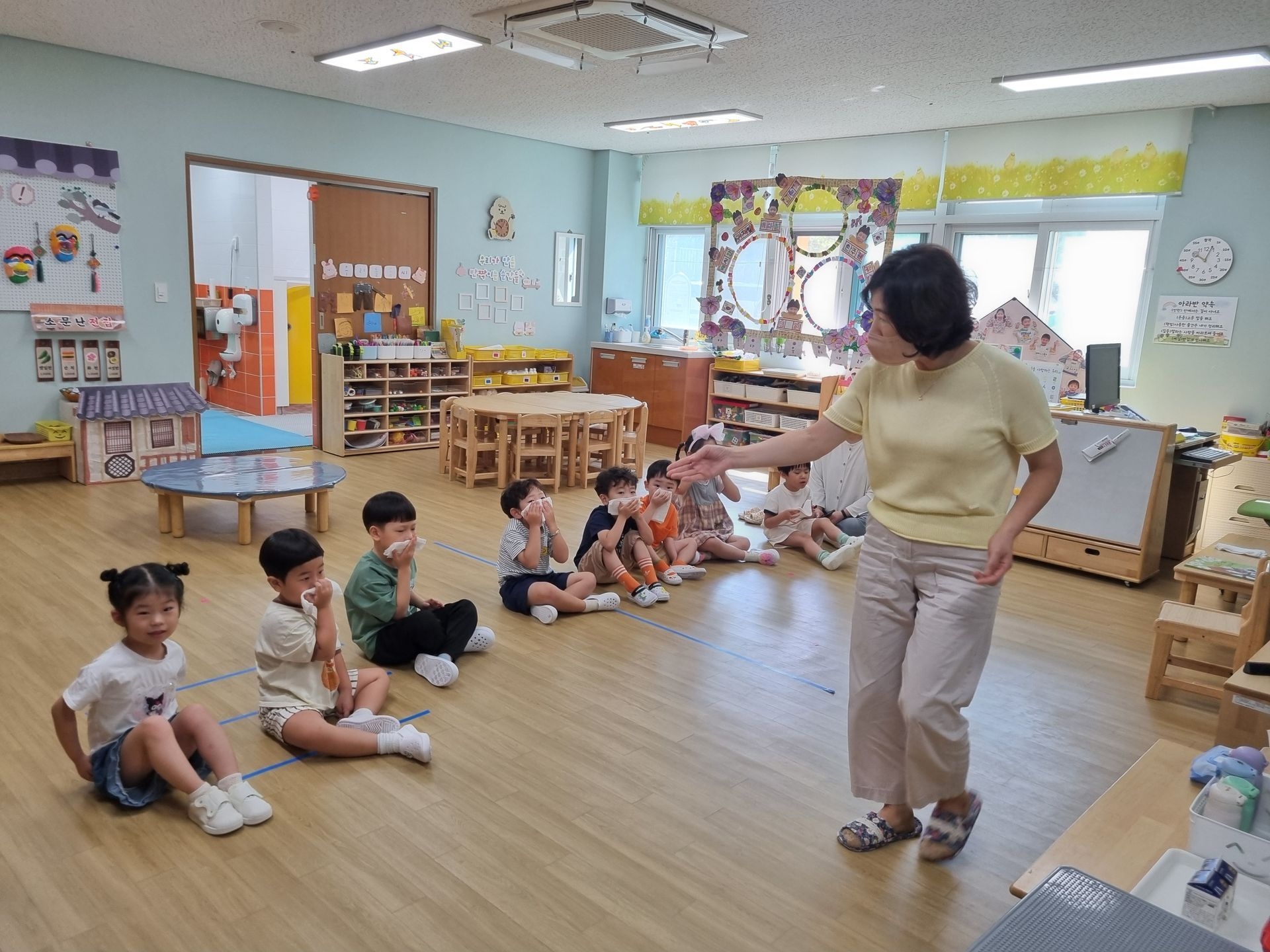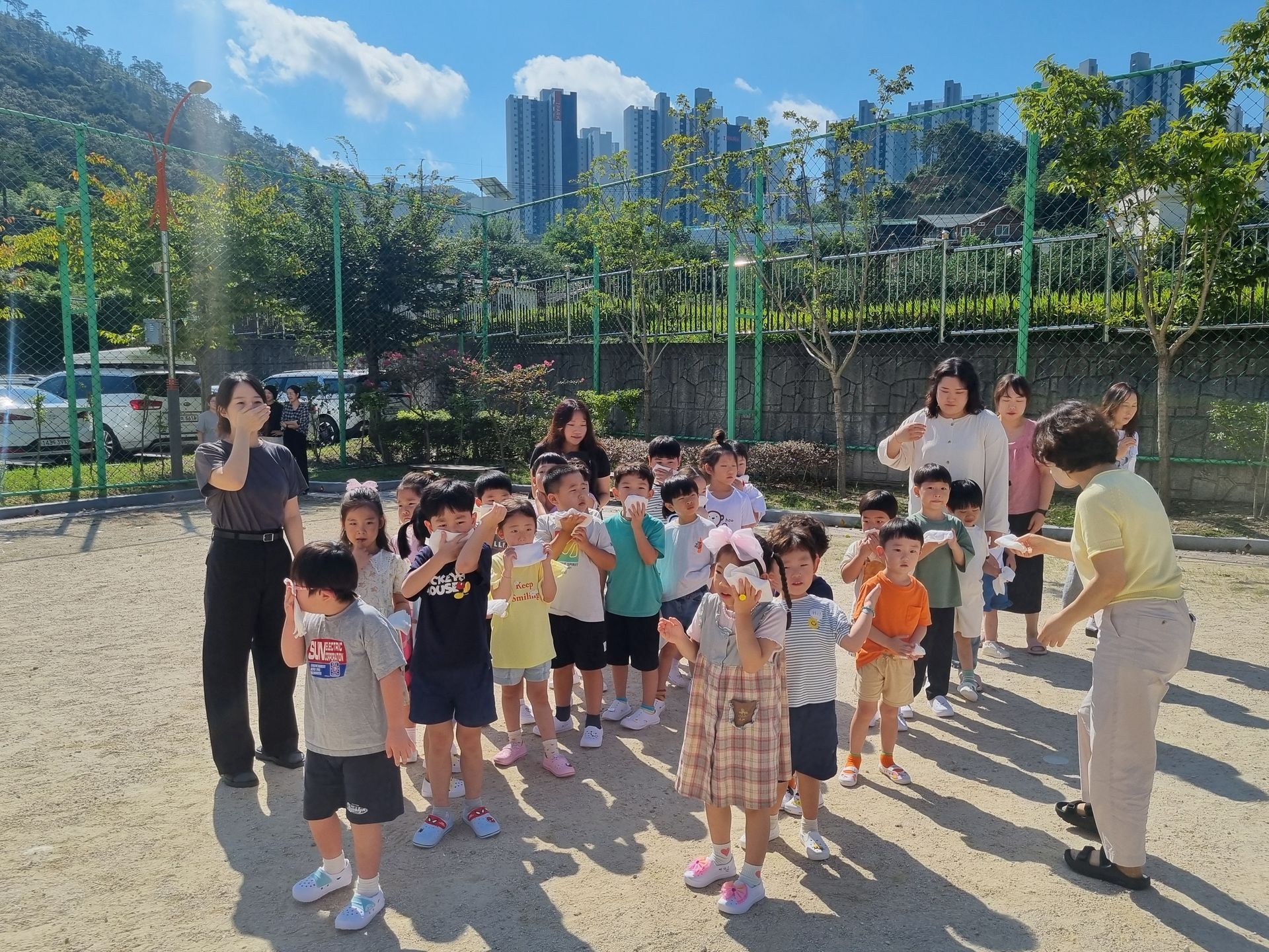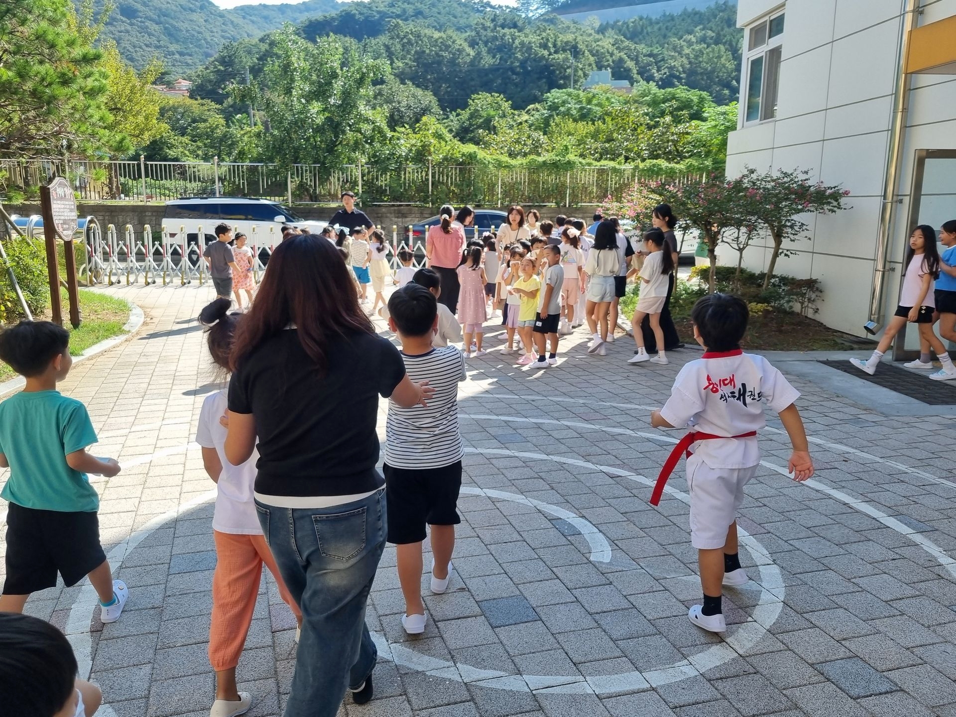 교실에서 미리 소방안전교육과 화재대피 O,X퀴즈를 실시하고 화재경보 사이렌 소리와 함께 신속하고 빠르게 운동장 으로 대피하였습니다.