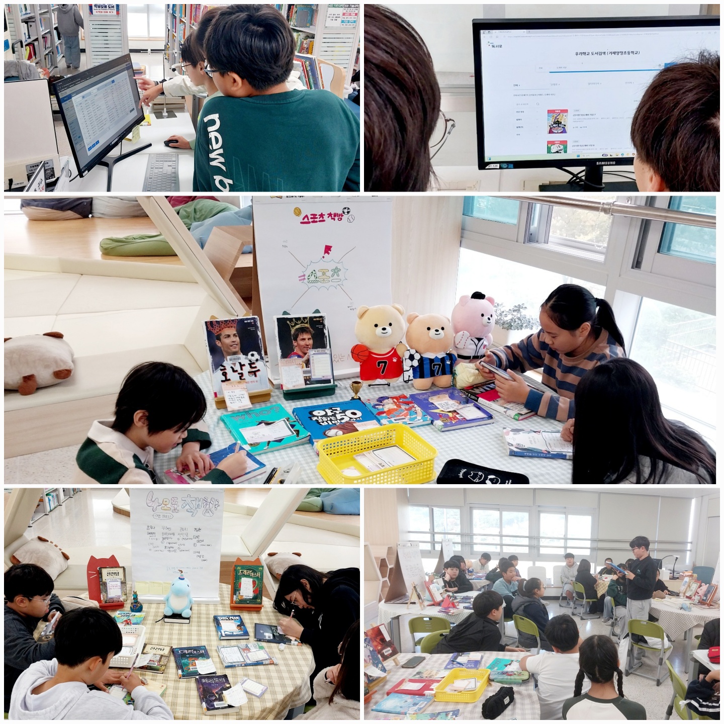 - 2차시: 5학년 3반이 꾸민 책방을 둘러보며 책 시식하기, 책방에 추가하고 싶은 책 가져와 책 소개글 적고 전시하기