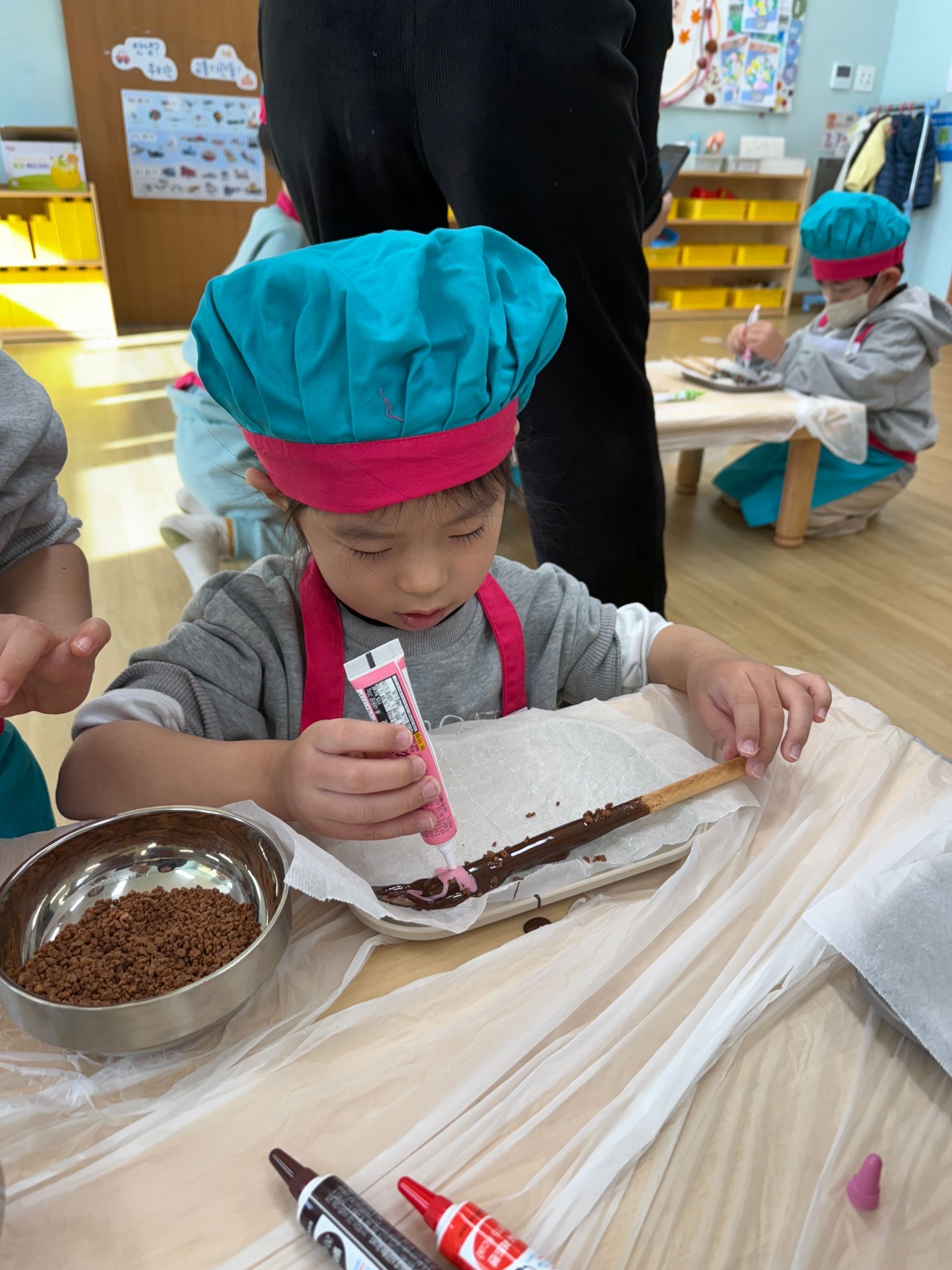 11월 11일을 맞아 각자 준비된 재료를 활용해 초콜릿을 바르고, 막대 과자를