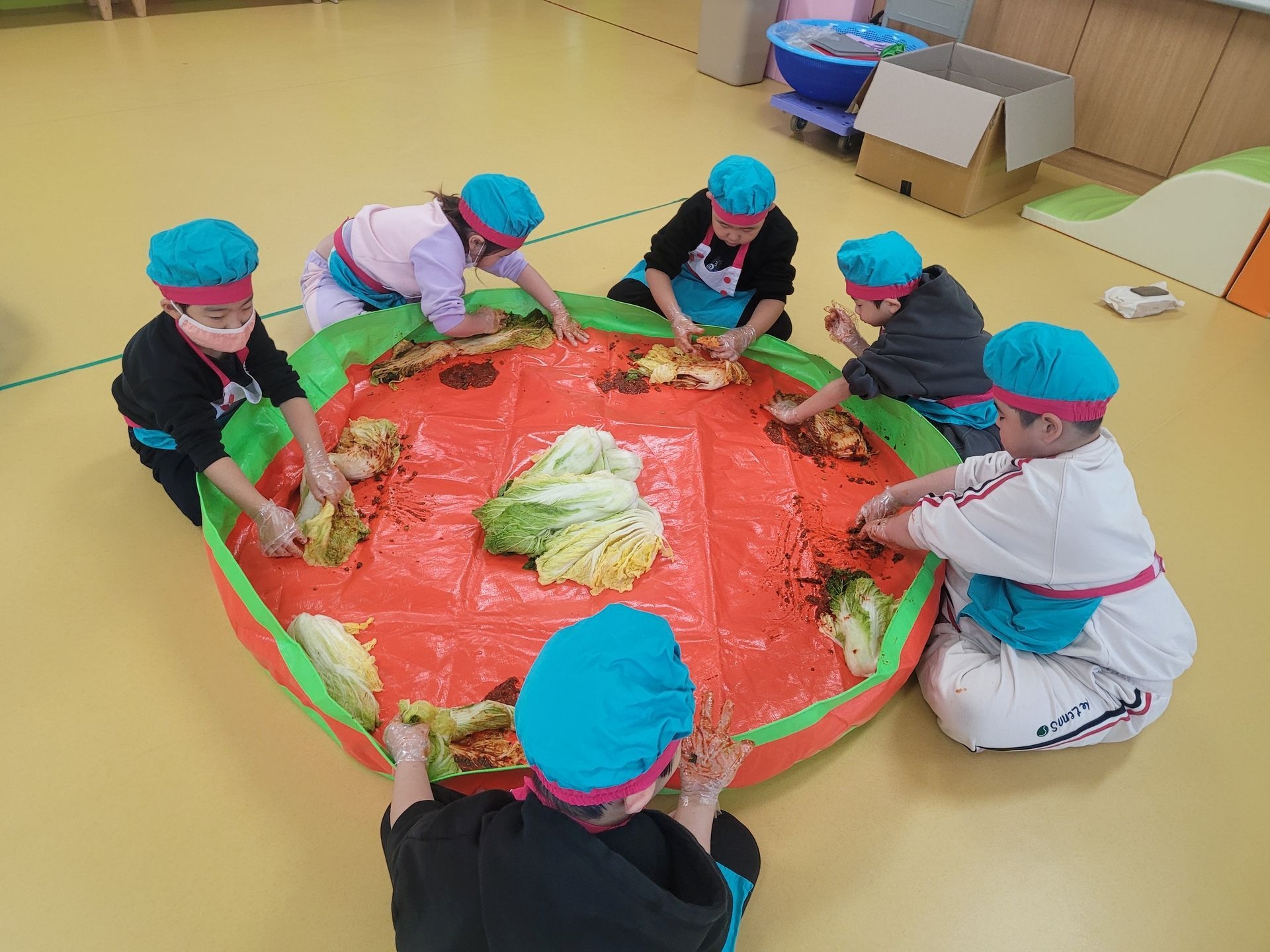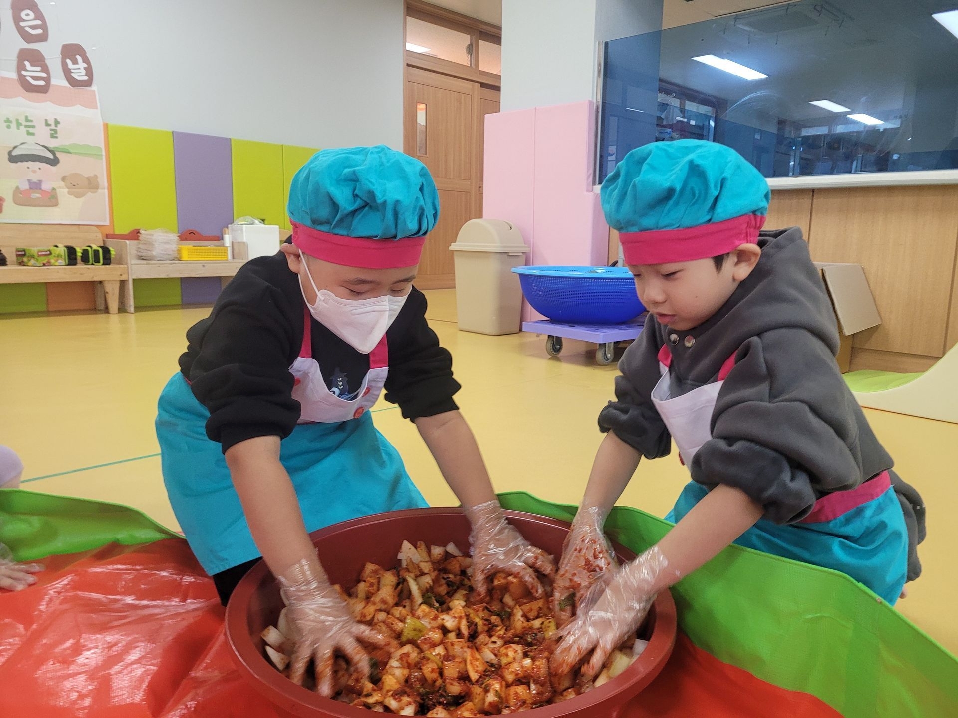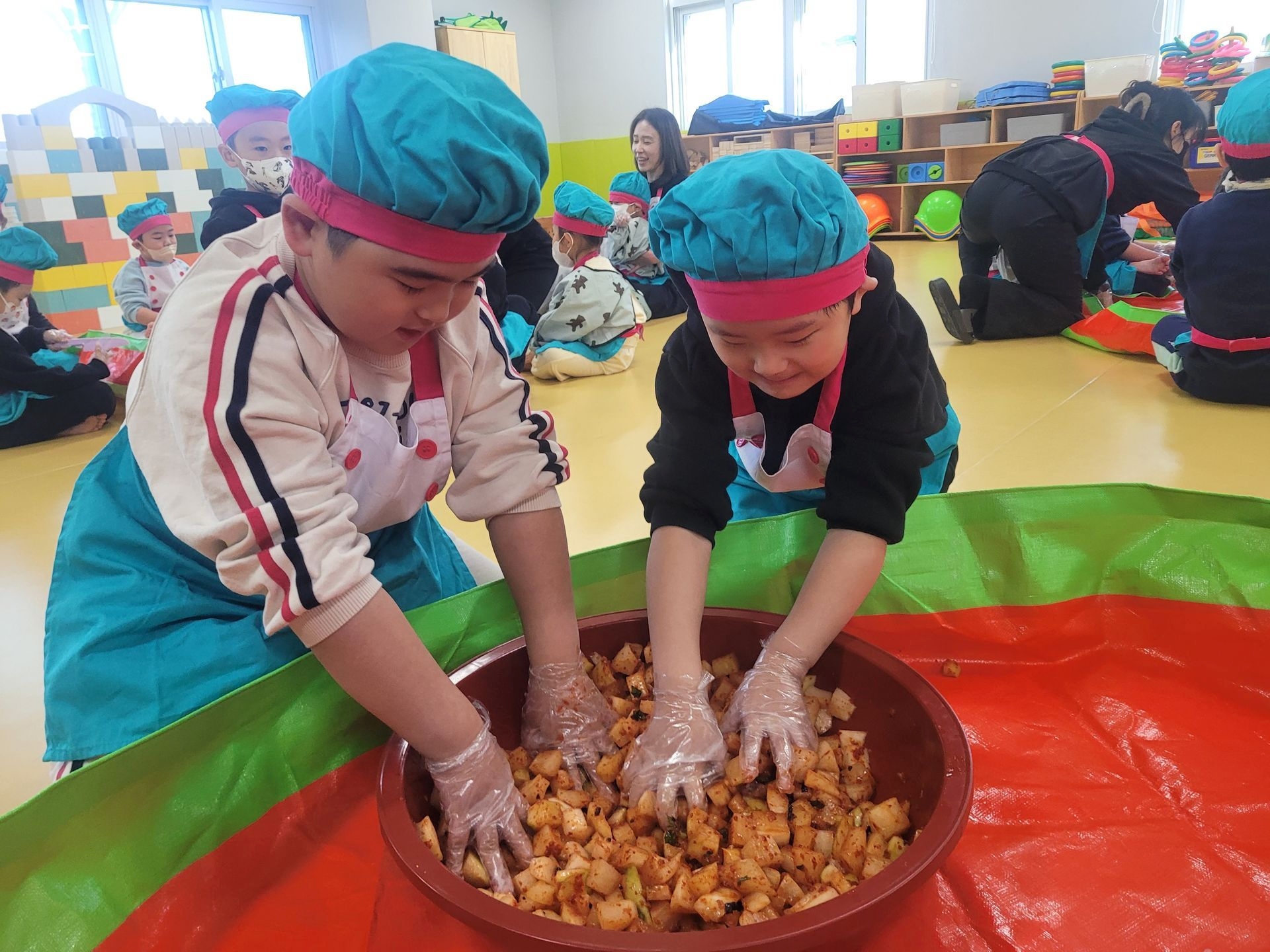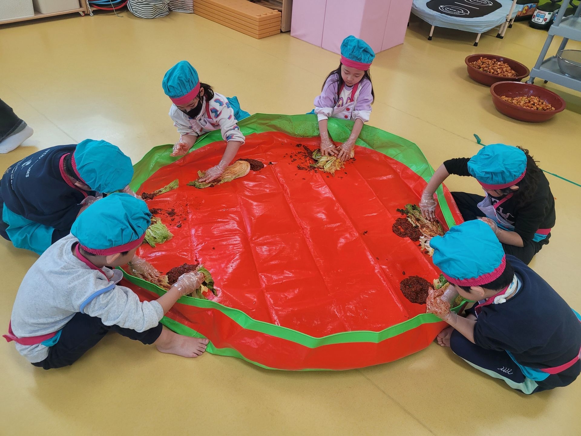 오늘 우리 유치원에서는 김장 체험 활동을 진행하였습니다.