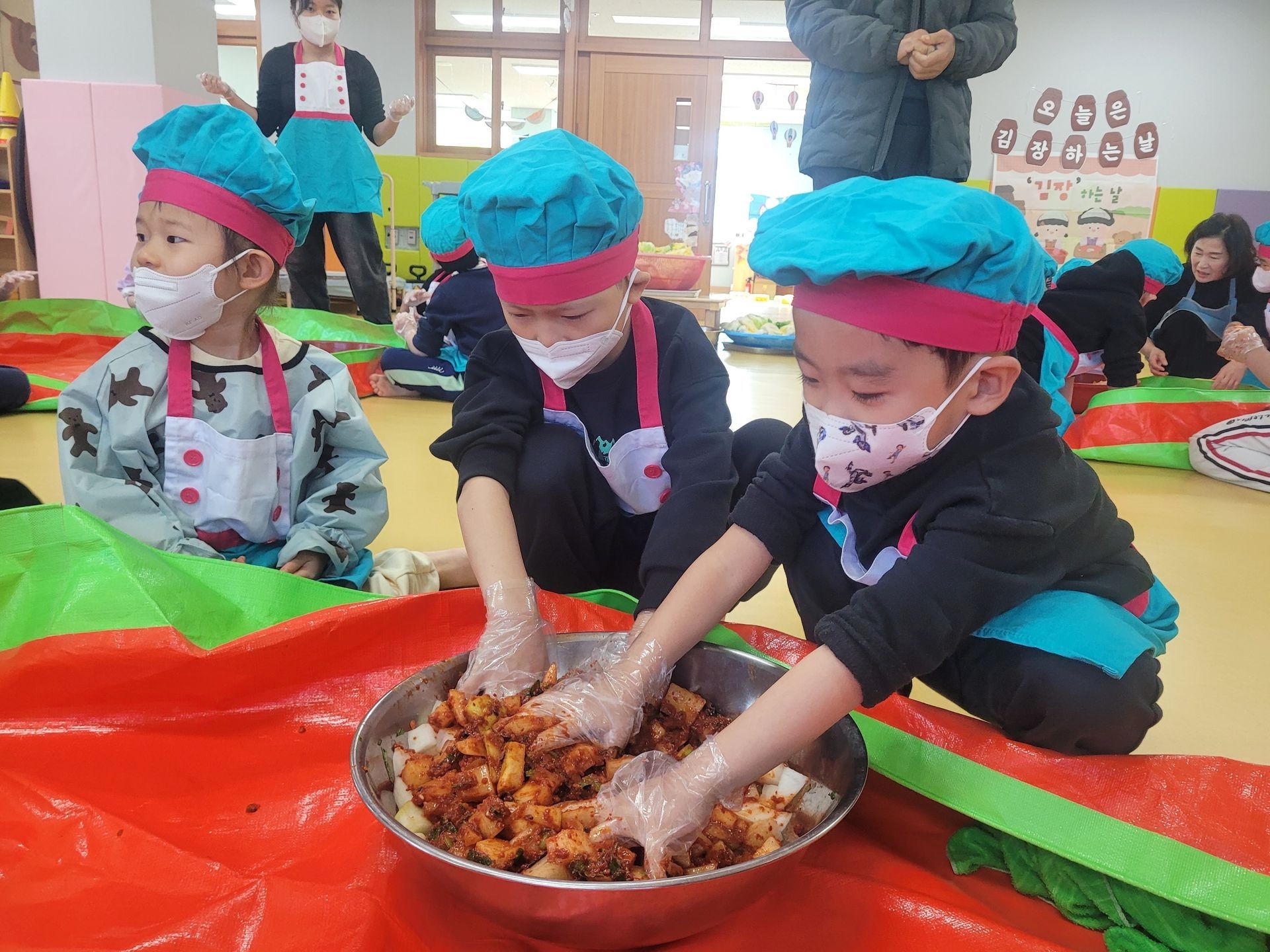 김장을 마친 뒤에는 아이들이 만든 김치를 수육과 함께 시식하며 즐겁고 맛있는 경험을 나누었습니다. 아이들이 담근 김치는 각 가정으로 보내드립니다. 오늘은 실온 보관해 주시고, 내일부터 냉장 보관해 주시기 바랍니다.^^